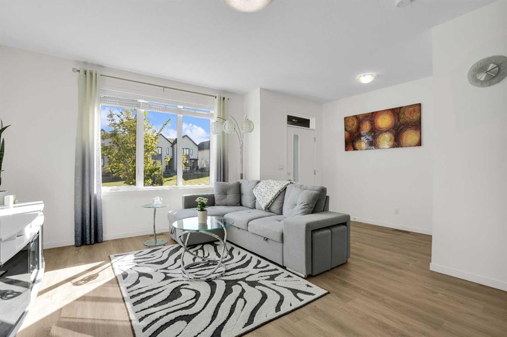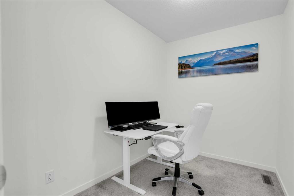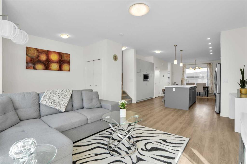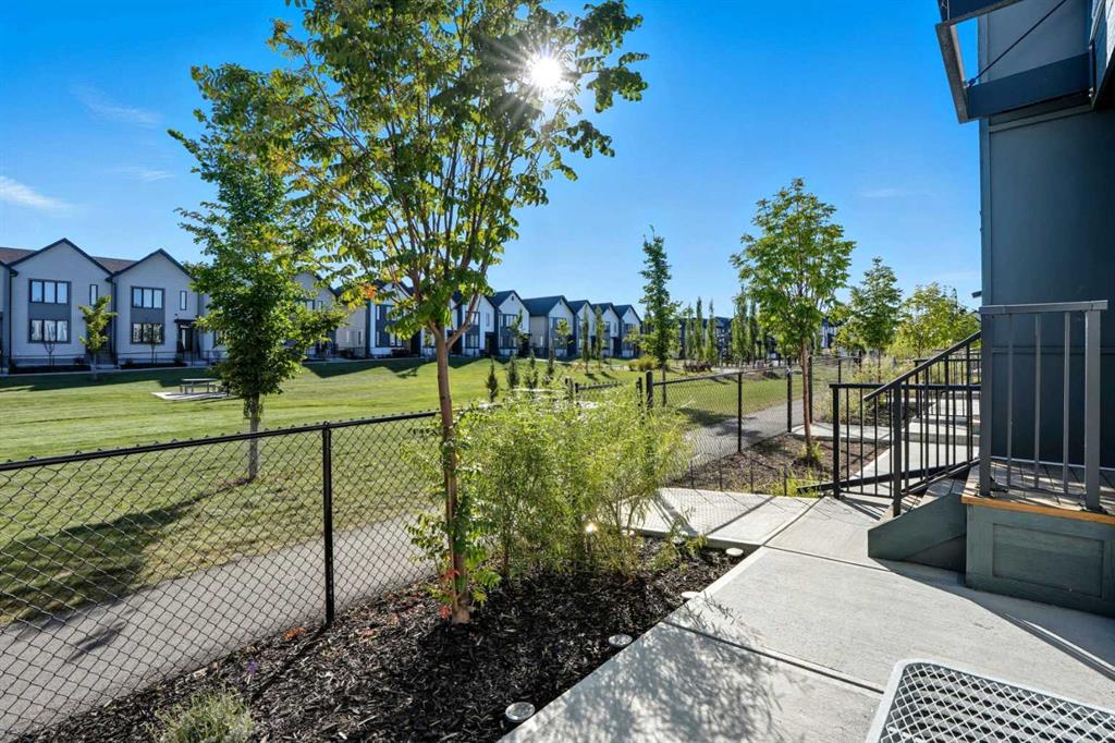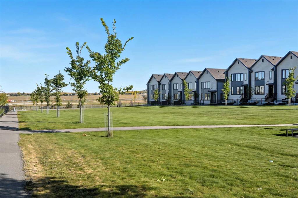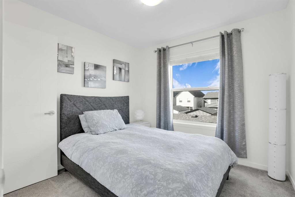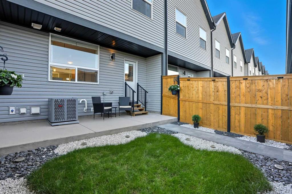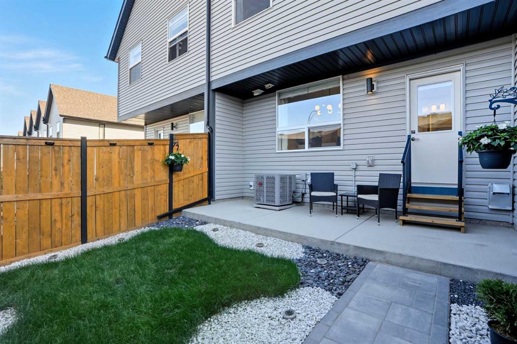 This bright and beautifully maintained 1,665 sq ft rowhome is ideally located directly across from a green space in the sought-after community of Southpoint, Airdrie, offering an exceptional blend of lifestyle, convenience, and value. The open-concept main floor features quartz countertops, stainless steel appliances, ample storage and an upgraded French-door refrigerator, creating a warm and functional space perfect for everyday living and entertaining. Upstairs, you’ll find 3 bedrooms plus a dedicated office, including a spacious primary bedroom overlooking the park, complete with a walk-in closet and dual-sink ensuite. This home truly stands out with central air conditioning, a landscaped yard, stone-paved pathway, and full wooden fencing for added privacy — upgrades not commonly found in neighboring units. A smart thermostat ensures easy, year round climate control. A double detached garage plus a double parking pad for guests, provides excellent everyday convenience. The unfinished basement is clean and ready for future development. Enjoy close proximity to schools, walking paths, green spaces, and a dog park, with quick access to Coopers Promenade and Deerfoot Trail just 3 minutes away, making commuting to Calgary fast and convenient.