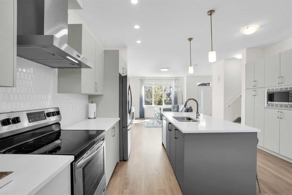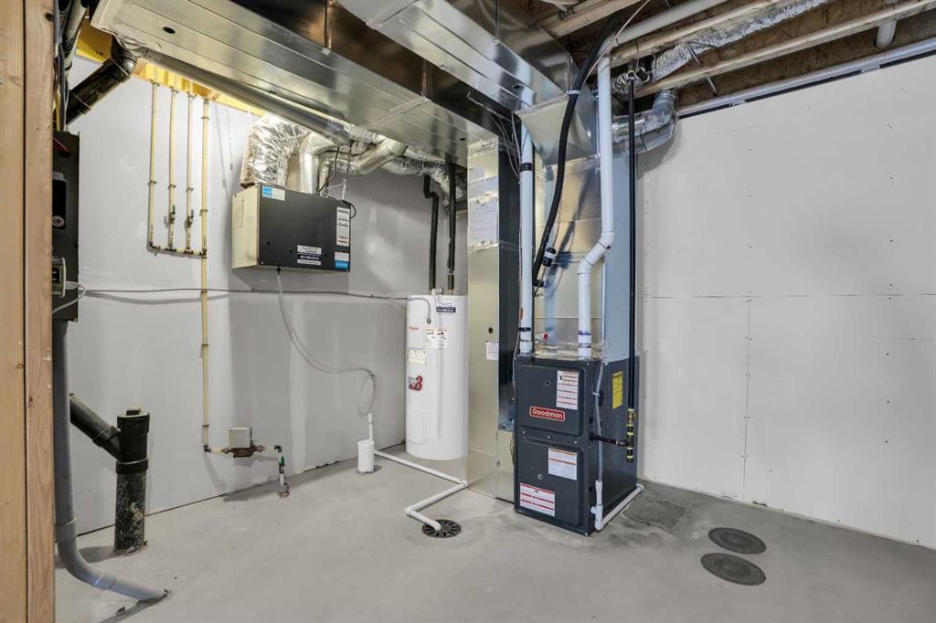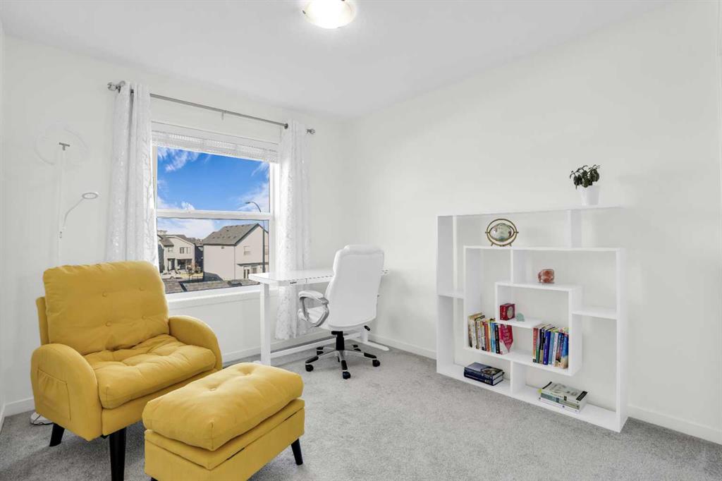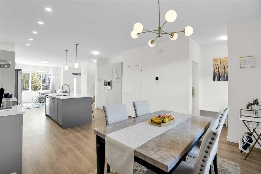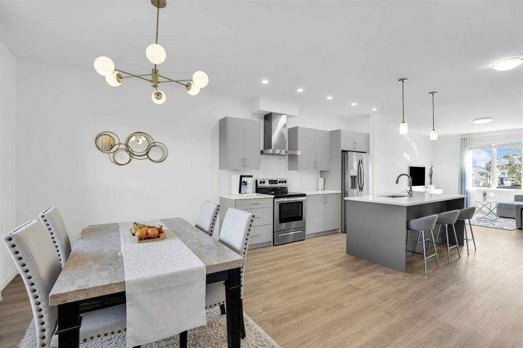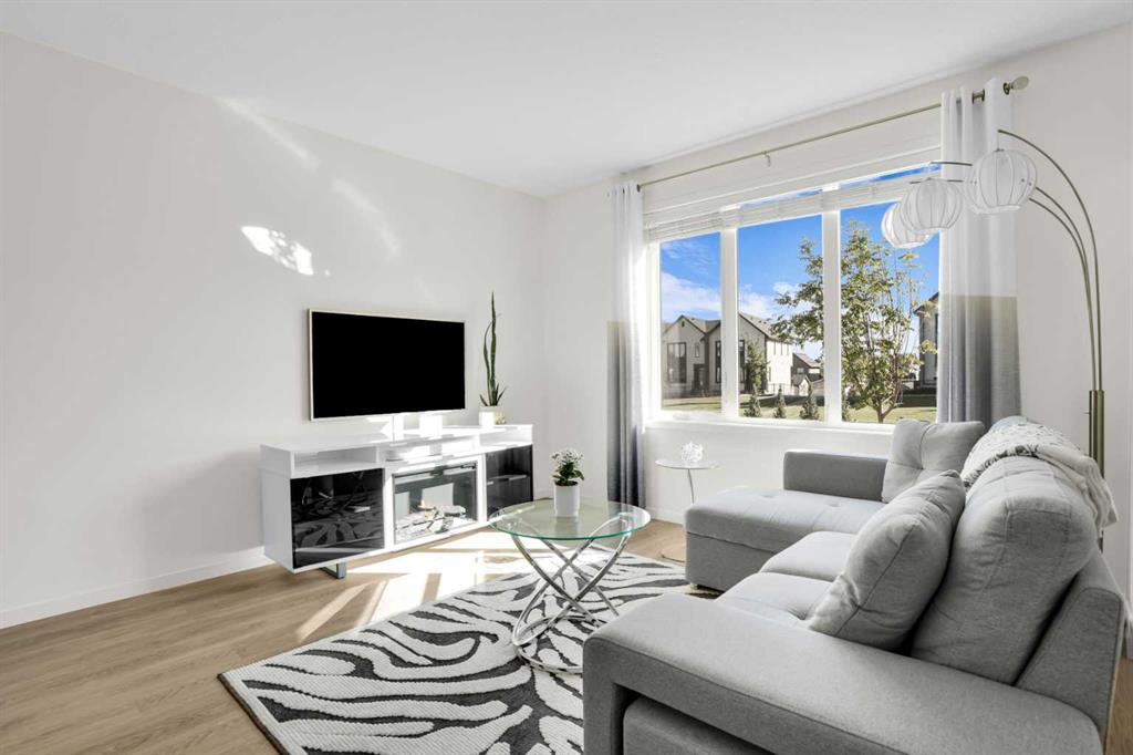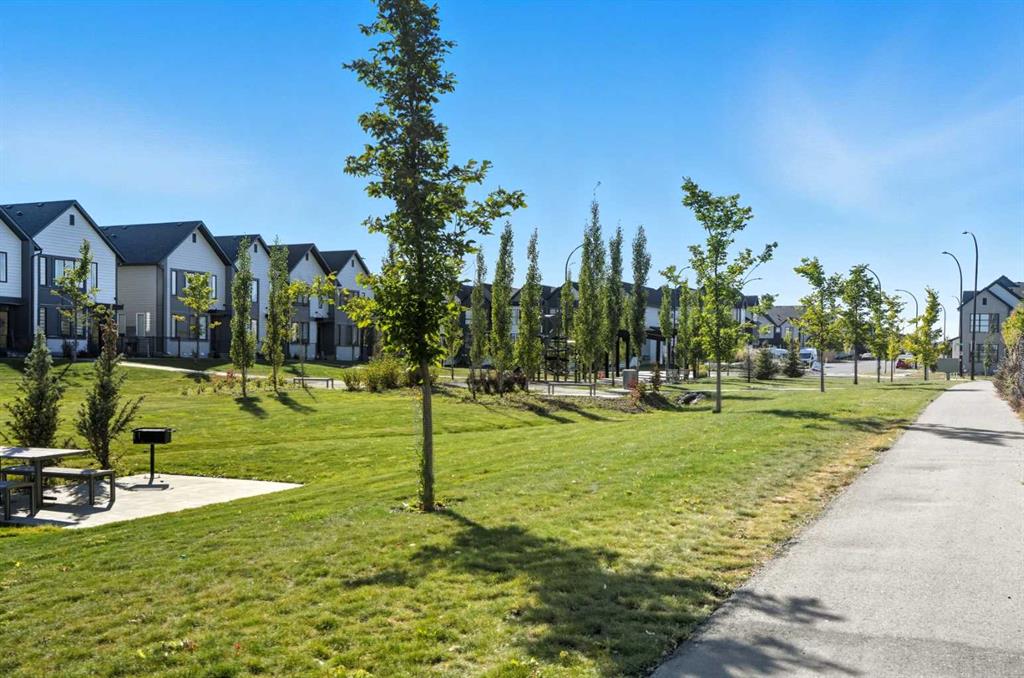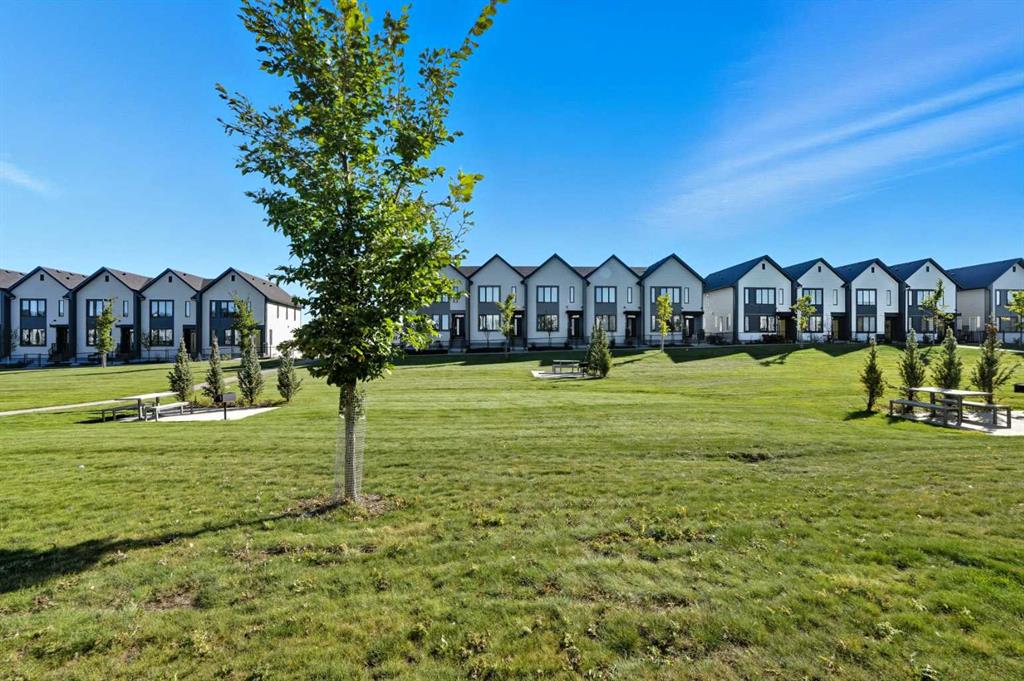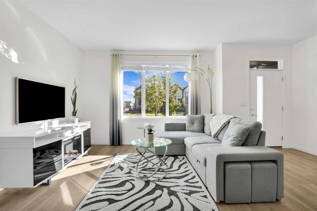 This bright and beautifully maintained 1,665 sq ft rowhome is ideally located directly across from a green space in the sought-after community of Southpoint, Airdrie, offering an exceptional blend of lifestyle, convenience, and value. The open-concept main floor features quartz countertops, stainless steel appliances, ample storage and an upgraded French-door refrigerator, creating a warm and functional space perfect for everyday living and entertaining. Upstairs, you’ll find 3 bedrooms plus a dedicated office, including a spacious primary bedroom overlooking the park, complete with a walk-in closet and dual-sink ensuite. This home truly stands out with central air conditioning, a landscaped yard, stone-paved pathway, and full wooden fencing for added privacy — upgrades not commonly found in neighboring units. A smart thermostat ensures easy, year round climate control. A double detached garage plus a double parking pad for guests, provides excellent everyday convenience. The unfinished basement is clean and ready for future development. Enjoy close proximity to schools, walking paths, green spaces, and a dog park, with quick access to Coopers Promenade and Deerfoot Trail just 3 minutes away, making commuting to Calgary fast and convenient.