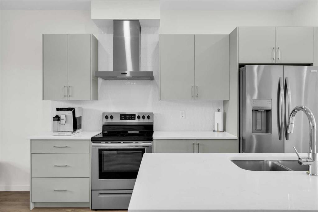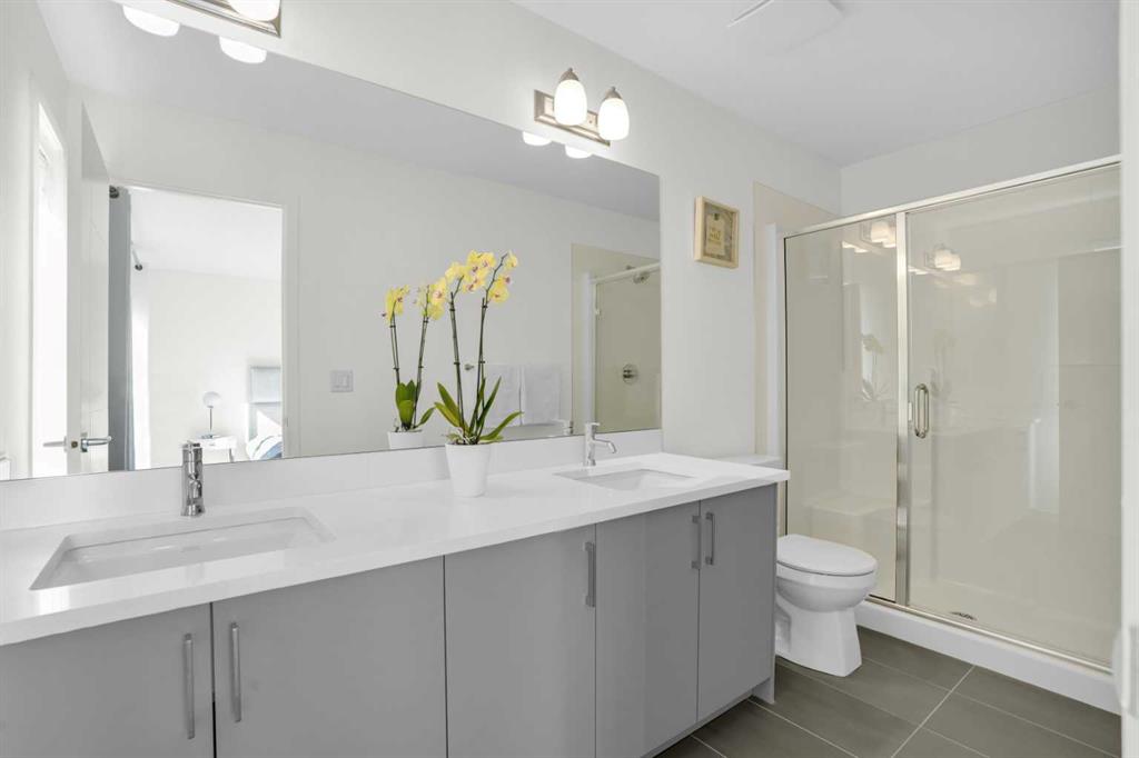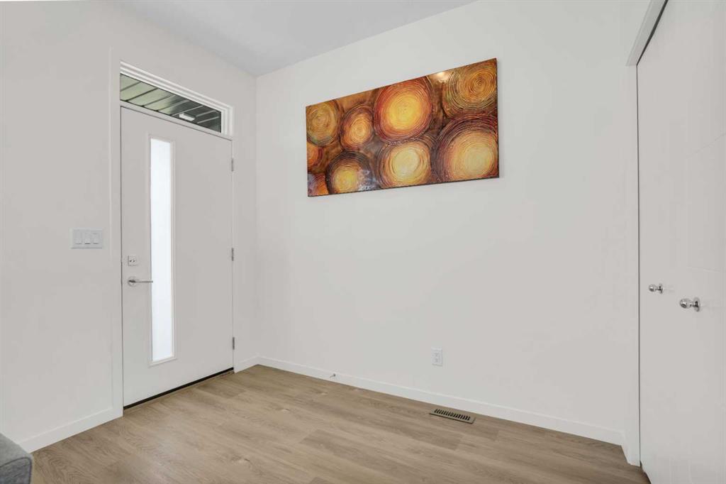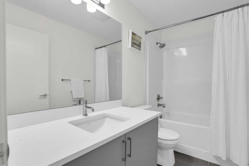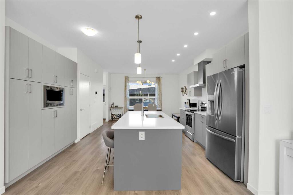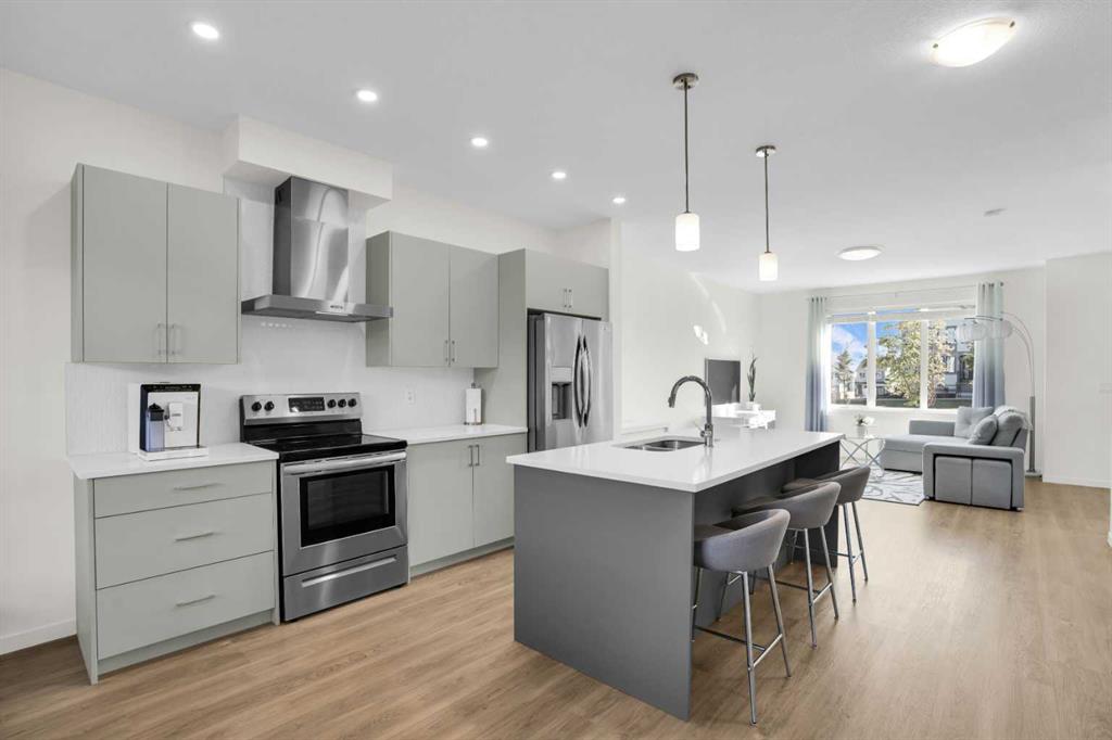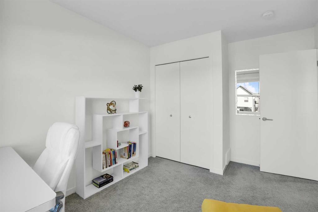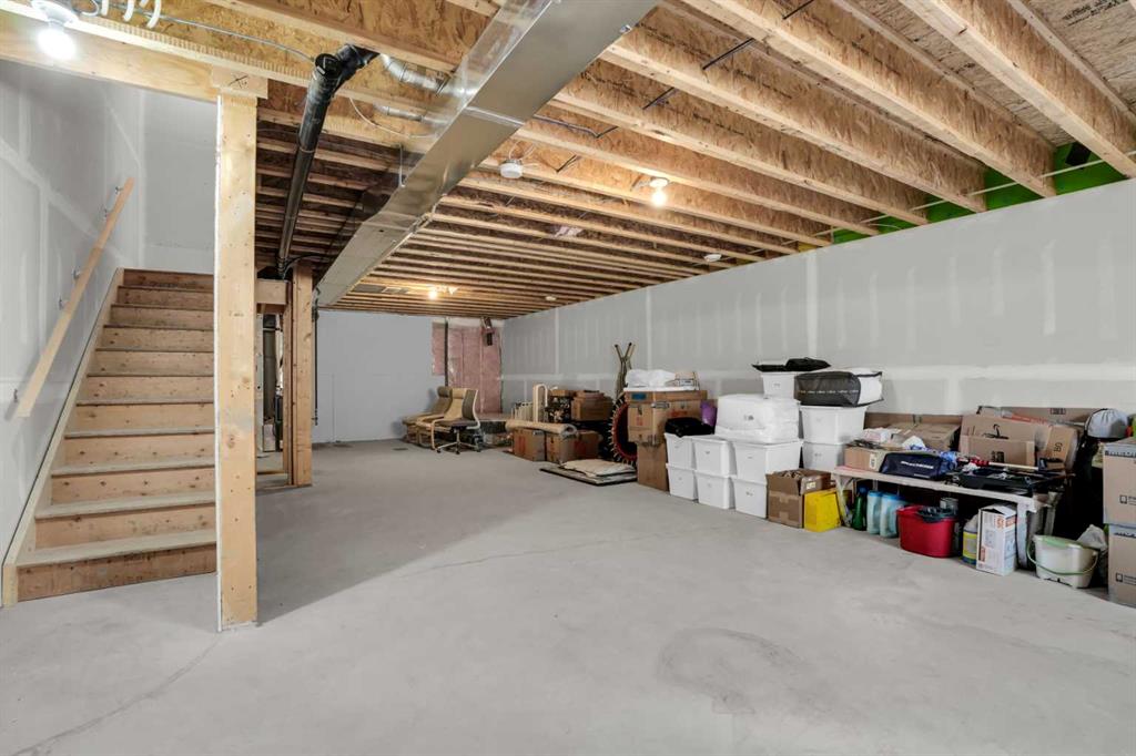 This bright and beautifully maintained 1,665 sq ft rowhome is ideally located directly across from a green space in the sought-after community of Southpoint, Airdrie, offering an exceptional blend of lifestyle, convenience, and value. The open-concept main floor features quartz countertops, stainless steel appliances, ample storage and an upgraded French-door refrigerator, creating a warm and functional space perfect for everyday living and entertaining. Upstairs, you’ll find 3 bedrooms plus a dedicated office, including a spacious primary bedroom overlooking the park, complete with a walk-in closet and dual-sink ensuite. This home truly stands out with central air conditioning, a landscaped yard, stone-paved pathway, and full wooden fencing for added privacy — upgrades not commonly found in neighboring units. A smart thermostat ensures easy, year round climate control. A double detached garage plus a double parking pad for guests, provides excellent everyday convenience. The unfinished basement is clean and ready for future development. Enjoy close proximity to schools, walking paths, green spaces, and a dog park, with quick access to Coopers Promenade and Deerfoot Trail just 3 minutes away, making commuting to Calgary fast and convenient.