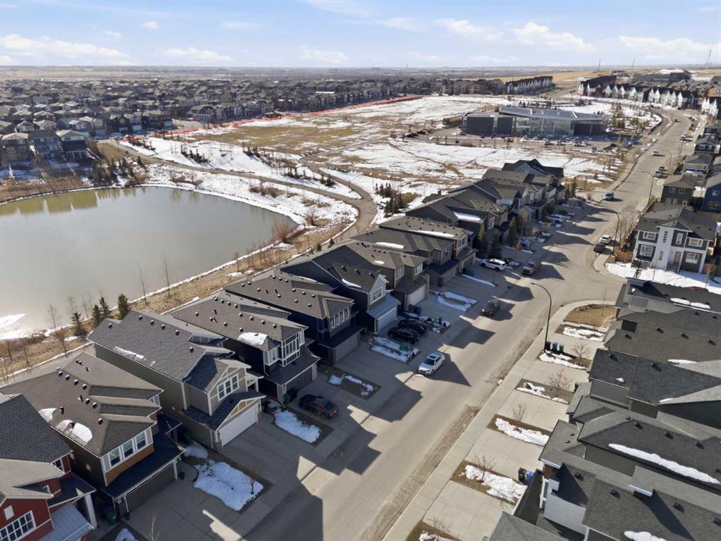 Located within the popular community of Livingston, this fabulous fully developed two story walkout home that borders and backs onto a gorgeous pond. The modern open concept main floor offers a U-Shaped kitchen with a large center island, a spacious living room and a bright dining area overlooking the pond. The kitchen has been equipped with stainless steel appliances, laminate countertops, and timeless white colour cabinetries. The large windows in the living room and dining area bring plenty of sunlight with a full view of the beautiful pond and green space. The patio door opens onto a deck that can comfortably seat a crowd. Upstairs features a spacious bonus room, two additional bedrooms, a full bathroom, and a master suite with open unobstructed views. The walk out basement has been beautifully developed by the builder with a 4-piece bathroom, a large 4th bedroom, and a bright recreation room with direct access to the concrete patio and the backyard. The east facing backyard is professionally landscaped and is just steps away from a walking/biking path. Brand new exteriors including Roof, Full Wrap of Sidings, Garage Door, and Drainage & Gutters were completed in 2025. The house is centrally located within walking distance to the Livingston Hub, future schools, public transit and a few community commercial centers. It is also close to parks and playgrounds and with easy access to the International Airport, Stoney Trail, Deerfoot Trail, Airdrie and Crossiron Mills. This home is the first time listed on the market, a rare find, don’t miss this opportunity to make it yours. Call and book your showings today!
