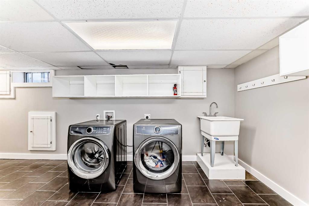 Downstairs, the rhythm continues. Another fireplace wall glows in the sleek and updated BASEMENT FAMILY ROOM, a FLEX ROOM adapts to the season of life you’re in, and a generous FOURTH BEDROOM makes space for teenagers, guests, or late-night Netflix marathons. Even laundry gets an upgrade — a roomy space with SINK AND STORAGE that makes the chore feel less like work.