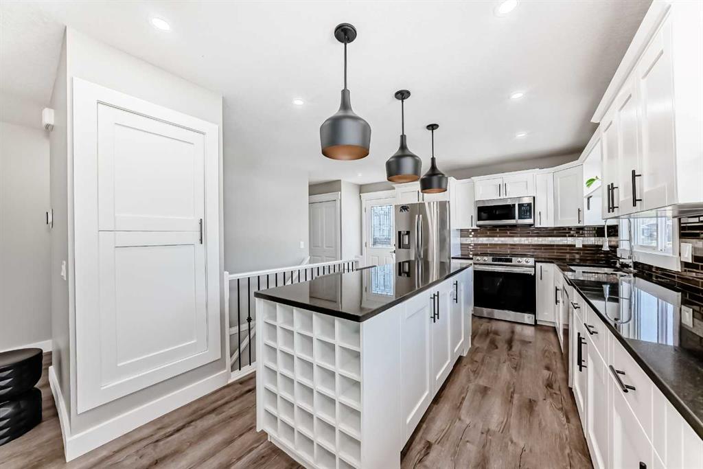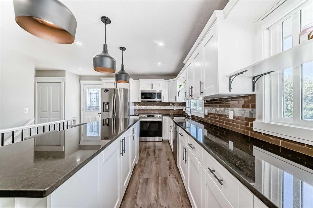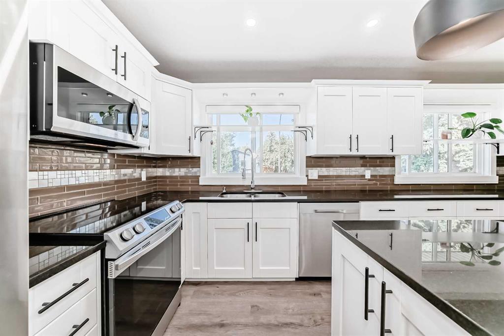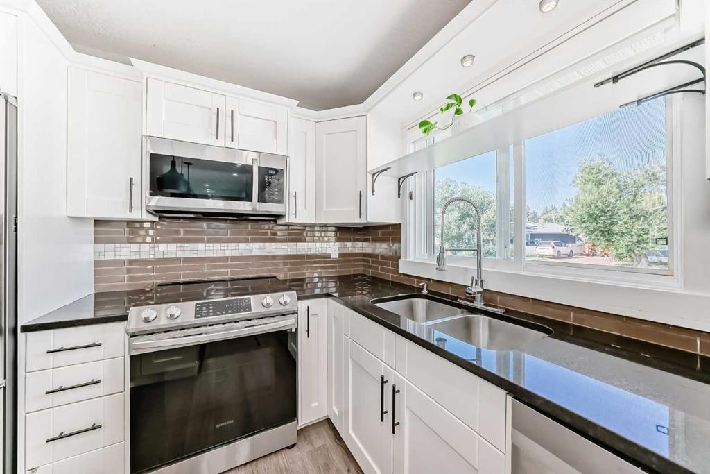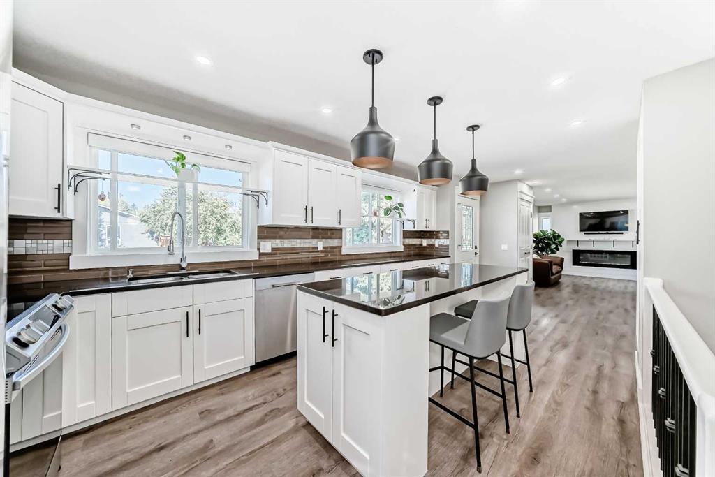 At 146 Lake Sylvan Close, this home lives up to its setting. Morning light spills through the master bedroom to start your day – with fresh finishing and updates throughout, you will want to start you day a little earlier to enjoy the comforts of this property. The living room welcomes friends and family in with the gorgeous shiplap and FULL-HEIGHT FIREPLACE WALL that makes the whole space feel calm and gathered. In the kitchen, GRANITE COUNTERS run long, a CENTRAL ISLAND waits with wine cubbies and BREAKFAST BAR SEATING, and windows on two sides keep the space sunlit and plant-happy. Every finish feels fresh, every corner intentional — the kind of home where daily routines run smoother without you even noticing.