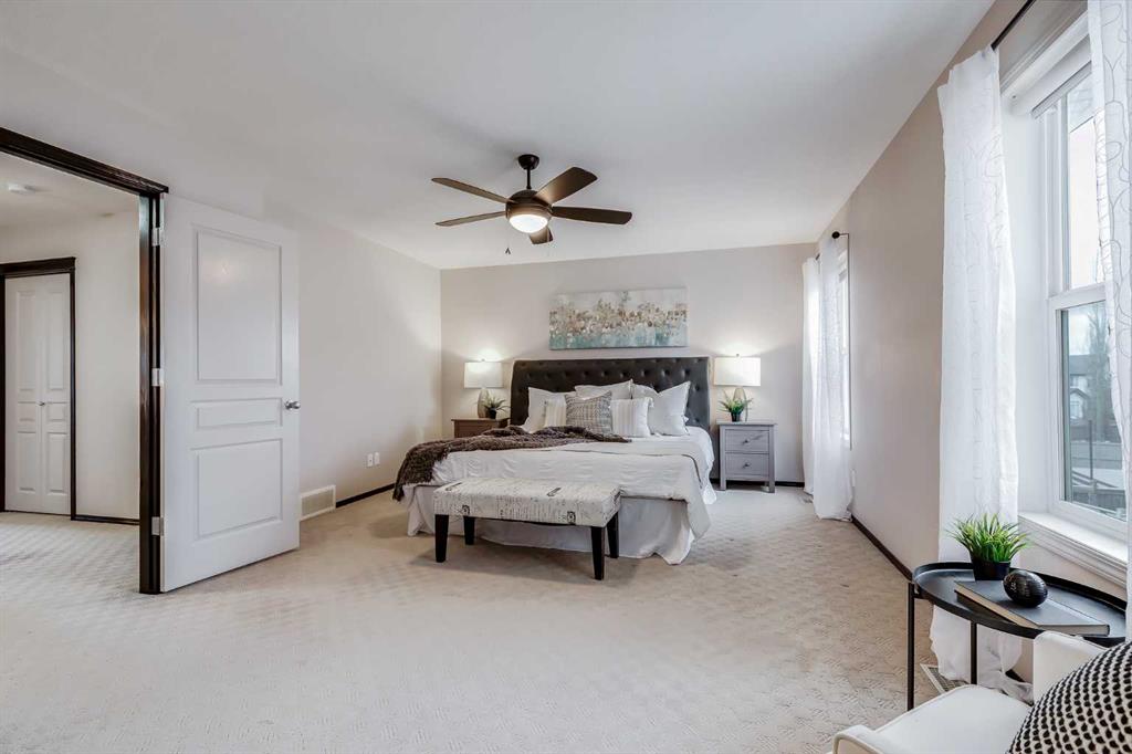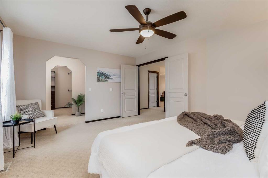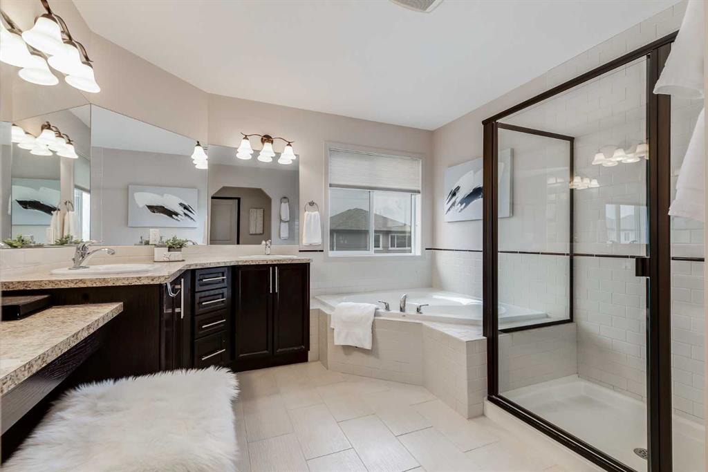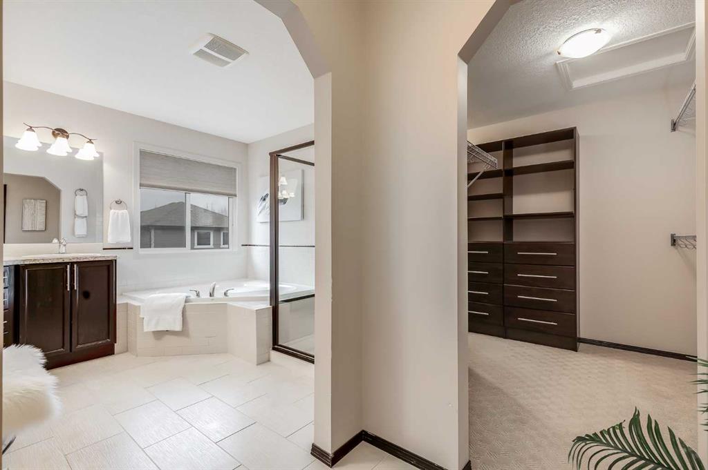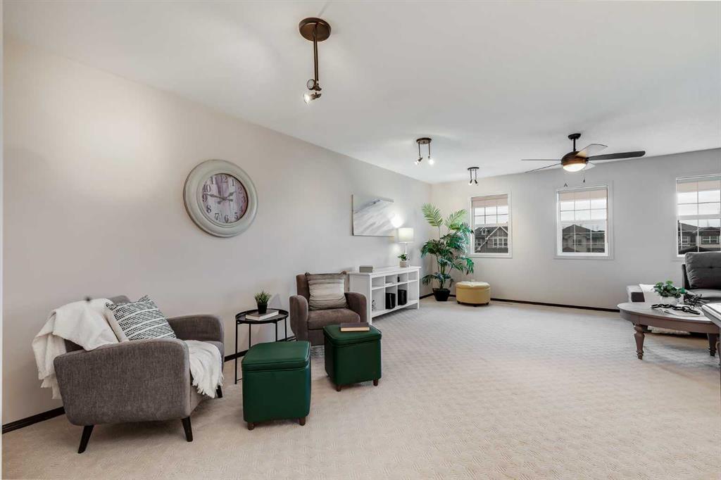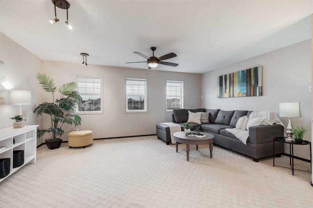 Location, location, location! This is one you don’t want to miss. With over 2,700 sq. ft. of beautifully designed living space, this home is perfect for a growing family or multi generational living. Ideally situated within walking distance to schools, shopping, and with quick access to Highway 2, convenience is at your doorstep. Immaculate hardwood floors welcome you the moment you step inside. A formal living/dining room sits to the right of the central staircase—ideal for family gatherings or quiet evenings. The three sided fireplace creates a warm transition into the second living room, a cozy retreat for everyday relaxation. The chef’s kitchen is a showstopper: two tone cabinetry, granite countertops, built in wall oven and microwave, sleek cooktop, and a large island for effortless prep. An added bonus is the butler’s kitchen with gas range that offers extra cooking space—perfect for entertaining or meal prep. A charming breakfast nook opens to the backyard, where you’ll find a large deck with pergola, built in BBQ, and hot tub—your summer oasis! A spacious home office on the main floor, with French doors (desk included) makes working from home a breeze. The oversized, heated garage entrance features a walk in closet and separate laundry room for ultimate functionality. The upper level of this home is equally impressive. Including an expansive bonus room with space for large furniture, a media setup, or even a library/games area. The luxurious primary suite has an impressive L shaped walk in closet (with built ins) and a spa inspired 5 piece ensuite. Two additional oversized bedrooms, each with walk in closets, easily accommodating king beds or multiple beds and a main four piece bath complete this level. Some Extra Features of this property include: vinyl fencing on both sides of the property, Central vacuum system, reverse osmosis, and water softener, 9 ft basement ceilings (ready for future development), Alarm system (contract with Airdrie Alarm), BRAND NEW ROOF AND SIDING ON SOUTH EXPOSURE (Nov 2025) and all carpets professionally cleaned and sanitized!!