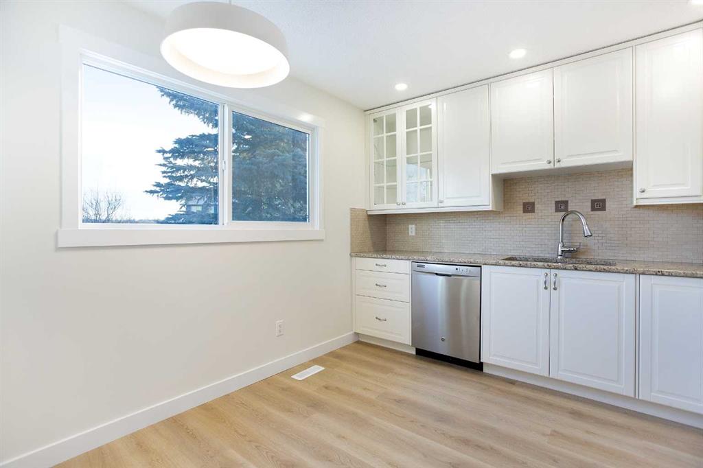 The main floor has been completely revived with fresh paint throughout, including doors and trim, and brand-new luxury vinyl plank flooring. The living room features a wood-burning fireplace and a large front window that fills the home with natural light. The bright kitchen features new cupboard faces, offering a clean, modern look while maintaining great storage and workspace. The main floor layout flows effortlessly for everyday living and entertaining.