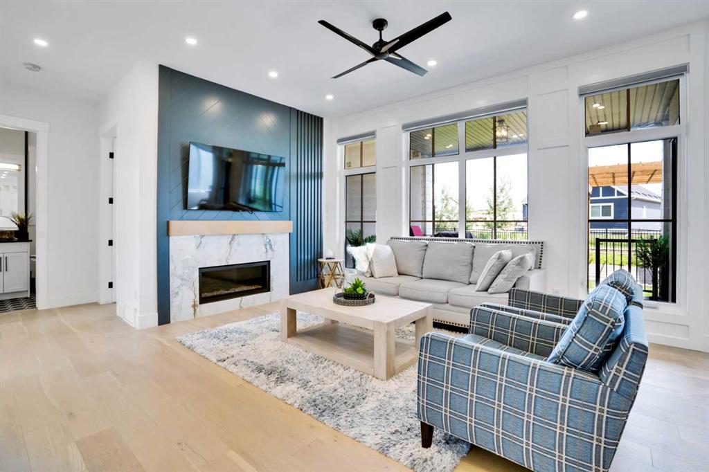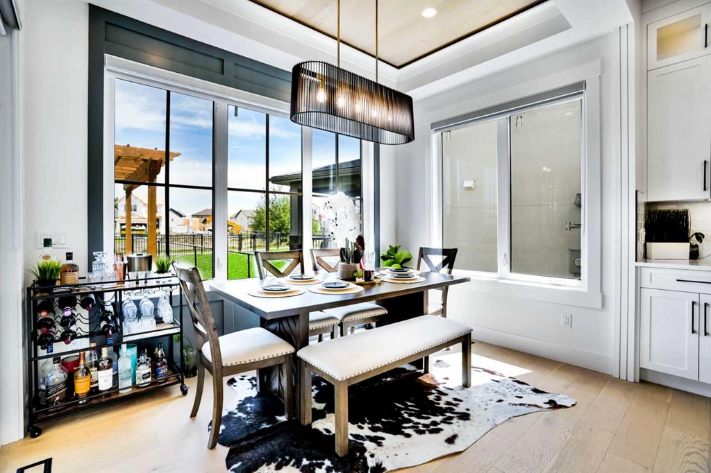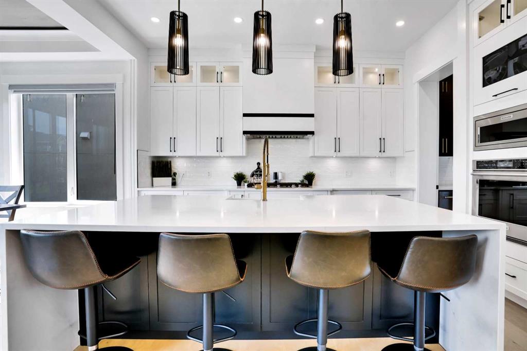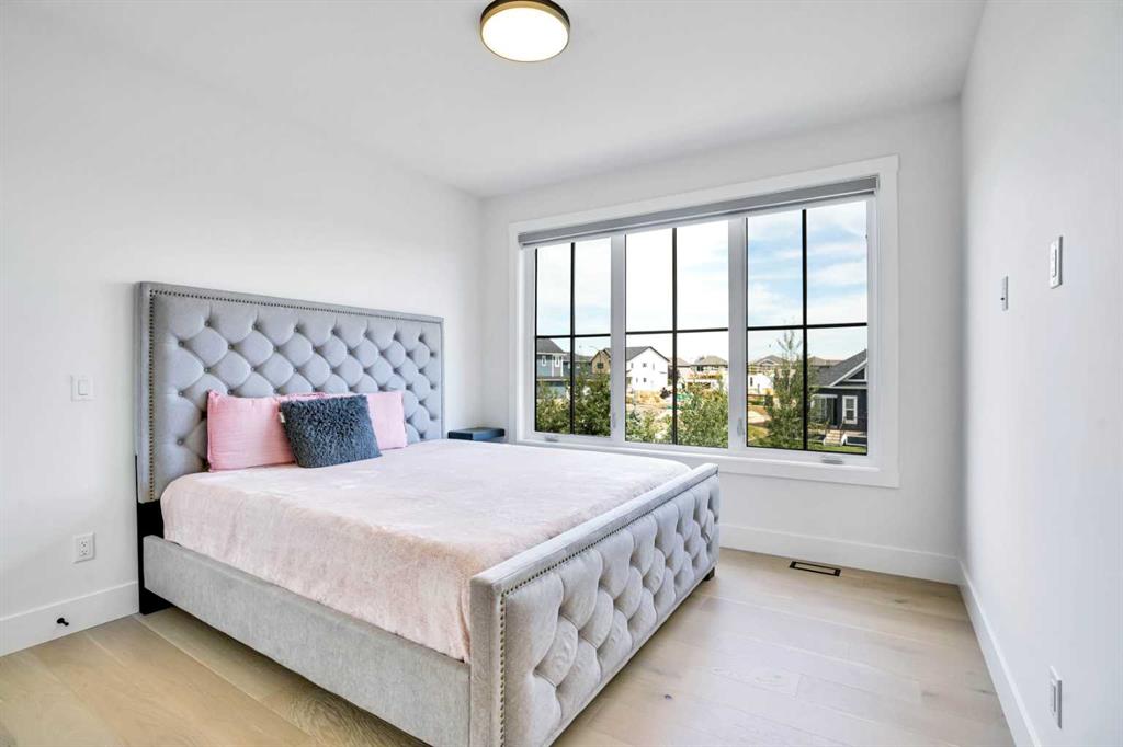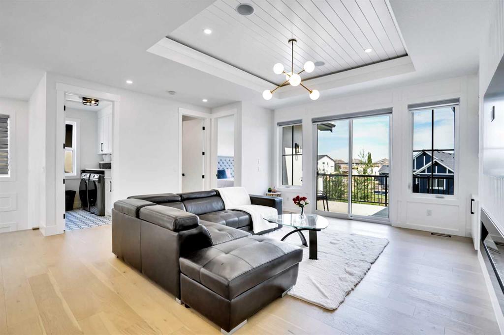 Welcome to Luxury Living in the Desirable Community of Coopers Crossing! This stunning luxury estate home offers over 4,100 square feet of living space in the sought-after community of Coopers Crossing in Airdrie. Upon entering this beautiful home, you’ll be greeted by a grand foyer with vaulted ceilings leading to the upper floor. The main floor of the home features 10-foot ceilings and a versatile office space that can be used as a bedroom. A full bathroom is also located on the main floor. The open-concept layout boasts a cozy family room with a gas fireplace and custom feature wall, a formal dining room with coffered ceilings and custom feature walls, and a dream chef’s kitchen with a waterfall island and seating area. High-end Kitchen-Aid appliances, built-in oven, gas range, and a large built-in refrigerator are the highlights of this beautiful kitchen. The kitchen area also features a spice kitchen/pantry with a gas range and refrigerator. The entrance from the triple garage that has epoxy floors leads you to your large mudroom with storage for your coats and shoes. The upper floor features 9-foot ceilings, a large chandelier, and a feature wall leading to 4 bedrooms and 3 full bathrooms, including a primary suite with a large walk-in closet. The upper floor also features a large laundry room with a sink. A spacious bonus room with sliding doors leading to the upper balcony completes the upper floor. The fully finished basement has 9-foot ceilings, a built-in custom wet bar with a sink, microwave, and bar fridge, leading to a rec room with a feature wall wired in for a projector setup and surround sound. An additional bedroom and a 4-piece washroom complete the basement. The exterior is now landscaped and wired with custom gemstone lighting that can be used year-round, security system with cameras, and a large lot backing onto a green space walkway, the garage is also wired for an electric car charger. This home is designed and built with many upgrades, including engineered hardwood, custom railing, tile, feature walls, A/C and built-in closets. You don’t want to miss the opportunity to own this dream home. Check our the 3D Tour and Schedule your showing today!