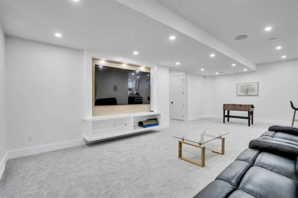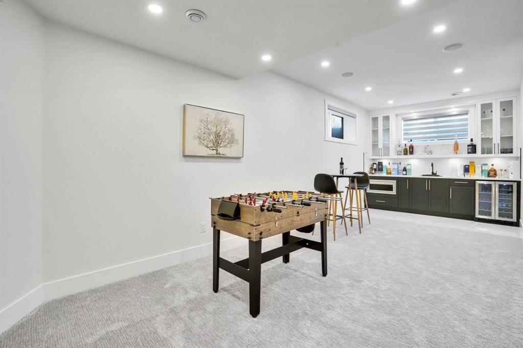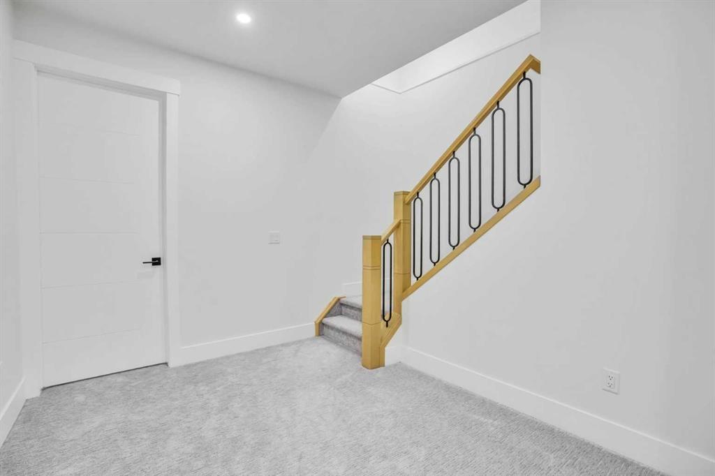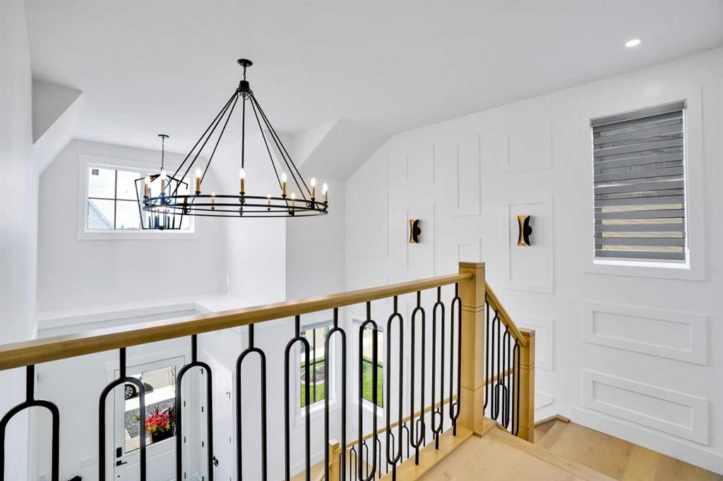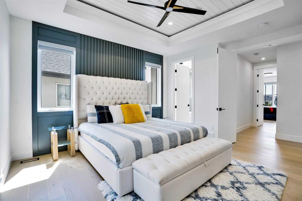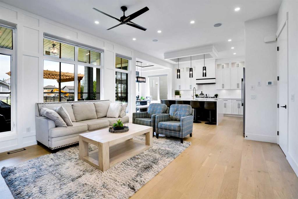 Welcome to Luxury Living in the Desirable Community of Coopers Crossing! This stunning luxury estate home offers over 4,100 square feet of living space in the sought-after community of Coopers Crossing in Airdrie. Upon entering this beautiful home, you’ll be greeted by a grand foyer with vaulted ceilings leading to the upper floor. The main floor of the home features 10-foot ceilings and a versatile office space that can be used as a bedroom. A full bathroom is also located on the main floor. The open-concept layout boasts a cozy family room with a gas fireplace and custom feature wall, a formal dining room with coffered ceilings and custom feature walls, and a dream chef’s kitchen with a waterfall island and seating area. High-end Kitchen-Aid appliances, built-in oven, gas range, and a large built-in refrigerator are the highlights of this beautiful kitchen. The kitchen area also features a spice kitchen/pantry with a gas range and refrigerator. The entrance from the triple garage that has epoxy floors leads you to your large mudroom with storage for your coats and shoes. The upper floor features 9-foot ceilings, a large chandelier, and a feature wall leading to 4 bedrooms and 3 full bathrooms, including a primary suite with a large walk-in closet. The upper floor also features a large laundry room with a sink. A spacious bonus room with sliding doors leading to the upper balcony completes the upper floor. The fully finished basement has 9-foot ceilings, a built-in custom wet bar with a sink, microwave, and bar fridge, leading to a rec room with a feature wall wired in for a projector setup and surround sound. An additional bedroom and a 4-piece washroom complete the basement. The exterior is now landscaped and wired with custom gemstone lighting that can be used year-round, security system with cameras, and a large lot backing onto a green space walkway, the garage is also wired for an electric car charger. This home is designed and built with many upgrades, including engineered hardwood, custom railing, tile, feature walls, A/C and built-in closets. You don’t want to miss the opportunity to own this dream home. Check our the 3D Tour and Schedule your showing today!