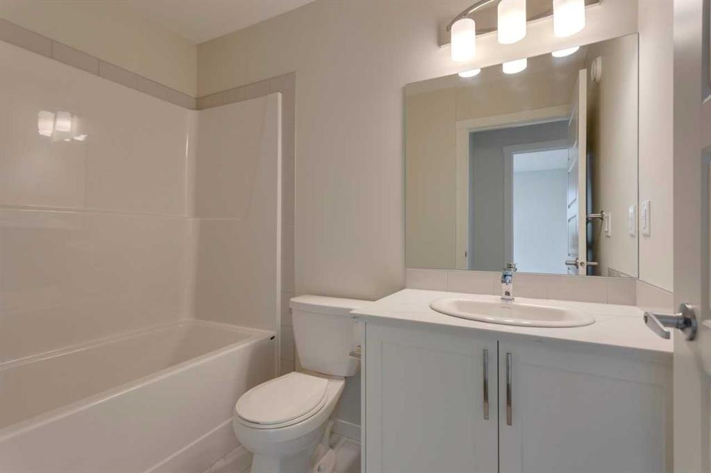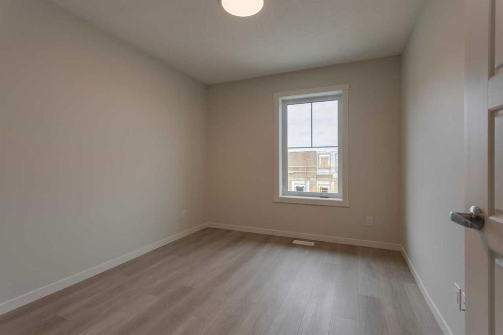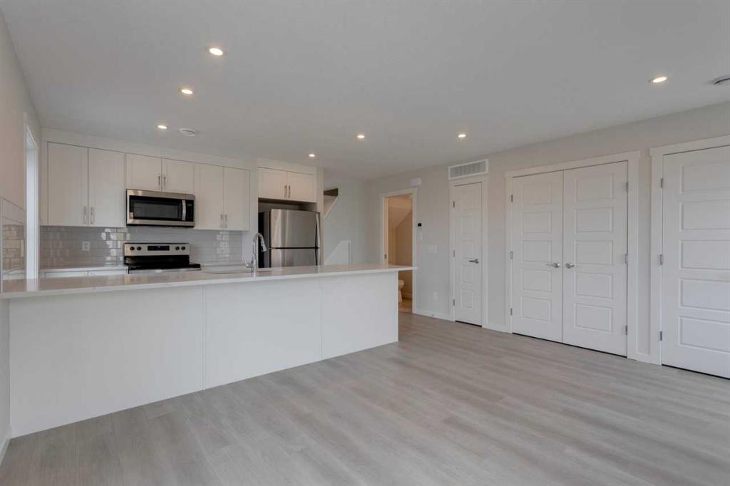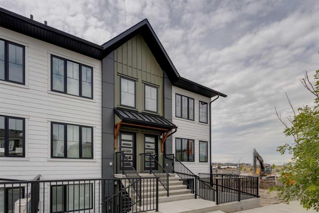 Empire I at ZEN Livingston – This stylish 3-bed, 2.5-bath home offers 1,406 sq ft of energy-efficient living with triple-pane windows, enhanced insulation, and a solar rough-in for year-round comfort and lower utility costs. The main floor features luxury vinyl plank flooring, knockdown ceilings with pot lights, and a bright open-concept living and dining area that flows into a fully fenced backyard—complete with landscaping, irrigation, and a BBQ gas line—perfect for families, pets, and added privacy. The modern kitchen showcases elegant WHITE ICE QUARTZ countertops, a sleek tile backsplash, and a 6-piece Whirlpool appliance package. Upstairs includes two spacious bedrooms, a primary bedroom with ensuite, and convenient upper-floor laundry. UPGRADES include BLACK HARDWARE and RAILING, CLOUD WHITE SHAKER STYLE CABINETS and durable HARDIE BOARD siding for added hail and fire resistance. QUICK POSSESSION AVAILABLE! Located just steps from the Livingston Hub—featuring a splash park, skating rink, sports courts, and more—this home offers the perfect blend of comfort and community.