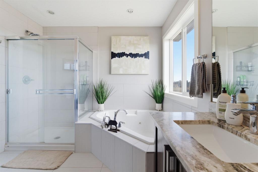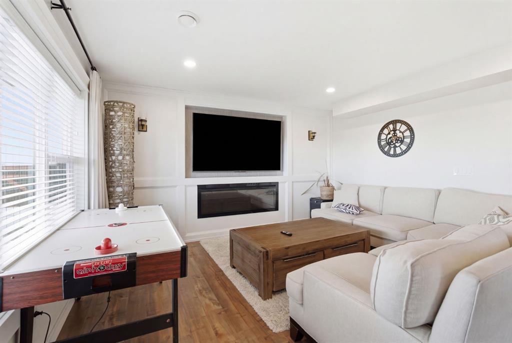 The fully developed basement adds incredible functionality, featuring a comfortable games area, subfloor for added warmth and comfort, and a wet bar rough-in ready for your future entertaining vision. Step outside and fall in love with the ultimate backyard lifestyle. Designed for summer nights and weekend gatherings, the yard features a stamped concrete patio, dedicated firepit area, upgraded fencing with anti-dig dog features, and direct access to peaceful green space views.