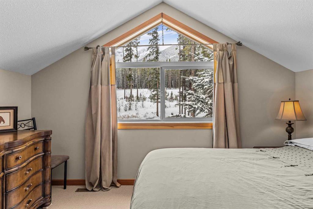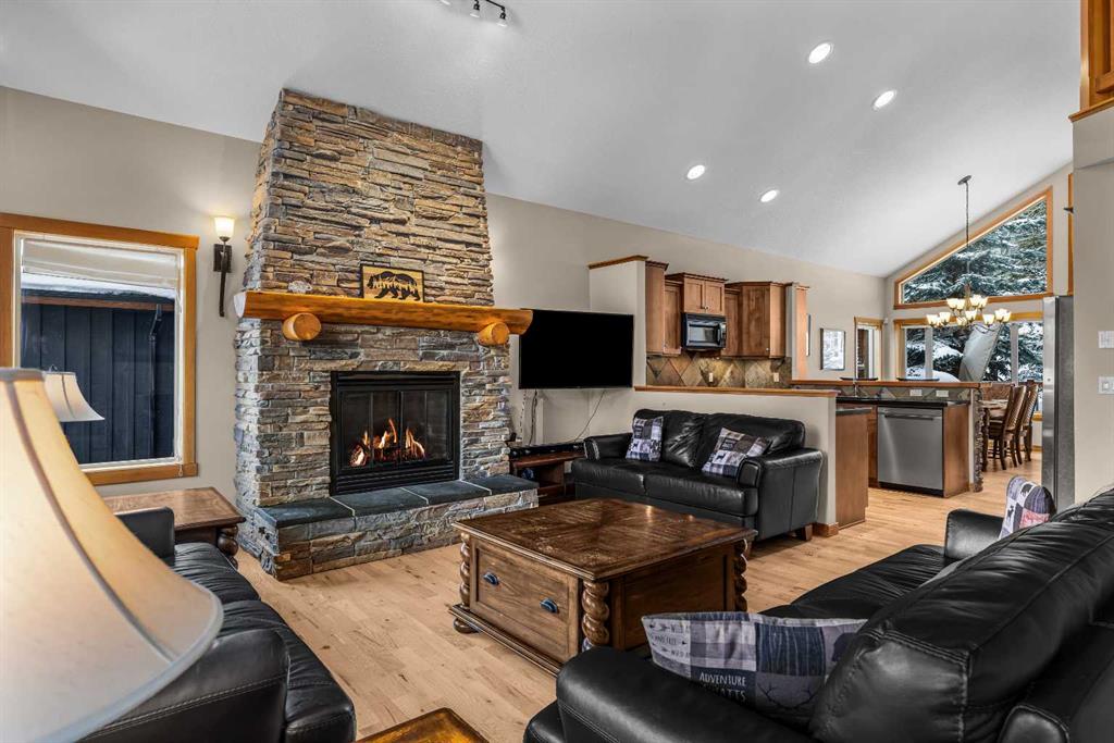 Situated in the picturesque Three Sister Mountain Village, this semi-detached home presents a spacious layout with four bedrooms and four bathrooms, including two primary bedrooms, offering over 2500sqft of space and privacy ideal for a family or multiple guests. Nestled on a tranquil mountain street, residents are treated to the serene beauty of the surrounding landscape through generous large windows and open spaces that frame breathtaking mountain views. The home is in immaculate shape, featuring hardwood floors that add warmth and elegance throughout the living spaces, complemented by granite countertops in the kitchens and bathrooms that blend durability with luxury. An open concept design further enhances the sense of space and flow, seamlessly integrating indoor and outdoor living. This property combines practicality with luxury, making it an ideal choice for those seeking a harmonious blend of comfort, elegance, and scenic tranquility in a tranquil mountain setting. This home has a large double car garage and ample storage, ideal for all sports equipment.