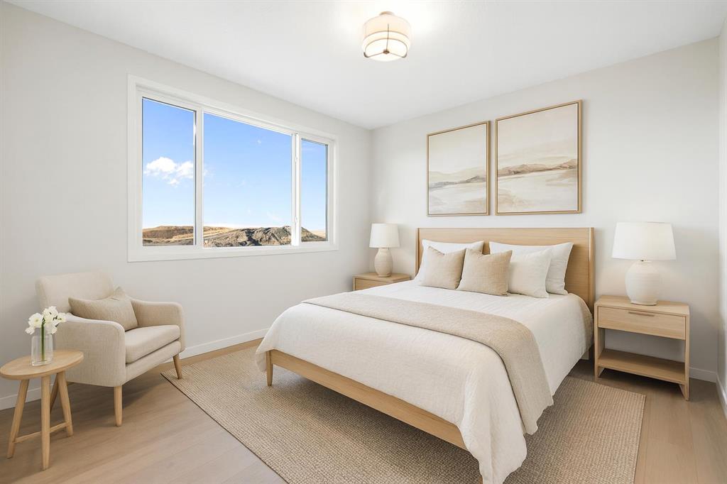 Welcome to 147 Marmot Grove NW, where refined design meets relaxed luxury in the heart of Glacier Ridge – one of NW Calgary’s most sought-after new communities. This home isn’t just a place to live; it’s a lifestyle. Think quiet morning coffee overlooking the environmental reserve, golden hour dinners on the patio with no neighbours behind, and the ease of single-level living that still offers space for family, guests, and entertaining. From the moment you step inside, light pours through soaring vaulted ceilings that crown the open-concept main floor. The living, kitchen, and dining areas flow together effortlessly, creating a sense of airiness and connection. Every detail feels elevated, from the 8′ interior doors to the luxury vinyl plank flooring that stretches seamlessly throughout. At the center of it all is a chef’s kitchen designed for both beauty and purpose. Two-toned cabinetry in taupe and dark grey, Delta champagne bronze hardware, and a custom hood fan set a rich, modern tone. The oversized island is not only a gathering place – it’s brilliantly functional, with banks of deep drawers for organized, easy-access storage. A farmhouse sink, appliance garage, and six-burner gas range complete the culinary experience, while direct access to the rear patio invites effortless indoor-outdoor living. The living room feels warm yet sophisticated, anchored by a fully tiled electric fireplace – a natural focal point for cozy nights in or weekend gatherings. Just off the main area, the primary suite is designed as a true retreat – it’s connected to everything you need: a walk-in closet, laundry area, and a spa-inspired ensuite that feels straight out of a boutique hotel. Enjoy a custom tiled shower with a rainfall head and wand, a soaker tub, quartz countertops, and walls wrapped in elegant tile. Every finish, every fixture whispers “relax, you’re home.” Downstairs, the fully developed basement extends your living space beautifully with three additional bedrooms, a full bath, and a versatile rec room – perfect for a home gym, movie nights, or a cozy guest retreat. Outside, the stone and Hardie Board exterior offers timeless curb appeal, while the great-sized yard and peaceful backdrop of the environmental reserve create the kind of privacy and natural connection that’s rare in the city. The community of Glacier Ridge offers rolling landscapes, wide open skies, and thoughtfully planned streetscapes. You’ll find parks, walking paths, playgrounds, and new amenities taking shape all around you – just minutes from established conveniences, yet surrounded by quiet and space. Every inch of this sprawling bungalow is a testament to thoughtful design and modern living. It’s a home that celebrates both beauty and function – perfect for those who want to live stylishly, comfortably, and connected to nature. Experience the feeling of home, elevated. Schedule your private showing today.