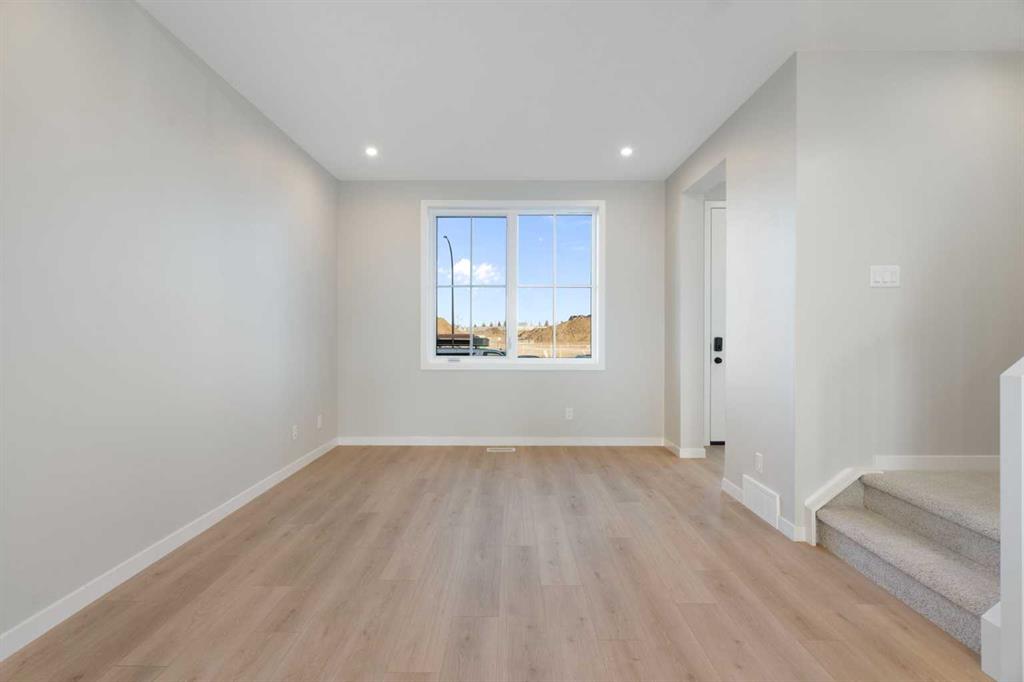 Welcome to this thoughtfully crafted attached home nestled in Rangeview, Calgary’s first garden-to-table community. Designed with timeless charm & modern functionality, this home combines character, comfort, & versatility in a way that just feels right. From the moment you pull up, the home’s classic farmhouse exterior, complete with smartboard detailing and front landscaping, makes a memorable first impression. Inside, the main floor unfolds in a bright, open-concept layout with large windows that bathe the space in natural light and elevate the overall warmth & livability of the home. At the front, the inviting living room offers the perfect place to relax or host guests, framed by soft neutral tones & high-quality finishes. The rear dining area is open & spacious—easily accommodating everything from weekday meals to larger holiday gatherings. In the centre of the home, the chef-inspired kitchen takes center stage. It’s designed for real life—with plenty of prep space, full-height cabinetry, & modern hardware—all tied together by large a large island, sleek countertops & a functional layout that keeps everything within reach. Whether you’re cooking for one or a crowd, this kitchen is built to perform & impress. Just off the dining room, the rear mudroom adds practical elegance with built-in storage and direct access to your private backyard with room for a future garage—ideal for Calgary’s changing seasons and everyday convenience. Upstairs, the primary suite offers a peaceful retreat, featuring a spa-like ensuite with tasteful finishes, a walk-in shower, & space to truly unwind. Two additional bedrooms provide flexibility for kids, guests, or a home office, & the upper-level laundry adds convenience without sacrificing space. The home also includes a separate side entrance, creating an excellent opportunity to develop a future basement suite (A secondary suite would be subject to approval and permitting by the city/municipality) —perfect for multi-generational living or added income potential. Built with energy-efficient triple-pane windows, this home delivers year-round comfort & long-term savings without compromising on design. But why Rangeview? More than just a neighbourhood, Rangeview is a lifestyle centered around food, connection, & community. As Calgary’s first agri-urban community, it’s designed to inspire & connect—offering everything from community gardens & edible landscaping to seasonal food festivals, markets, & workshops. It’s a place where neighbours become friends & the simple act of growing, cooking, & sharing food brings people together. Stroll along walkable streetscapes, unwind in scenic parks, & discover a vibrant calendar of community events designed to enrich your everyday life. With stunning architecture, thoughtful urban planning, & a warm, welcoming spirit, Rangeview is a place to plant roots.