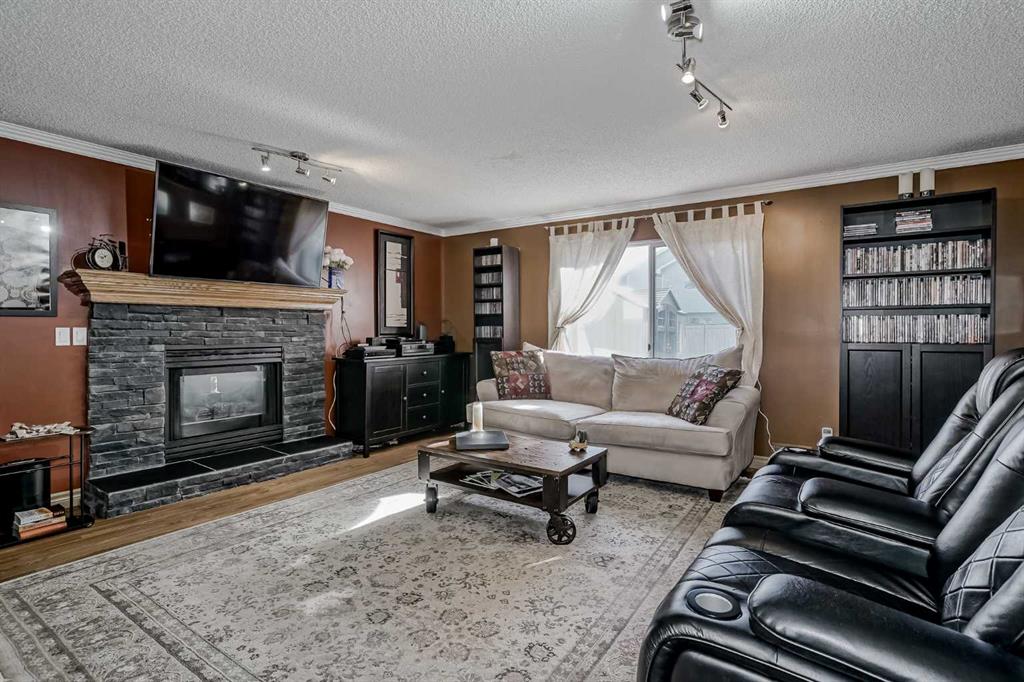 Welcome to this beautifully updated home, situated on a friendly close in the highly desirable community of Citadel! In 10 mins WALK to the community association, playgrounds, ravine trails AND the Citadel Park Elementary school! A tot-lot playground is across the street! In 5-10 minutes you’re at Superstore, Crowfoot Crossing LRT, Beacon Hill (Costco), and Royal Oak (auto mall) shopping districts as well as Tom Baines Secondary School, the Crowfoot Public Library and Robert Thirsk High School; Not to mention the Rocky Ridge YMCA/skate park and NEW athletic park! 20 minutes or less to the Calgary International Airport, Market Mall, U of C, Glenbow Ranch Provincial Park, and the Trans Canada to Banff. INSIDE: This sophisticated home offers a functional design perfect for a family large or small, with great sight lines and 2300 square feet of living space! The home glows with warming, contemporary decor throughout. Main level immediately impresses with soaring vaulted ceilings and gleaming hardwood floors that extend from the entry. The renovated, dark-finished maple kitchen is a standout, complete with granite countertops, matching porcelain tile backsplash, an eat-in area, and top-of-the-line stainless steel appliances. There are two spacious secondary bedrooms that will sleep queen beds (one has a super-fun bonus), these rooms share an under-the-sea 4-piece bathroom. An updated, modern, 4-piece ensuite and walk in closet make for a true Primary Suite. Comfort and gathering are emphasized in the huge family room, which is hard-wired for surround sound, centered around a beautiful stone fireplace. The smart layout allows plenty of space to create a room within a room (currently a beverage center). A concealed main-level laundry room, dedicated office space (currently a gym) plus a large mudroom means plenty of room to bustle the family in and out of your ATTACHED DOUBLE GARAGE! A main floor powder room is right beside the mudroom/office for privacy and convenience! Each bathroom has a low-flush toilet. The finished basement could be a family hangout, fourth bedroom, an expansive hobby area, let your imagination be your guide! A modern security system brings peace of mind. A fully fenced, south-facing backyard provides abundant sunlight and a perfect space for outdoor enjoyment. Imagine, sitting on your deck with friends and family beneath the privacy and serenity of mature trees, the BBQ going, plenty of room for kids to play… or simply a warm beverage as the sun peaks through the branches of your own oasis! The backyard also hosts a generous 8’x10’ shed plus an established apple tree and lilac bushes for seasonal enjoyment. Seller has thoughtfully had the front and rear grass seeded and treated for a beautiful bloom in the spring! Speaking of the front, you noticed the oversized driveway? It was specifically expanded for an extra wide (heavy) truck, travel trailer, or simply ease of visitor access.