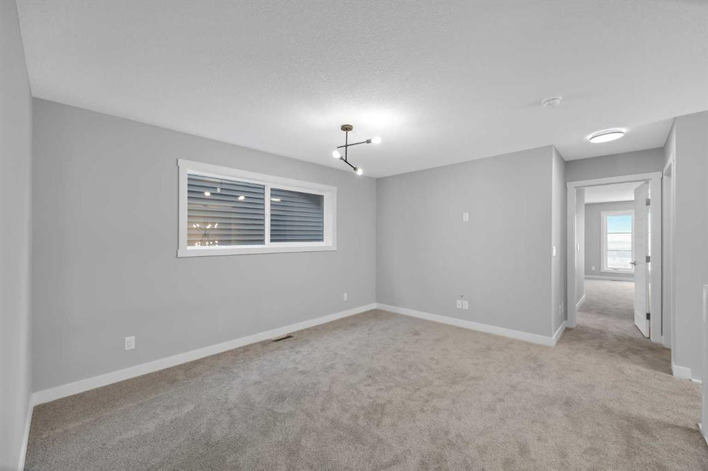 Meet the Alpine, Built by Master Builder Douglas Homes! Nestled in the highly sought-after community of Crimson Ridge, this stunning new build offers the perfect blend of luxury, comfort, and nature. Backing onto scenic walking paths and the prestigious Lynx Ridge Golf Course, this home provides breathtaking views and an unparalleled sense of tranquility. Spanning over 2,450sq. of developed living space, this open-concept design is crafted with quality finishings and modern elegance. Hardwood floors flow seamlessly throughout the main level, leading to a great room with a cozy fireplace, an inviting dinette, and a chef-inspired kitchen featuring, quartz countertops, stylish cabinetry, and five stainless steel appliances, including a gas stove. Flex room is ideal as an office or den which offers additional versatility. Step outside to enjoy the expansive 20’ x 10’ covered patio – perfect for entertaining or unwinding in nature. Upstairs, the home continues to impress with three spacious bedrooms, a loft-style bonus room, and a dedicated laundry room. The primary suite is a true retreat, featuring a luxurious 5-piece ensuite with a soaker tub, separate glass shower, double vanities, and a generous walk-in closet. The fully finished basement extends the living space with a large recreational room, an additional bedroom, and a full bathroom, making it perfect for guests or family gatherings. With 9 ft. ceilings, 8 ft. doors on the main level, and exceptional craftsmanship throughout, this home is both sophisticated and functional. Reverse walkout allows grade level access to the lower level through the garage. Surrounded by nature and minutes from amenities, this is a rare opportunity to own a Douglas Home in one of the most desirable location.