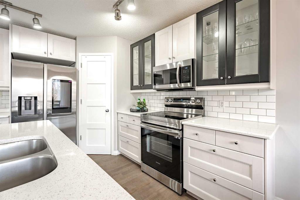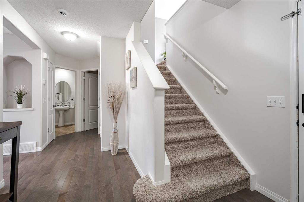 Located in the sought-after Fairways community, where Woodside Golf Course winds through the neighbourhood, this fully finished 2-storey is the perfect blend of comfort and style. With 4 bedrooms and 3.5 bathrooms, this move-in-ready home welcomes you with warm hardwood floors, loads of natural light, and an easy, open-concept layout. Cozy up by the gas fireplace, host dinner in the bright dining nook overlooking the private oasis backyard with plenty of mature trees, and enjoy cooking in the stylish kitchen featuring quartz countertops and newer stainless steel appliances. Main-floor laundry and a 2-piece bath add everyday convenience. Upstairs, the vaulted bonus room is ideal for movie nights or a play space, alongside two generous bedrooms, a full bath, and a spacious primary retreat complete with a 4-piece ensuite featuring a separate tub and shower. The fully finished basement (upgraded with sound-dampening insulation) offers even more space with a family room, fourth bedroom, and 3-piece bath — perfect for guests, teens, or a home office. Step outside to a backyard with the perfect amount of privacy; built for making memories — relax under the gazebo, enjoy the deck, and take advantage of the movable shed and play place. The insulated, drywalled double attached garage with epoxy flooring is the cherry on top. Bonus features? Central A/C, cellular blinds, and Gemstone Lights for stunning, customizable year-round exterior lighting — festive, functional, and fabulous. If you’ve been waiting for a golf course community home that truly checks all the boxes, this is it. Come see your next chapter today.