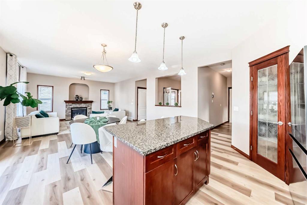 What an opportunity to live in a home that can host extended family, maybe have a separate entrance MIL suite or become also your place of business! RARE 2-storey 9FT CELING WALKOUT Home available to buy in the LAKE CITY of Chestermere! This layout is winning: Generous&Open main floor layout with a living& dining room + kitchen, as well as an office (or maybe a second dining area), main floor laundry room, a powder room and access to your OVERSIZED attached double garage! Upstairs: a large VAULTED ceiling BONUS room, full bath to be enjoyed by the 2 bedrooms (Btw the same exact size… no kids tug-of-war here) and your own Master bedroom, private bath&walkin closet. The walkout basement is fully finished (permits in place) and it offers a large bedroom, a full bath as well as a large living room&lots of storage. Here you will find the rough in for a future kitchen (with proper City approvals this could become a suite with separate entrance). This home has Central A/C, a large composite deck off the main floor(for your morning coffee), new luxury vinyl flooring on the main&basement, new modern toilets on the upper floor & basement, new entrance door and of course a covered front porch to enjoy the afternoon Sun. The house has cement steps & patio leading to the walkout basement. A very RARE feature in this home: a maintenance free LEAF FILTER & gutter protection with lifetime warranty that we will transfer to the new owners. Enjoy the deck in the morning Sun and your fully landscaped home with grass, peonies, liliac , tulips. If you have young kids there much to do the Lake and Summer is glorious here. Quick access to Glenmore Trail, 17 Ave and so much shopping. COME VISIT & STAY!