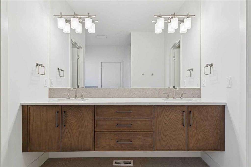 Upstairs, the loft adds flexible living space—movie nights, play area, reading nook, you choose. Three comfortable secondary bedrooms share a clean, modern 3-piece bath, while the primary suite stands out as a true retreat. Flooded with natural light, it features a 5-piece ensuite with a soaker tub, double vanity, and walk-in shower, plus a walk-in closet that connects directly to the laundry room for maximum convenience. The fully finished basement makes this home even more compelling: a legal two-bedroom suite with private side entrance, full kitchen, bathroom, and storage. Whether you’re looking for an ideal rental, multigenerational living, or a private guest space, this suite delivers real value.