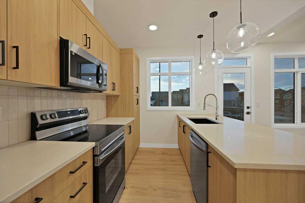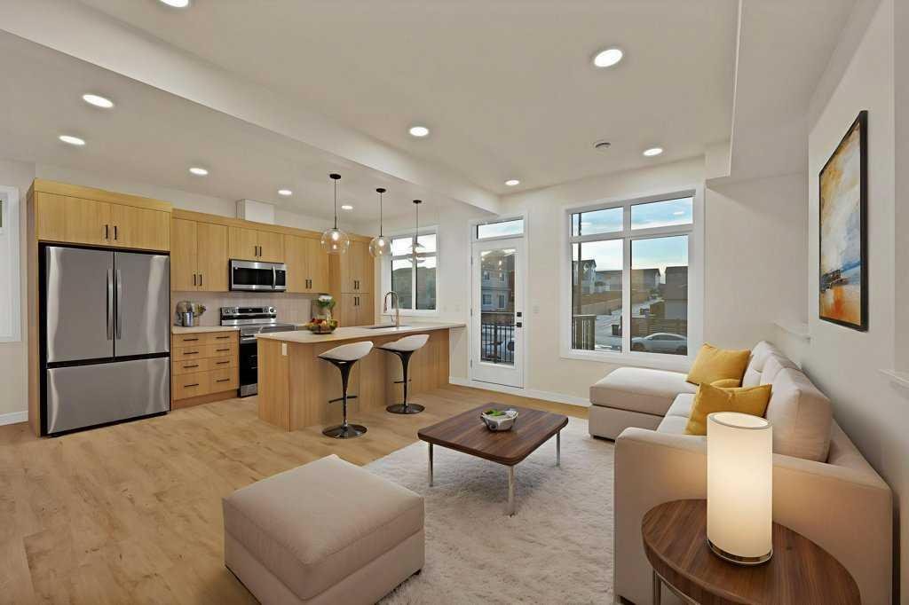 Welcome to TheFEN by Rohit Homes, a stunning unit that combines modern design with everyday comfort. The open floor plan showcases sleek finishes highlighted by “Ethereal Zen” color pattern, a spacious pantry, and plenty of countertops and storage to inspire your culinary side. The bright living room is perfect for entertaining, while the dining area opens onto a private balcony ideal for relaxing evenings. A stylish powder room completes the main level. Upstairs, you’ll find three bedrooms including a luxurious primary suite with a five-piece ensuite and walk-in closet. A four-piece main bathroom and convenient upper-floor laundry add to the thoughtful layout. Located in the sought-after community of Livingston, residents enjoy access to parks, pathways, and a state-of-the-art community center, along with close proximity to shopping, dining, schools, and major roadways. The FEN by Rohit Homes is more than a home—it’s a lifestyle in one of Calgary’s most vibrant communities.