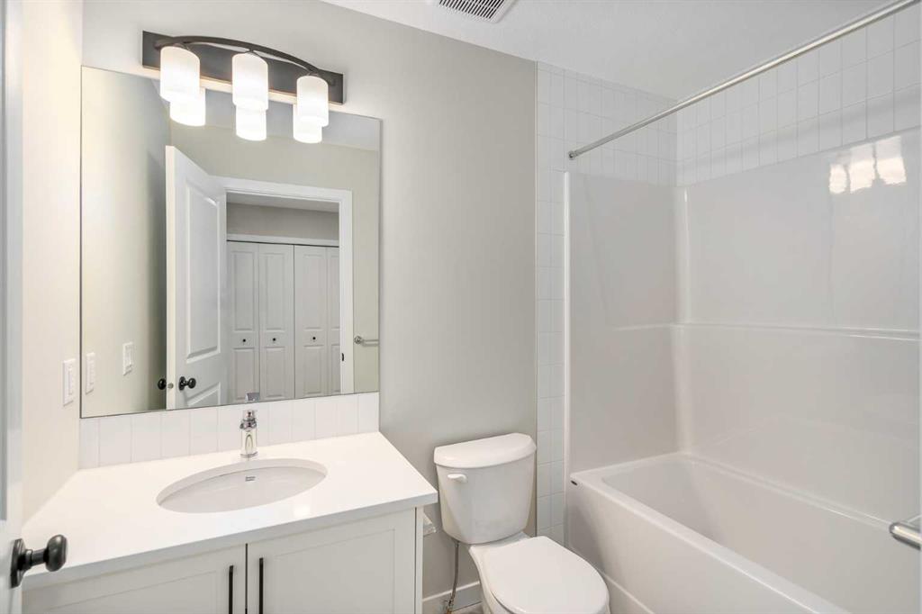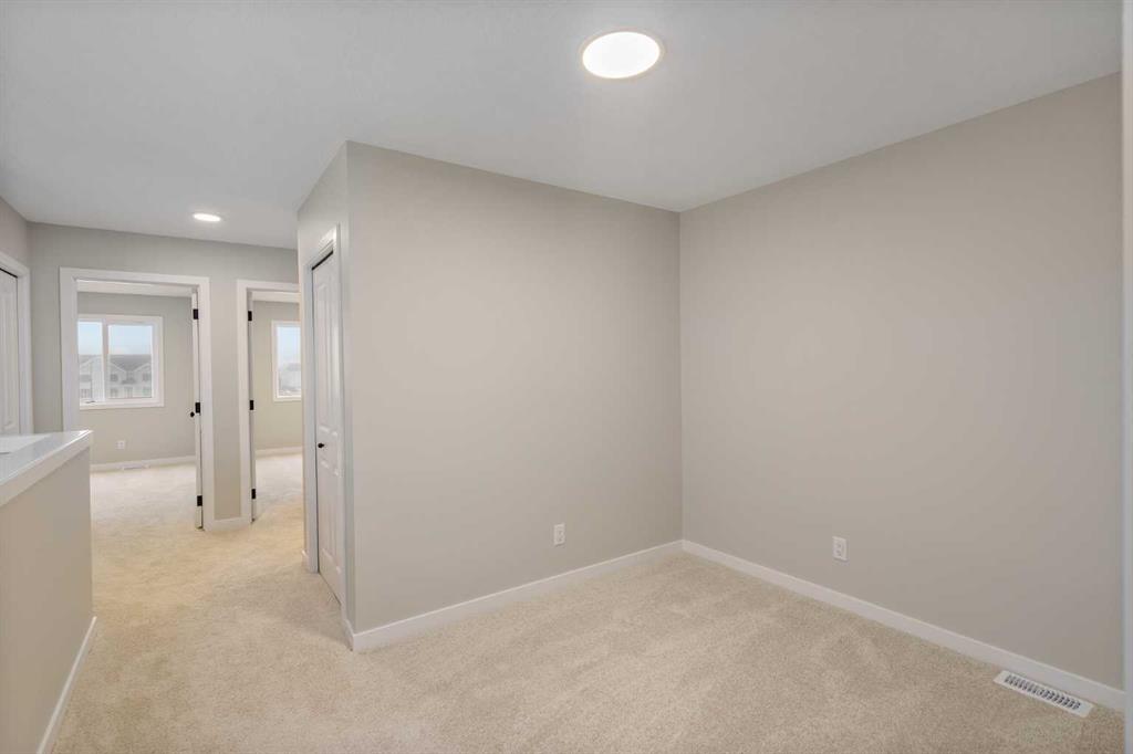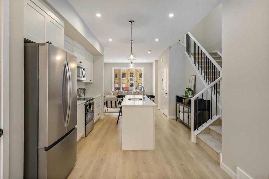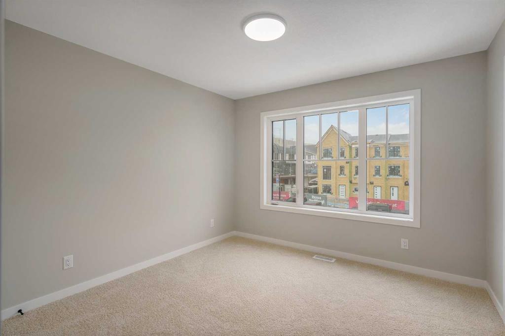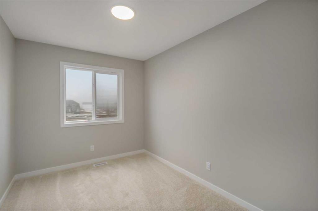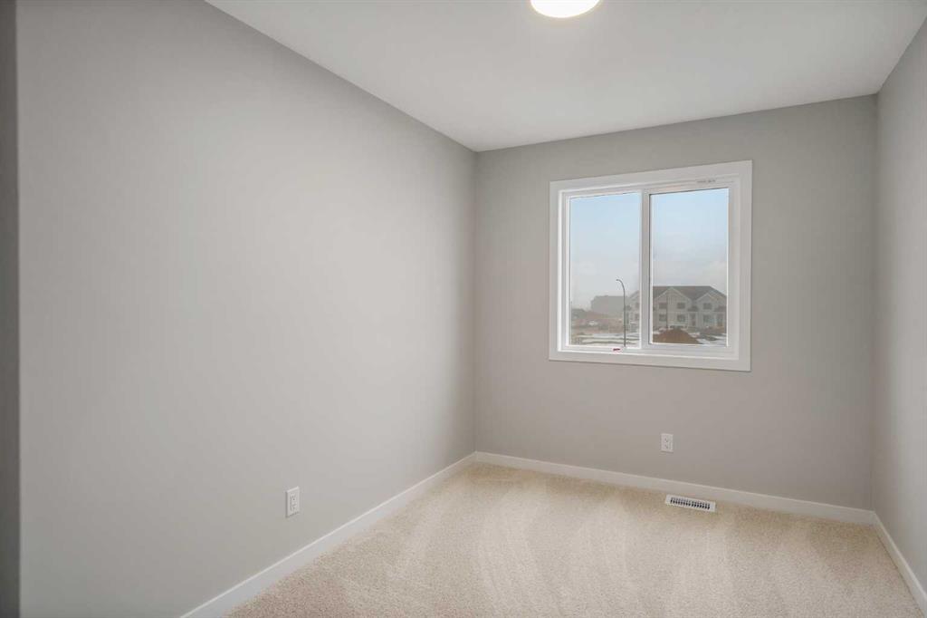 Welcome to this thoughtfully crafted attached home nestled in Rangeview, Calgary’s first garden-to-table community. Designed with timeless charm & modern functionality, this home combines character, comfort, & versatility in a way that just feels right. From the moment you pull up, the home’s classic farmhouse exterior, complete with smartboard detailing and front landscaping, makes a memorable first impression. Inside, the main floor unfolds in a bright, open-concept layout with large windows that bathe the space in natural light and elevate the overall warmth & livability of the home. At the front, the inviting living room offers the perfect place to relax or host guests, framed by soft neutral tones & high-quality finishes. The rear dining area is open & spacious—easily accommodating everything from weekday meals to larger holiday gatherings. In the centre of the home, the chef-inspired kitchen takes center stage. It’s designed for real life—with plenty of prep space, full-height cabinetry, & modern hardware—all tied together by large a large island, sleek countertops & a functional layout that keeps everything within reach. Whether you’re cooking for one or a crowd, this kitchen is built to perform & impress. Just off the dining room, the rear mudroom adds practical elegance with built-in storage and direct access to your private backyard with room for a future garage—ideal for Calgary’s changing seasons and everyday convenience. Upstairs, the primary suite offers a peaceful retreat, featuring a spa-like ensuite with tasteful finishes, a walk-in shower, & space to truly unwind. Two additional bedrooms provide flexibility for kids, guests, or a home office, & the upper-level laundry (WASHER & DRYER INCLUDED) adds convenience without sacrificing space. The home also includes a separate side entrance, creating an excellent opportunity to develop a future basement suite (A secondary suite would be subject to approval and permitting by the city/municipality) —perfect for multi-generational living or added income potential. Built with energy-efficient triple-pane windows, this home delivers year-round comfort & long-term savings without compromising on design , and WINDOW COVERINGS ARE INCLUDED. But why Rangeview? More than just a neighbourhood, Rangeview is a lifestyle centered around food, connection, & community. As Calgary’s first agri-urban community, it’s designed to inspire & connect—offering everything from community gardens & edible landscaping to seasonal food festivals, markets, & workshops. It’s a place where neighbours become friends & the simple act of growing, cooking, & sharing food brings people together. Stroll along walkable streetscapes, unwind in scenic parks, & discover a vibrant calendar of community events designed to enrich your everyday life. With stunning architecture, thoughtful urban planning, & a warm, welcoming spirit, Rangeview is a place to plant roots