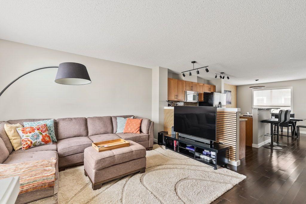 Welcome to 149 Elgin Gardens SE — an exceptional cared- for end-unit townhouse nestled in the heart of McKenzie Towne, one of Calgary’s most vibrant & sought-after communities known for its charming character, family-friendly atmosphere, & unbeatable convenience. This beautifully renovated 2-storey home has been thoughtfully updated throughout, blending modern finishes with functional design. Stay cool during Calgary’s warm summers with central air conditioning (Lennox unit), & enjoy the comfort & peace of mind offered by numerous recent upgrades. Highlights include; new hot water tank installed in 2024, new baseboards & trim, custom closet doors with sleek black hardware, Legrand Adorne switches & outlets, modern light fixtures & fresh paint throughout, low-maintenance hardwood flooring on the main & upper level, solid wood staircase railings with black hardware, neutral top-down/bottom-up cellular window coverings, striking vertical slat feature walls in the living room, dining room & 2-piece guest bathroom & the convenience of the Telus security system (no contract to assume). The open-concept main floor features a bright & spacious layout ideal for both everyday living & entertaining. The kitchen is equipped with granite countertops, an undermount Blanco sink with upgraded faucet, stainless steel appliances, & a bar-height island — perfect for casual dining or hosting friends. For hosting formal dinner parties, the oversized dining area will comfortably accommodate your guests. After dinner, the cozy living room is a perfect place to relax. A convenient 2-piece guest bathroom completes the main level. Upstairs, you’ll find two generously sized bedrooms, each with its own full en-suite bathroom. Both bathrooms have been upgraded with quartz countertops, undermount sinks, updated faucets, modern mirrors, travertine tile, sliding barn doors & coordinating black hardware. The primary bedroom includes a walk-in closet with built-in shelving & southwest-facing windows offering views of the Rocky Mountains. A bright flex space or home office area completes the upper level. The basement level offers additional storage, a laundry area with front-load machines, & direct access to the double attached garage, which is insulated, drywalled, & features a durable epoxy-coated floor. The garage backs onto a paved alley & within steps from the garage are guest parking stalls. Enjoy outdoor living in the fenced front yard with southwest exposure — perfect for barbecues, relaxing, or entertaining. Living in McKenzie Towne means access to beautifully planned streetscapes, walkable amenities, & a true small-town community vibe. You’re just minutes from the shops, restaurants, & services on High Street, with quick access to Stoney Trail & Deerfoot Trail, & close proximity to the South Health Campus, Seton amenities, schools, parks, and playgrounds. Don’t miss this rare opportunity to own a fully updated, move-in-ready townhouse in one of Calgary’s most beloved communities.