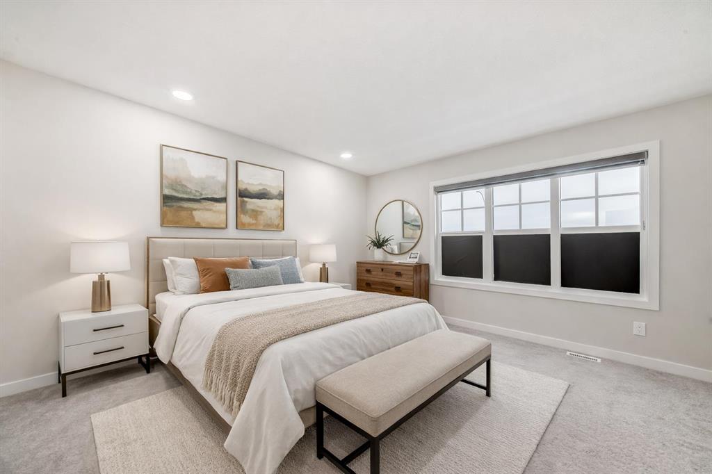 Welcome to this BEAUTIFULLY crafted 3-BEDROOM HOME with a SEPARATE SIDE ENTRANCE, offering a RARE OPPORTUNITY in the highly sought-after community of Rangeview. DESIGNED with contemporary ARCHITECTURE and REFINED FINISHES, this home delivers a bright, open-concept layout tailored for modern living. The main floor is elevated by SOARING 9’ ceilings and DURABLE LUXURY VINYL PLANK flooring, creating a seamless and sophisticated flow between the living and dining spaces, perfect for both everyday comfort and effortless entertaining. At the heart of the home, the chef-inspired kitchen impresses with full-height, soft-close cabinetry, elegant quartz countertops, and a premium stainless steel appliance package, including a chimney hood fan and a built-in microwave. A spacious pantry with custom-built-in shelving enhances both function and organization while maintaining a clean, streamlined aesthetic. Upstairs, the primary suite is thoughtfully designed for comfort and privacy, featuring a walk-in closet with custom built-in organizers and a sleek 3-piece ensuite highlighted by a beautifully tiled shower. Two additional bedrooms offer versatility for family, guests, or a home office, each complete with custom closet systems. A stylish 4-piece main bathroom and a convenient upper-level laundry area complete the upper floor with everyday ease. The unfinished basement, complemented by a separate side entrance, presents exceptional future potential ideal for additional living space or income-generating opportunities. A beautiful walkway to the side entry adds both durability and convenience. This home continues to impress outdoors and with its added features. Enjoy a fully fenced and beautifully landscaped backyard, complete with a spacious deck and sleek aluminum railings, perfect for summer gatherings and outdoor relaxation. The property also features an oversized garage with over 10-foot ceiling height, offering excellent space for larger vehicles, storage, or future customization. To ensure year-round comfort, the home is equipped with air conditioning, keeping you cool during Calgary’s warm summer months. Rangeview offers the perfect balance of tranquillity and connectivity. Surrounded by parks, pathways, and green spaces, the community promotes an active outdoor lifestyle while keeping you within easy reach of major routes, shopping, and essential amenities. This is the PERFECT HOME you have been DREAMING OF, OFFERING the LIFESTYLE YOU TRULY DESERVE. CALL your Realtor NOW to SCHEDULE YOUR PRIVATE SHOWING BEFORE it’s GONE !!!