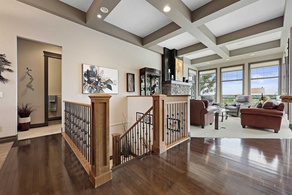 ABSOLUTELY THE FINEST VIEW THE RIDGE HAS TO OFFER IN SOUTH CALGARY! This rare, pie-shaped 1/3-acre walkout bungalow is perched atop the McKenzie Ridge, offering an unrivalled vantage point with panoramic, unobstructed views of the Bow River Valley, the majestic Rocky Mountains, Fish Creek Park, and the glittering Downtown skyline. Custom-built by Jayman, this executive home boasts over 4,000+ square feet of luxuriously finished living space. It is being offered for sale by the original owners. Situated on a quiet, private street with a sunny west-facing backyard, this property is a true sanctuary, featuring a professionally designed, resort-style backyard, mature landscaping, and ample outdoor space to entertain or relax, with nature at your doorstep. The oversized heated triple-car garage features a walkway ramp, built-in storage, and easy access for added convenience. Inside, a wall of floor-to-ceiling windows along the ridge floods the main level with natural light, showcasing the spectacular views from nearly every room. The main floor features 2,175 sq.ft. of elegant living with soaring 12’ ceilings, rich hardwood floors, an inviting family room with a stone-faced gas fireplace, a front dining room, and a stunning chef’s kitchen with custom cabinetry, granite counters, BOSCH built-in appliances, Samsung Fridge, a dramatic central island with undermount sink, raised eating bar, server bar with beverage fridge and prep sink, and a large walk through server area and built in wall pantry. A spacious main-floor office or flex room is ideal for working from home, with inspiring views. The stately primary retreat offers breathtaking scenery, a large walk-in closet with built-ins, and a luxurious, spa-like en suite with dual vanities, a jetted soaker tub, and a separate steam shower. A mudroom, laundry area, and powder room complete the main level. The fully finished 1,856 sq.ft. The walkout basement is designed for entertaining, featuring two large bedrooms, a massive 55’ x 22’ family/games/rec room with a second gas fireplace, a full entertainment wall, a wraparound wet bar, a five-piece bathroom, and ample storage. Step outside to an 18′ x 13′ covered concrete patio, a 12′ x 12′ open patio with a firepit area, and an expansive 55’ x 12’ upper deck finished with a vinyl surface and glass railings—perfect for enjoying sunsets and nature year-round. Additional features include two A/C units, a built-in speaker system, a stucco-and-stone exterior, a cedar-shake roof, and extensive mature trees and shrubs. Located in one of Calgary’s most sought-after SE communities, just minutes from Fish Creek Park, top-tier schools, a first-class golf course, shopping, and easy access to major roads, this exceptional home offers estate-level living, an unbeatable location, and a lifestyle that’s second to none. Call your favourite REALTOR® today to schedule your private viewing—this is a once-in-a-lifetime opportunity!
