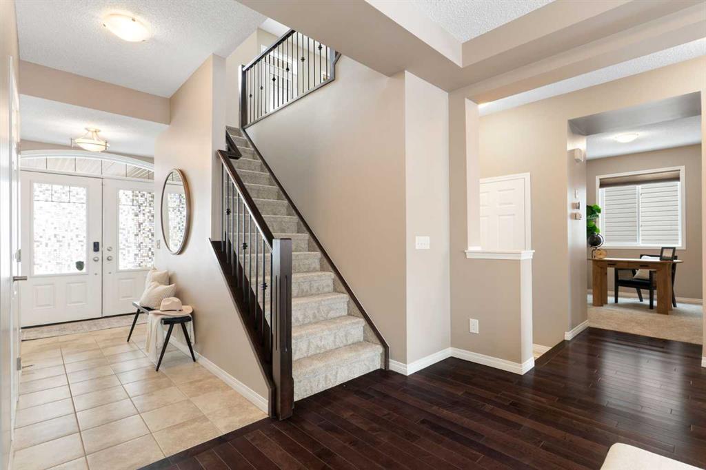 Hello, Gorgeous! Welcome to this beautifully maintained family home in the desirable community of Windsong in Airdrie. Offering over 2,100 sq ft of thoughtfully designed living space, this home features 3 bedrooms, 2.5 bathrooms, a main-floor office, and an upstairs bonus room—perfect for growing families or those working from home.