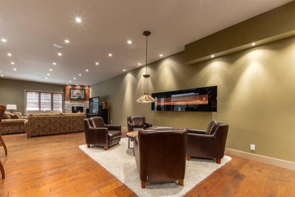 The primary suite, tucked thoughtfully on the main level, is an indulgent escape. Here, mornings begin with light filtering through the trees, and evenings end in the deep calm of a spa-inspired ensuite—complete with a soaker tub, oversized shower, and the promise of relaxation.Ascend the elegant curved staircase to discover two beautifully appointed bedrooms, each with unique architectural charm inviting rest and reflection. The shared, spa-inspired bathroom adds a touch of everyday luxury, with dual sinks & sleek finishes perfect for every family. In the walk-out level, the home reveals a space designed for pure indulgence and effortless entertaining. At its heart stands a custom-built bar, a masterpiece of rich woodwork and impeccable detail, perfect for hosting elegant gatherings or relaxed evenings. Multiple televisions line the entertainment area, creating the ideal backdrop for game nights, while the warm glow of an elegant fireplace adds a touch of charm that encourages lingering conversation. Beyond the entertainment zone, there’s ample space to accommodate a fitness studio or hobby room. This is more than a residence—it’s a lifestyle defined by grace, craftsmanship, and the quiet luxury of living beautifully.