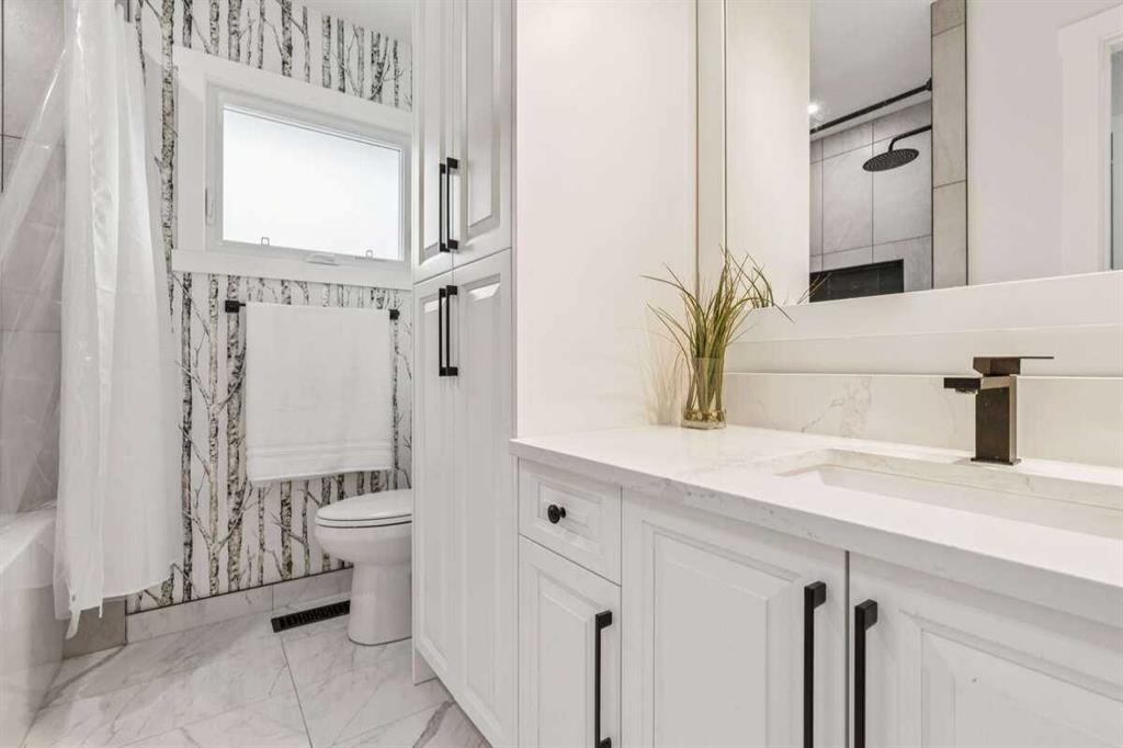 Welcome to this Custom Fully Remodeled Luxury Bungalow on a massive lot in the heart of Braeside. This stunning home boasts impeccable curb appeal with every detail finished to the highest quality. The exterior features new Hardie board siding, new Concrete landscaping with a grand entrance front deck area. As you step inside you are greeted with an abundance of natural light from the new oversized windows. The spacious and bright open concept floor plan features Premium 7″ wide Luxury Vinyl Plank flooring that flows seamlessly throughout the main floor complimented with a modern wood burning Glass Fireplace. The new chef’s inspired gourmet kitchen is a true centerpiece featuring New S/S Appliances, Quartz Countertops with an Elegant Hexagon Marble backsplash and a massive Island with double functional storage on either side. Custom Solid Wood Maple Cabinetry compliments the kitchens, bathrooms, and entry way throughout the entire home. Adjacent is a generous dining area perfect for family and friend gatherings. The spacious master bedroom oasis retreat features a new oversized window. A custom 4 Piece ensuite with double sinks, an oversized Luxurious shower and walk-in-closet. Also, all bedrooms are furnished with custom closet solutions which significantly increase storage and functionality. Additionally, the main floor boasts 2 more spacious bedrooms, an elegant 4 piece main bathroom with floor to ceiling cabinetry for added storage with an upstairs laundry for convenience. The lower level has a separate entrance with an fully finished illegal basement suite which includes: a full kitchen with S/S appliances, 2 generous sized bedrooms, oversized new windows and a gorgeous 3-piece bathroom complimented with a secondary laundry facility. Additionally, there is a new 2 stage high-efficiency furnace and 60G high-efficiency hot water tank. There is side yard access for vehicle entry into the massive backyard featuring a patio area with a custom fire pit. Don’t miss out on this exceptional beautiful property that combines luxury and functionality in a prime location.