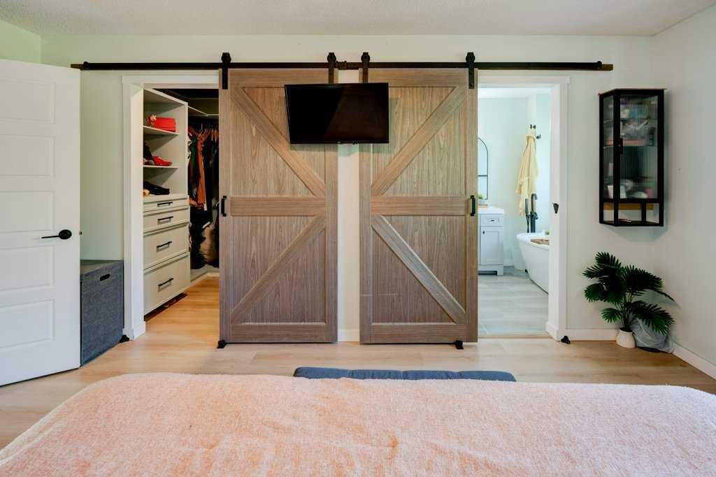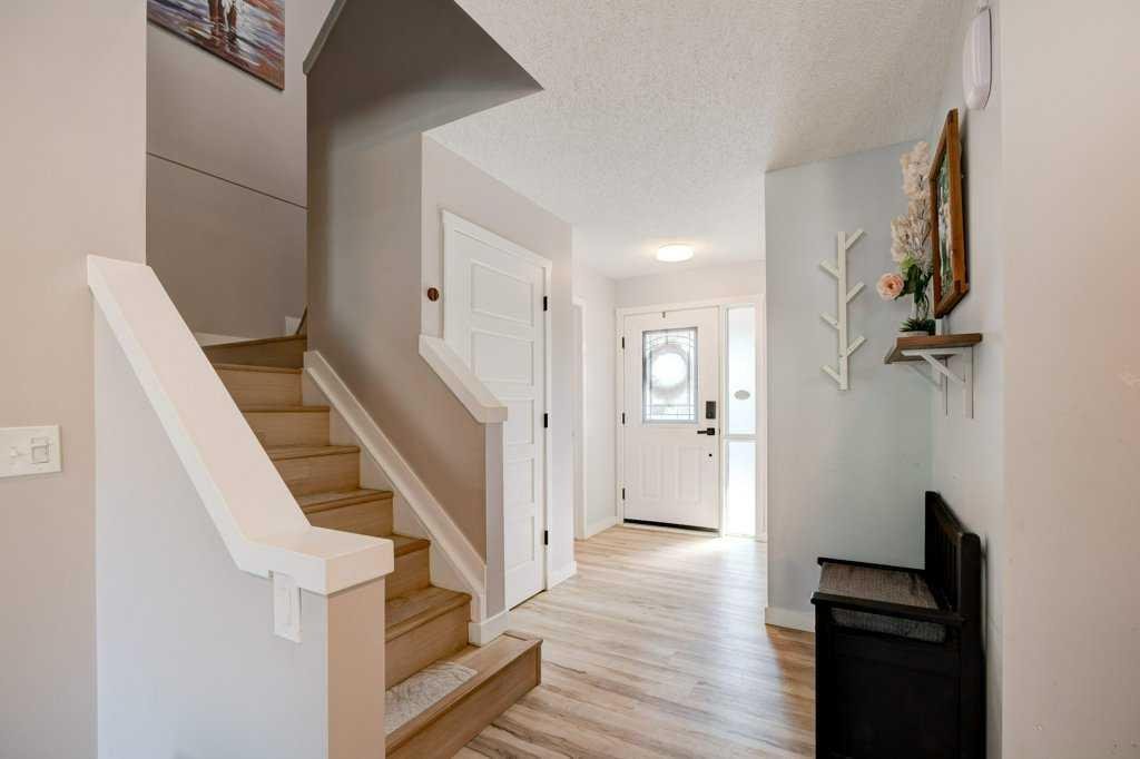 Rare Lake Chaparral opportunity with TWO oversized heated double garages, one front attached and one rear detached. Over 2,450 sq ft of developed space, with major exterior upgrades already done: Hardie Board siding, New Roof, New windows and doors. In-floor heat in the basement and both garages plus A/C for summer comfort. Functional layout with open main floor, generous kitchen workspace with under-cabinet lighting and built-in microwave, corner gas fireplace, bonus room, upper laundry, 3 bedrooms up, flex room down and 4 total bathrooms. Sunny west-facing yard with composite deck and low-maintenance landscaping. Just one block to lake access and walking distance to two schools, parks and pathways, with quick access to shopping, Fish Creek, golf and transit. A standout for buyers who need rare, heated garage space to build, store, create, or run a home business, with year-round Lake Chaparral living at your doorstep.