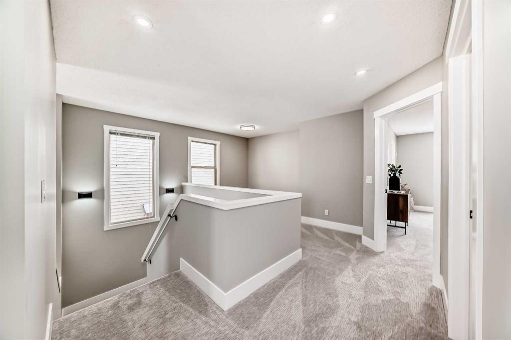 Amazing, renovated and updated home with brand new fully finished walk out basement (2025) to sunny west yard. Very open feel from the moment you step inside this lovely home with all new vinyl plank flooring throughout , with new white cabinetry, quartz counters and new appliances in kitchen and walk through pantry to mudroom/ garage entrance. Easy access from eating area to west balcony. The upper level has a generous primary bedroom, 5 pc ensuite and walk in closet. Bonus is west views to green space. There are 2 other good sized bedrooms on this level, a bonus room and laundry room with new front load washer and dryer. The newly finished lower level is so bright from all the west windows and patio door to walk out. One bedroom with new egress window and 3 pc bathroom plus plenty of storage in the mechanical room.