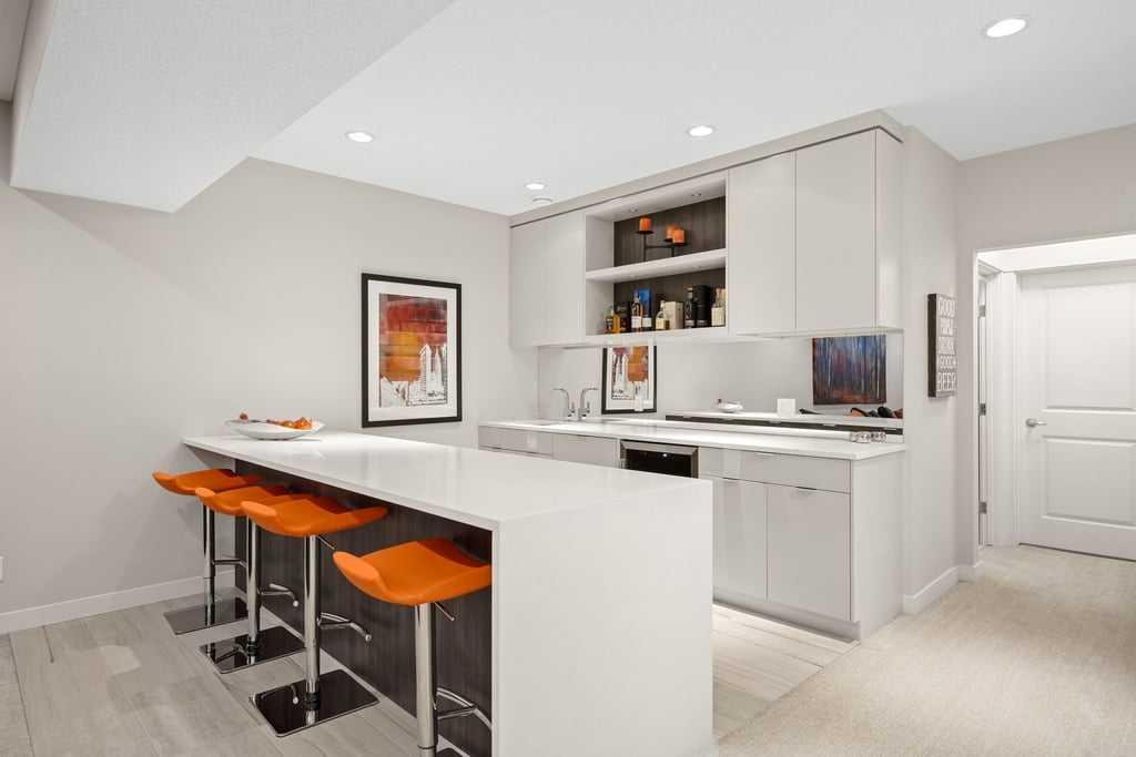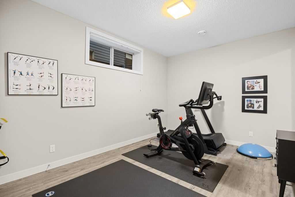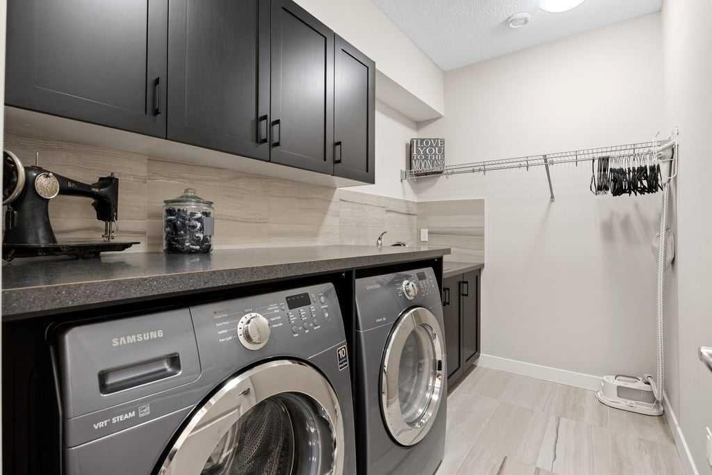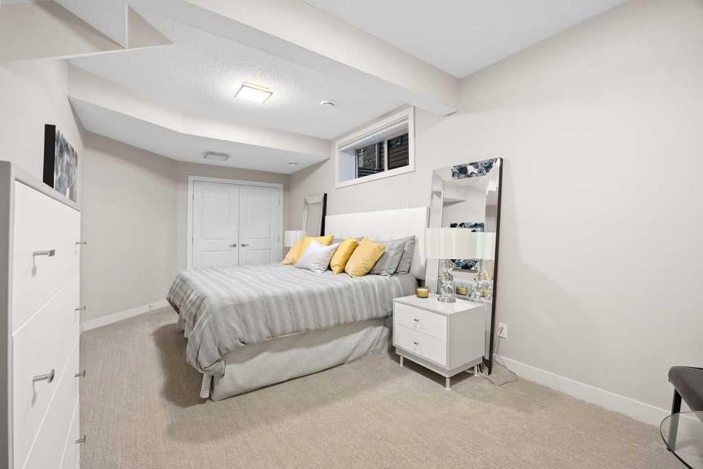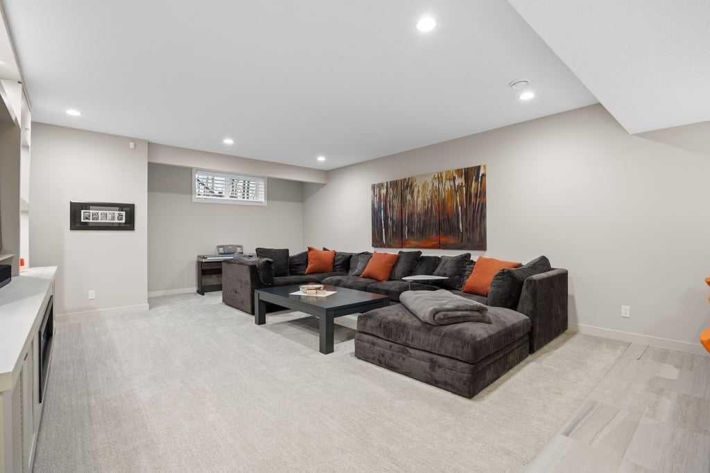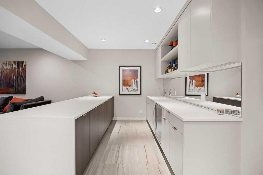 The fully developed lower level expands the home with a generous recreation and media room centred around an electric fireplace with heater, creating a warm and inviting space to relax or entertain. The custom bar area is thoughtfully designed with a second dishwasher, wine fridge, and bar sink — perfect for hosting. Electric heated floors add comfort to the basement bathroom, laundry room, and bar area, while two additional bedrooms and a full bathroom provide excellent guest or family space. The large laundry room offers abundant storage along with a convenient laundry sink.