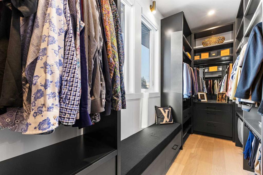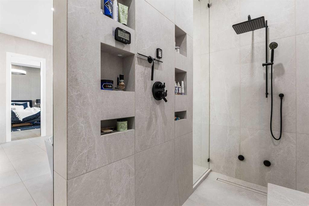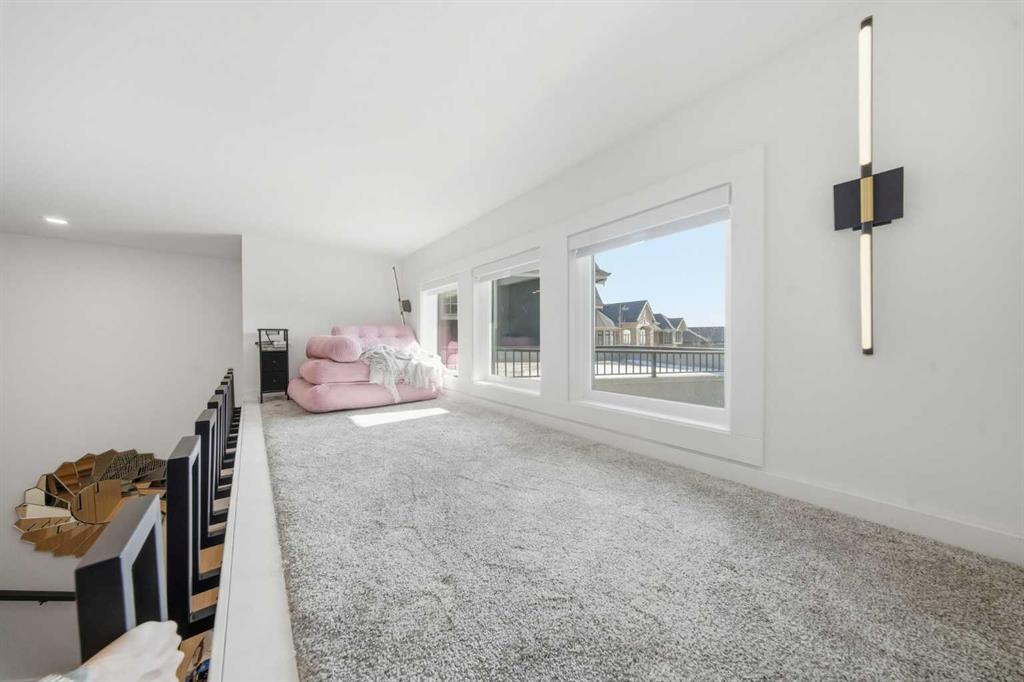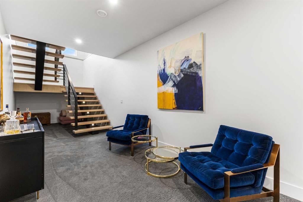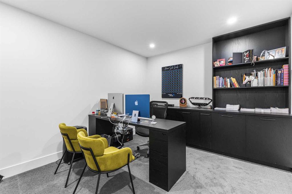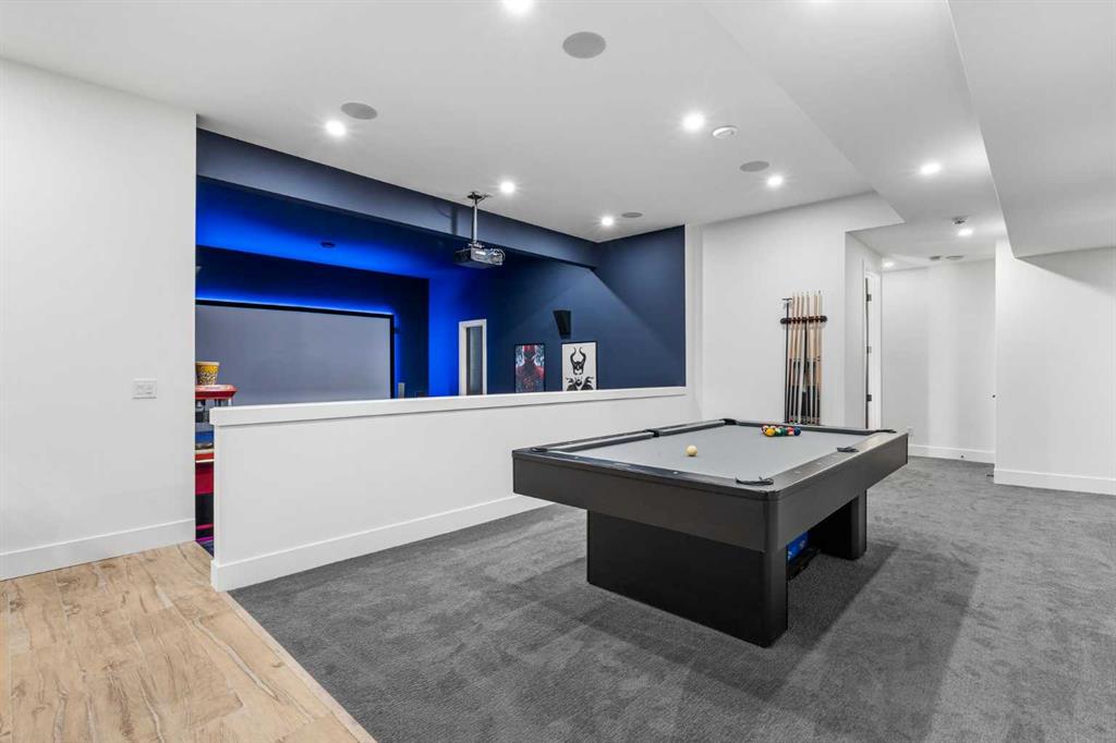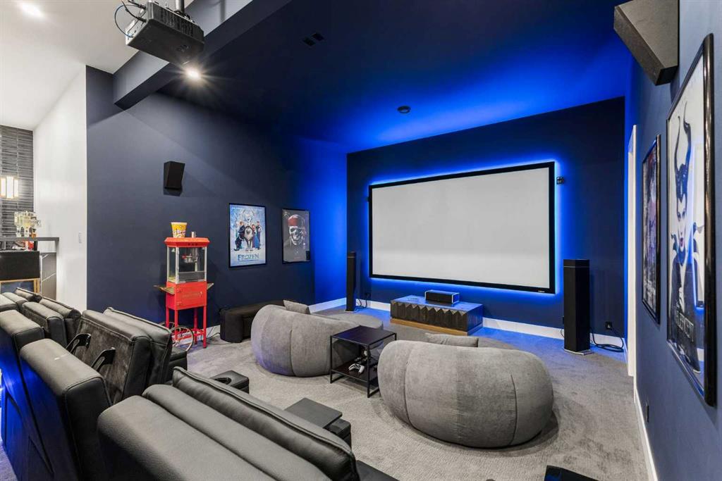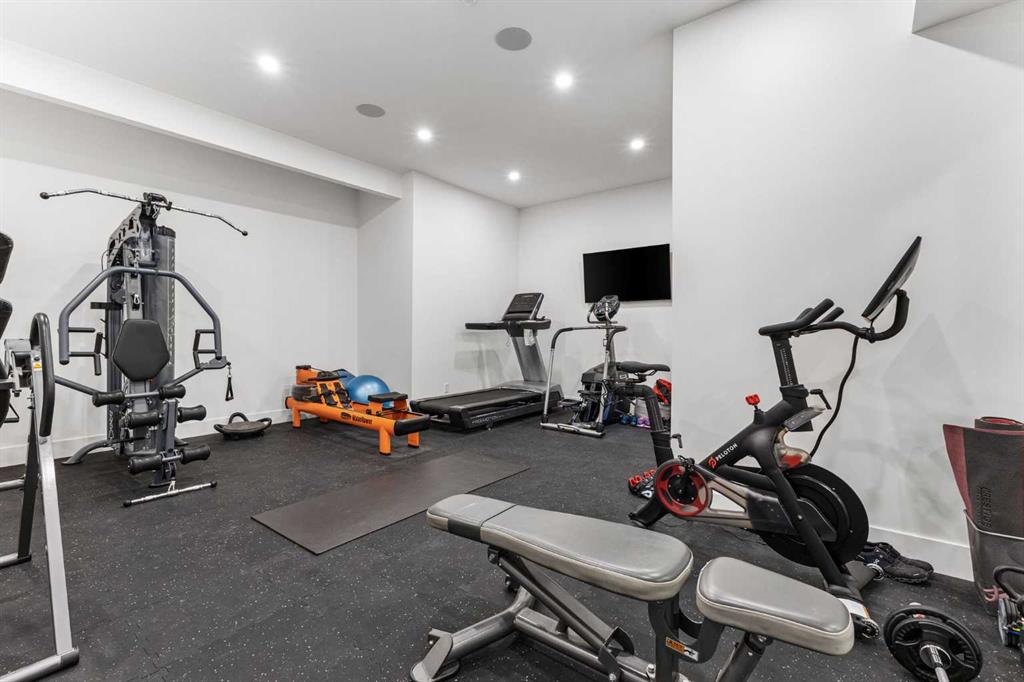 Upstairs, the 9-foot ceilings keep things feeling spacious without the grandeur of the main floor just the right scale for a private retreat. The primary suite is the kind of space you don’t want to leave. His closet is massive and hers is something else entirely, the kind of boutique-style dressing room that makes getting ready feel like an occasion. A spa-calibre 5-piece ensuite w Steam Shower completes the retreat. Two more bedrooms and a 4-piece bath complete the upper floor, along with a dedicated laundry room right where you need it. The lower level is a genuine surprise and at 10-foot ceilings, it never feels like a basement. A dedicated gym, a wet bar, a private office, and a fifth bedroom it functions as a home within a home. The first rec room is a true home theatre, originally roughed in for a golf simulator with the infrastructure still in place. The second is a perfect billiards room that connects to the bar exactly as it should. This level handles movie nights, teenagers, and out-of-town guests without anyone feeling on top of each other.