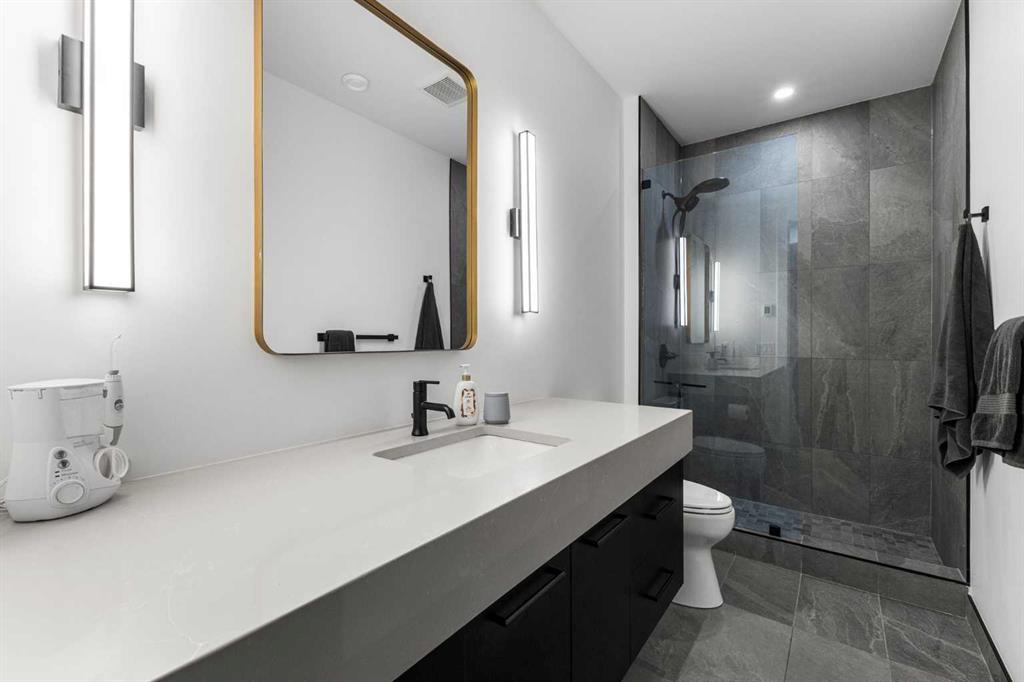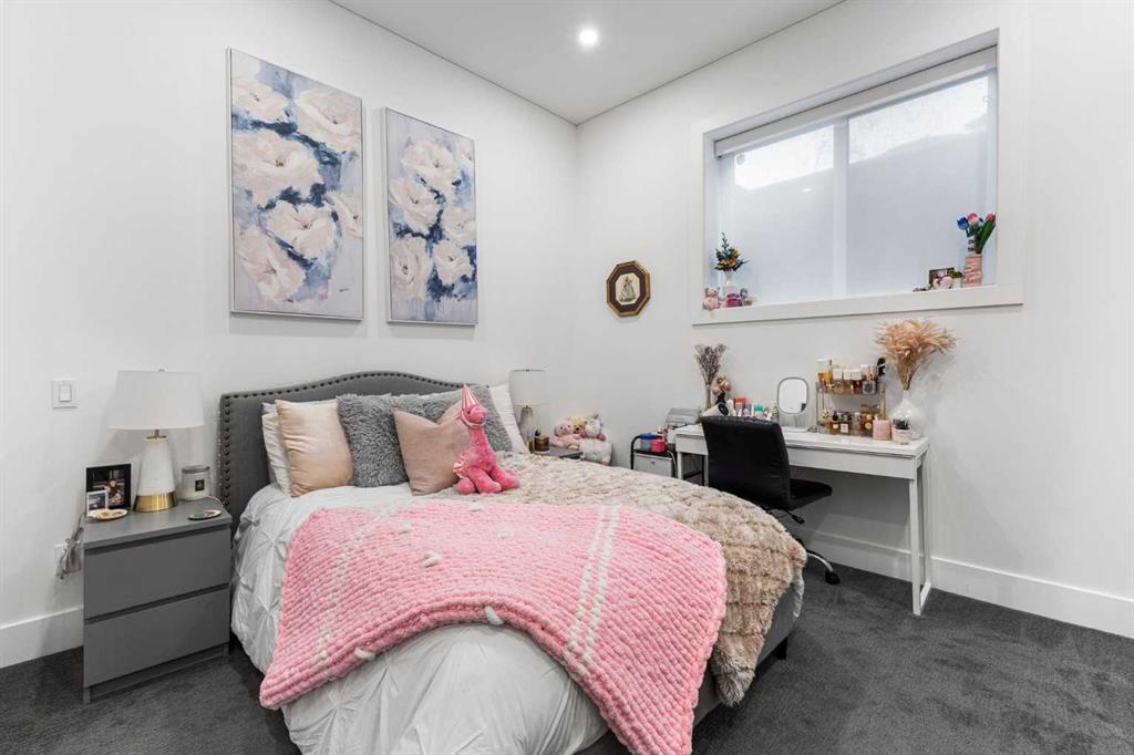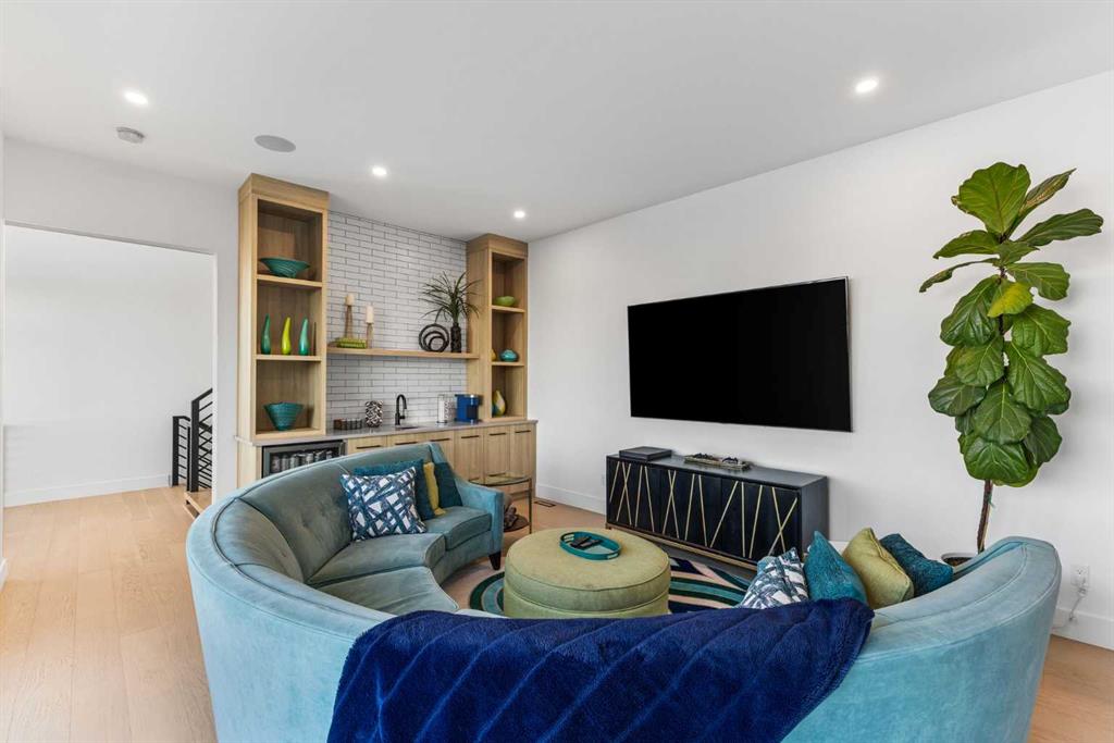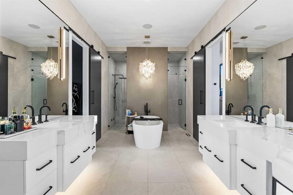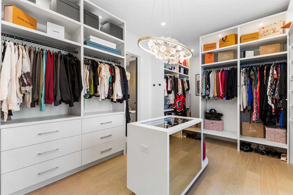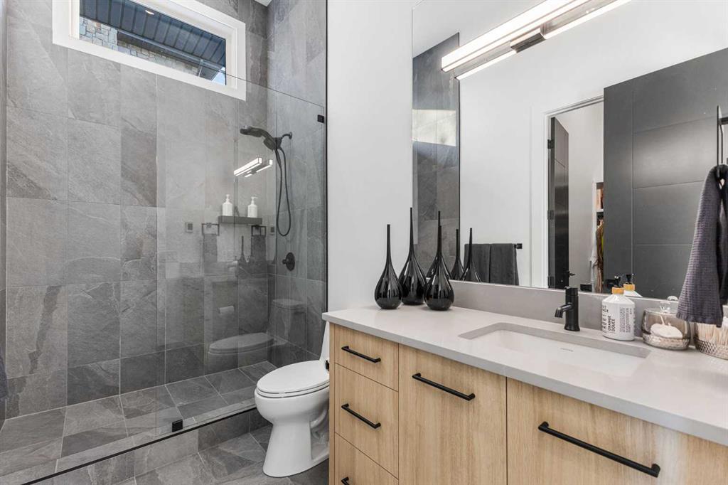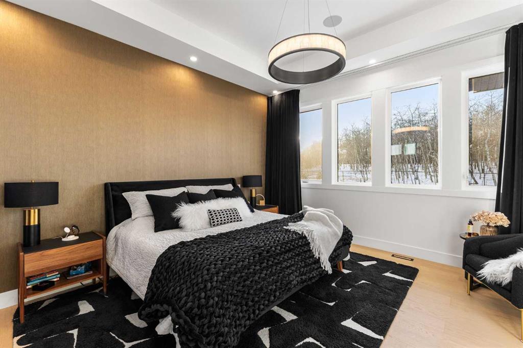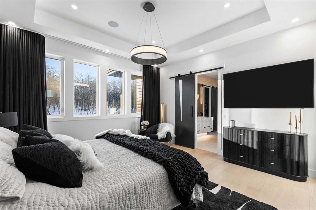 Upstairs, the 9-foot ceilings keep things feeling spacious without the grandeur of the main floor just the right scale for a private retreat. The primary suite is the kind of space you don’t want to leave. His closet is massive and hers is something else entirely, the kind of boutique-style dressing room that makes getting ready feel like an occasion. A spa-calibre 5-piece ensuite w Steam Shower completes the retreat. Two more bedrooms and a 4-piece bath complete the upper floor, along with a dedicated laundry room right where you need it. The lower level is a genuine surprise and at 10-foot ceilings, it never feels like a basement. A dedicated gym, a wet bar, a private office, and a fifth bedroom it functions as a home within a home. The first rec room is a true home theatre, originally roughed in for a golf simulator with the infrastructure still in place. The second is a perfect billiards room that connects to the bar exactly as it should. This level handles movie nights, teenagers, and out-of-town guests without anyone feeling on top of each other.
