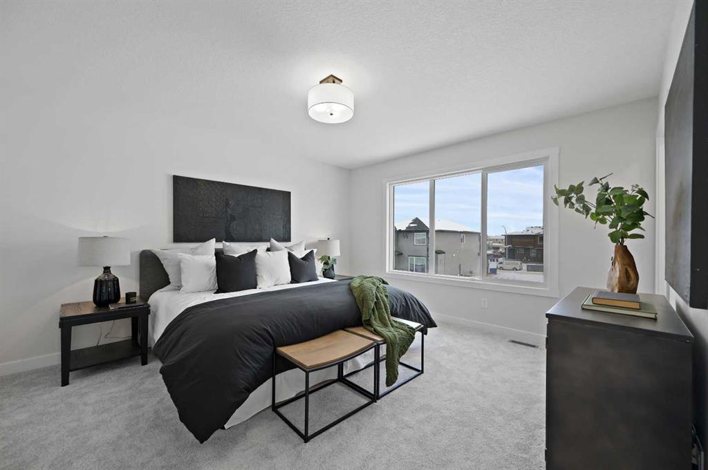 Welcome to the “Capri” by Genesis Builders Group in the desirable community of Fireside. This beautifully crafted home offers over 2,100 sq ft of thoughtfully designed space, including 3 spacious bedrooms, 2.5 bathrooms, and a main-floor office. Step inside to airy 9’ ceilings and an inviting colour palette. A front flex room creates the perfect space for a home office or study, while a conveniently placed powder room adds everyday ease. The dining area flows effortlessly into the centrally located kitchen, which showcases quartz countertops, sleek stainless steel appliances, and ample cabinetry, with an island perfect for entertaining. The living room has a striking focal-point fireplace. A functional mudroom off the double-attached garage completes this level and enhances everyday convenience. Upstairs, you’ll find a thoughtfully designed layout highlighted by a centrally located bonus room offering excellent separation between sleeping areas. The spacious primary retreat features ample room for a king bedroom suite, a dedicated ensuite bathroom with dual sinks and oversized shower and a large walk-in closet. The second bedroom is well-sized, while the third bedroom impresses with its own walk-in closet. A full bathroom and convenient upper-floor laundry complete this level. The unfinished basement offers 9’ ceilings and is ready for your design ideas. *PHOTOS ARE REPRESENTATIVE OF A PREVIOUSLY BUILT MODEL. Colours and selections are included in the photos. RMS has been applied to construction drawings. Taxes have not been assessed.