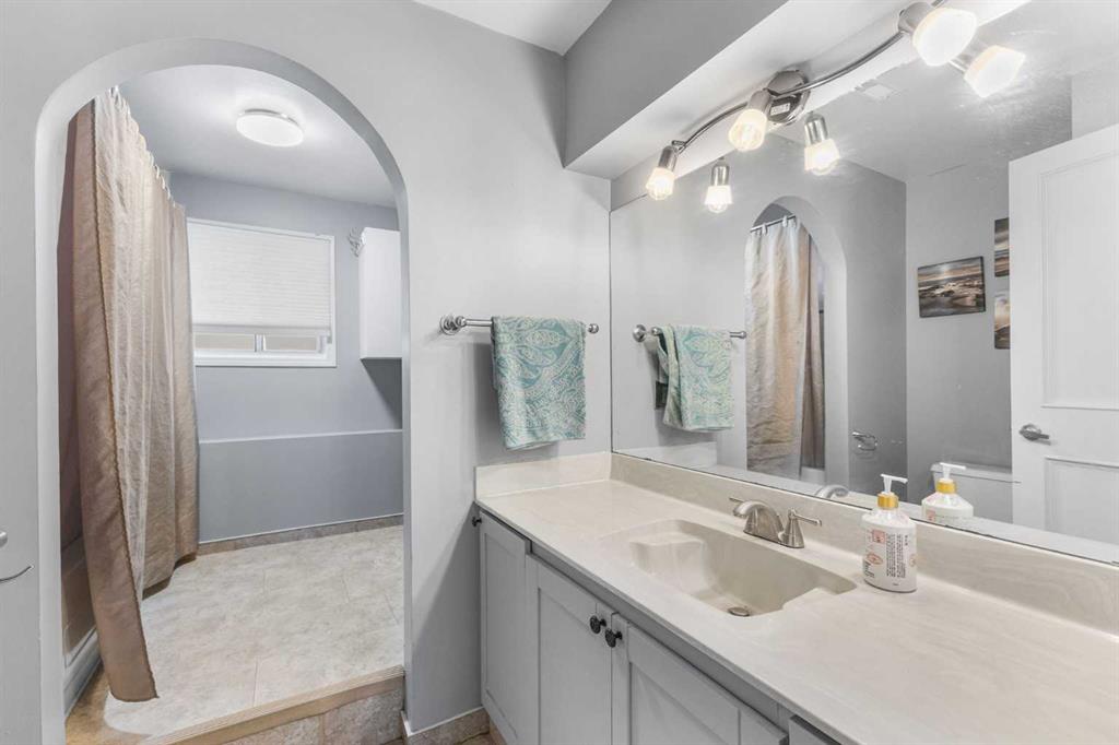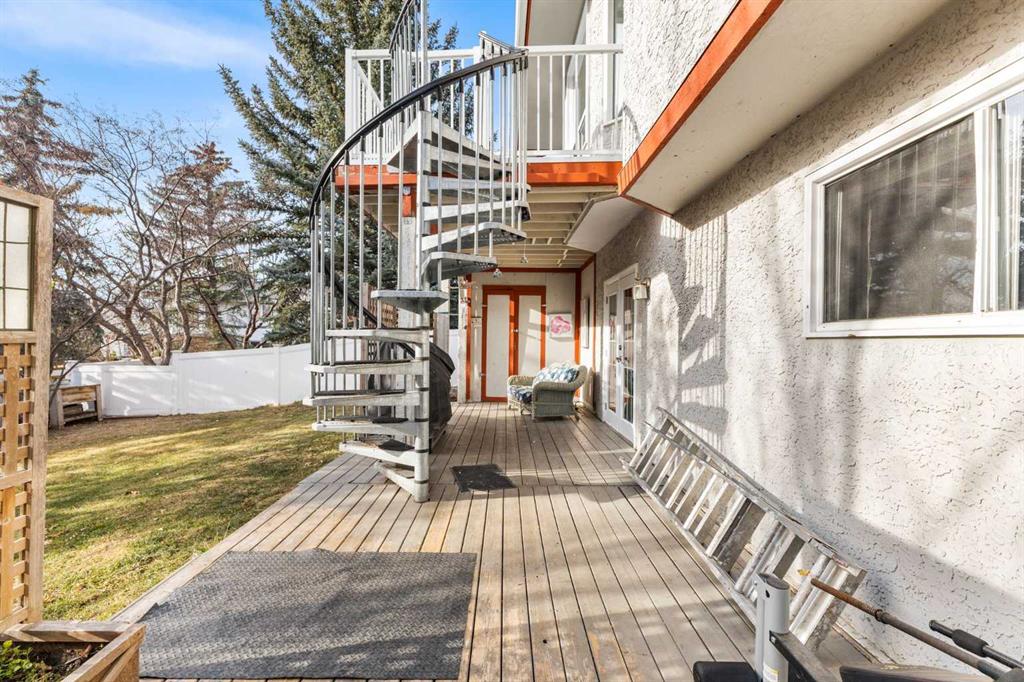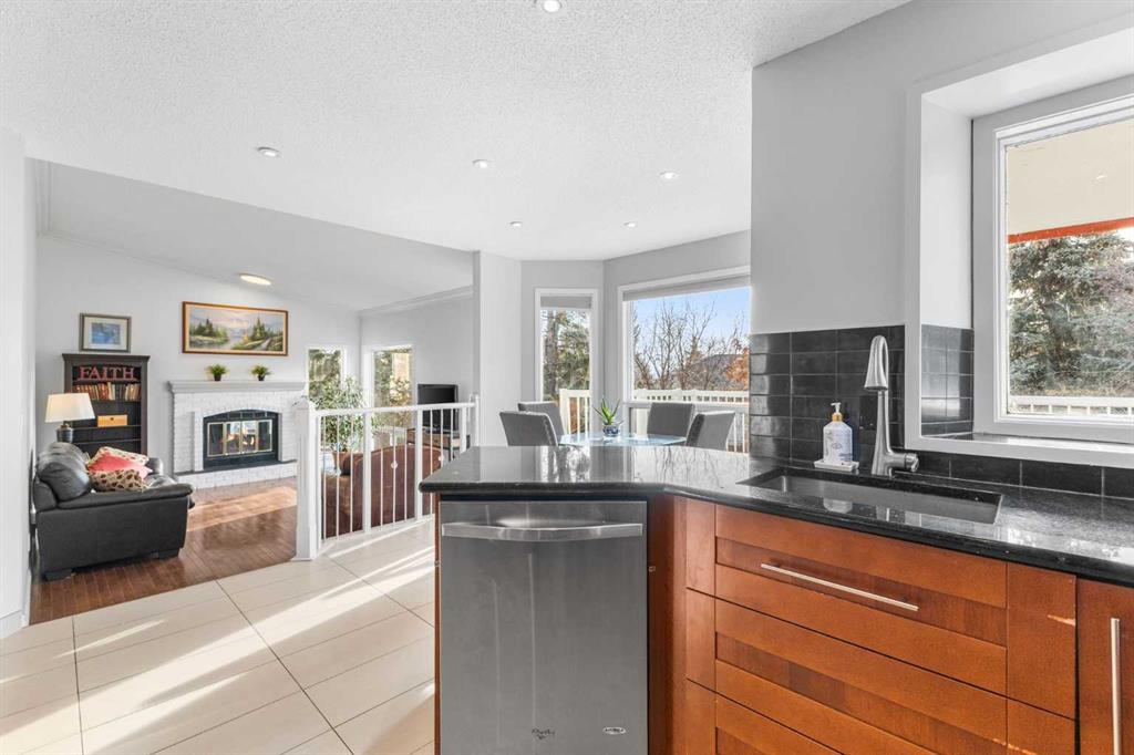 Welcome to this well-maintained and thoughtfully updated 4-level split home nestled in the heart of Scenic Acres. Offering over 1,600 sq ft above grade plus a fully developed basement with an illegal suite, this property delivers exceptional versatility. The main and upper levels feature vaulted ceilings, hardwood, ceramic tile, and carpet flooring. A main floor living room provides a perfect space for gathering with family & friends. The bright and functional kitchen—renovated in 2012—boasts granite countertops, ample cabinetry, and a cozy breakfast nook, flowing effortlessly into the formal dining room and family room with cozy wood burning fireplace. The primary bedroom includes a private 3-piece ensuite, while two additional bedrooms share a full 4-piece bath. The lower level offers a spacious den, and the illegal suite includes a second eat-in kitchen, large living/dining area along plus a 4-piece bathroom — ideal for extended family or guests. Other notable features include central air conditioning, a furnace that was replaced approximately three years ago plus new windows at the back of the home, offering peace of mind for years to come. Outside, enjoy a sunny fully fenced and landscaped southwest yard with both deck and patio spaces—perfect for outdoor entertaining. The double attached front garage provides secure parking and storage. Located in a quiet, family-friendly neighborhood with easy access to parks, playgrounds, schools, shopping, golf, and extensive walking/bike paths, this home combines comfort and convenience.