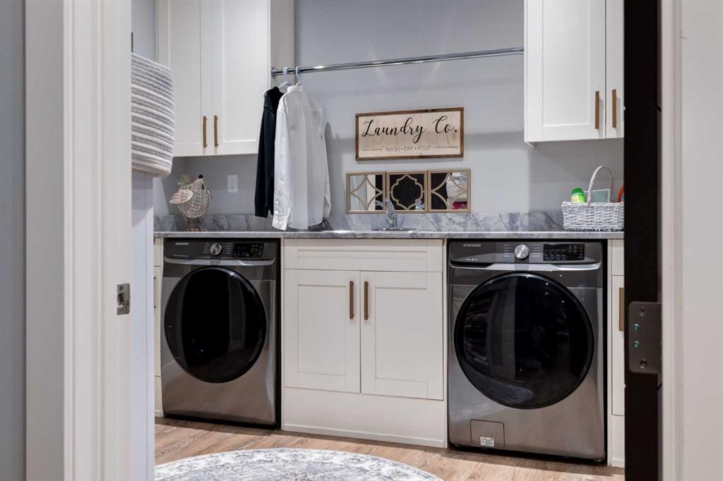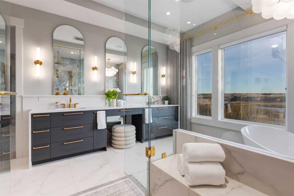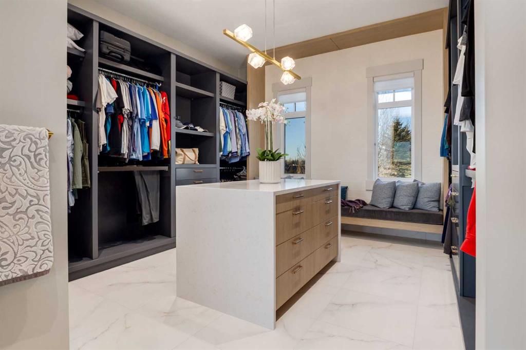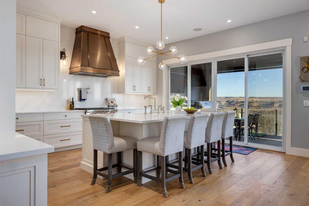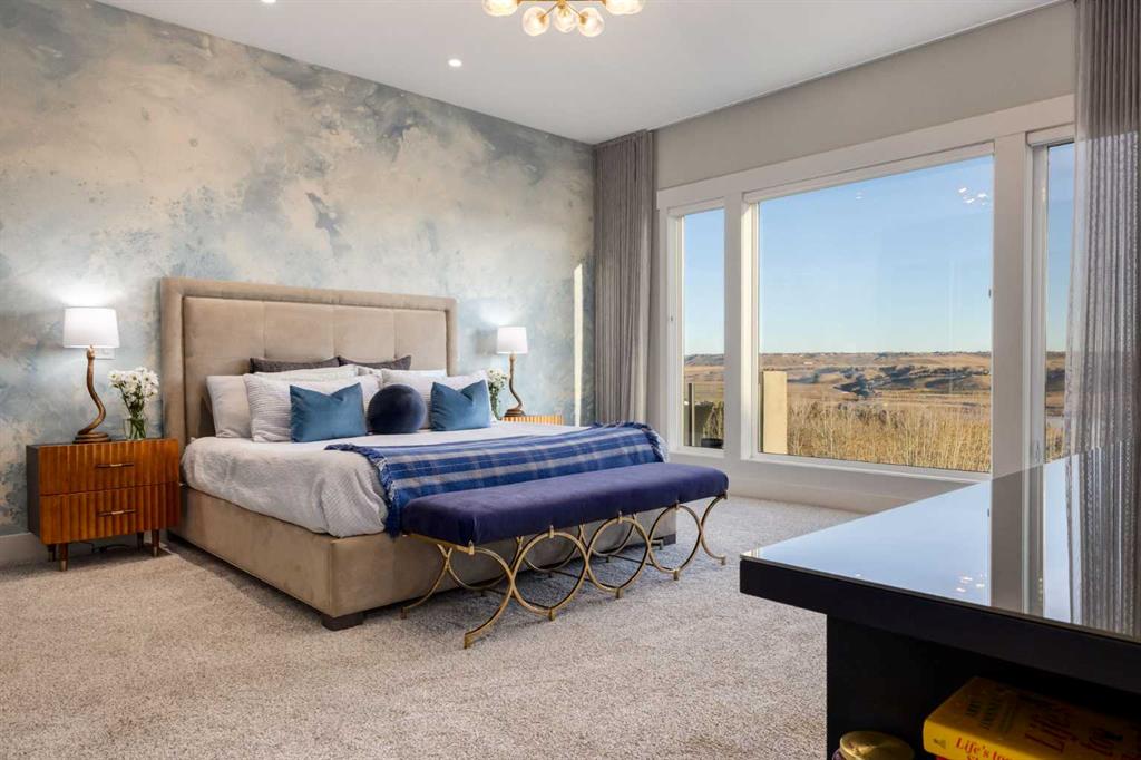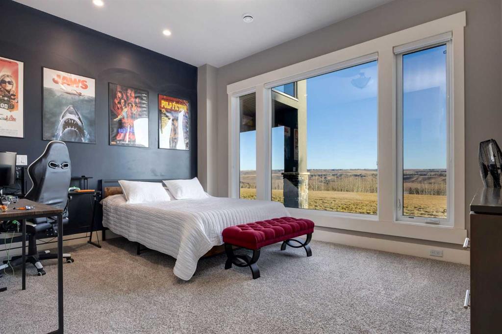 OPEN HOUSE SUNDAY FEBRUARY 15TH – 1PM TO 4PM. Set high on the escarpment in North Springbank is the most beautiful bungalow with unobstructed views of the city skyline, Bow River, the Springbank Links golf course, the mountains to the West and the breathtaking valley set below. Extensively renovated in 2022 and 2024, this property features over 2800 SF on the main level, over 400 SF on the outdoor living room deck, and another 2400 SF on the lower-level walk-out. The designer kitchen is gorgeous and has a beautiful butler’s pantry with a full wet bar and wine fridge. The living room is open to the dining room and kitchen areas and overlooks the stupendous views. The primary suite encompasses the entire SE wing of the home and has the most luxurious ensuite showcasing a gold framed shower, freestanding bathtub and waterfall vanities. The lower level features a games room, media area, home gym and three large bedrooms, each with their own ensuites and walk-in closets. The yard is professionally landscaped with mature trees and extensive garden areas. The oversized four car garage features a second mud room. This is a very special property in a unique location at the end of a private cul-de-sac and is within 10 minutes to local and private schools, shopping and recreational facilities.