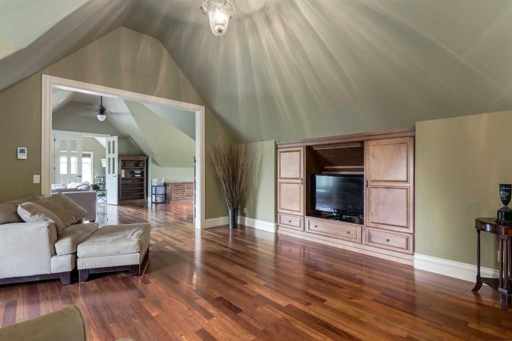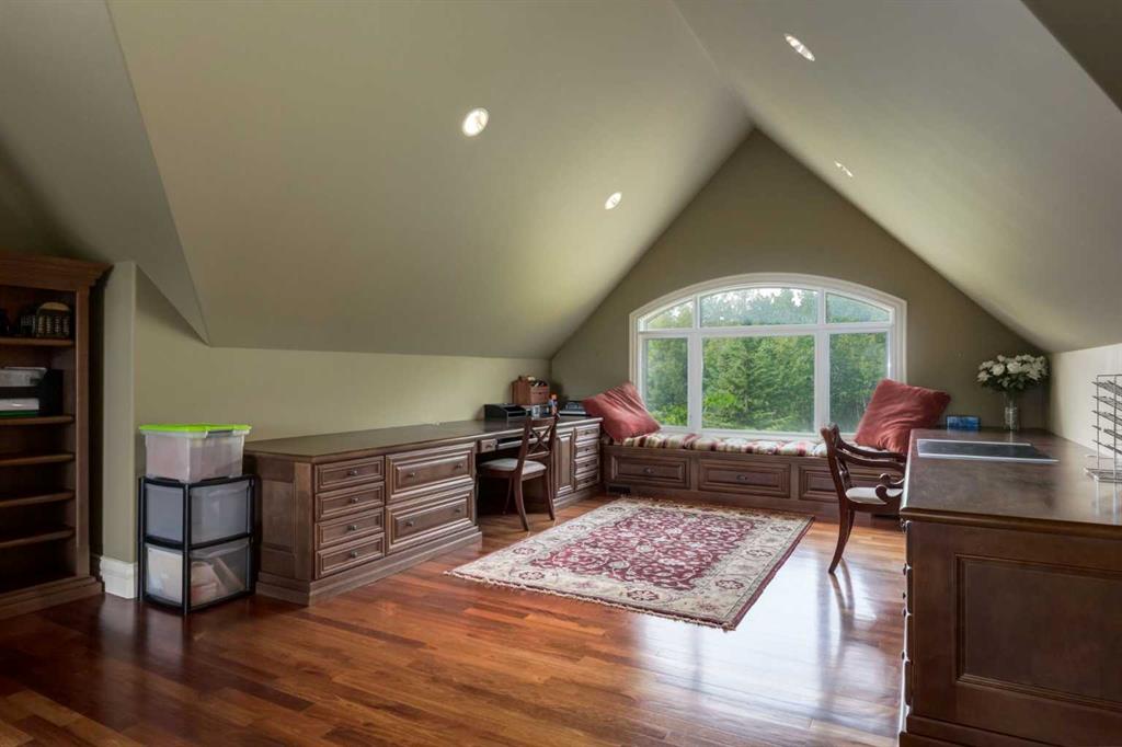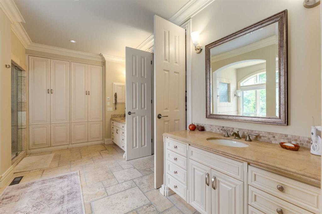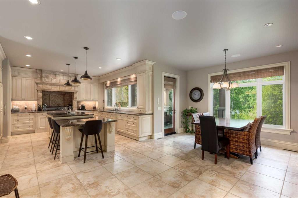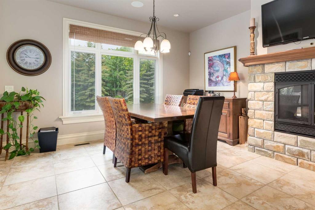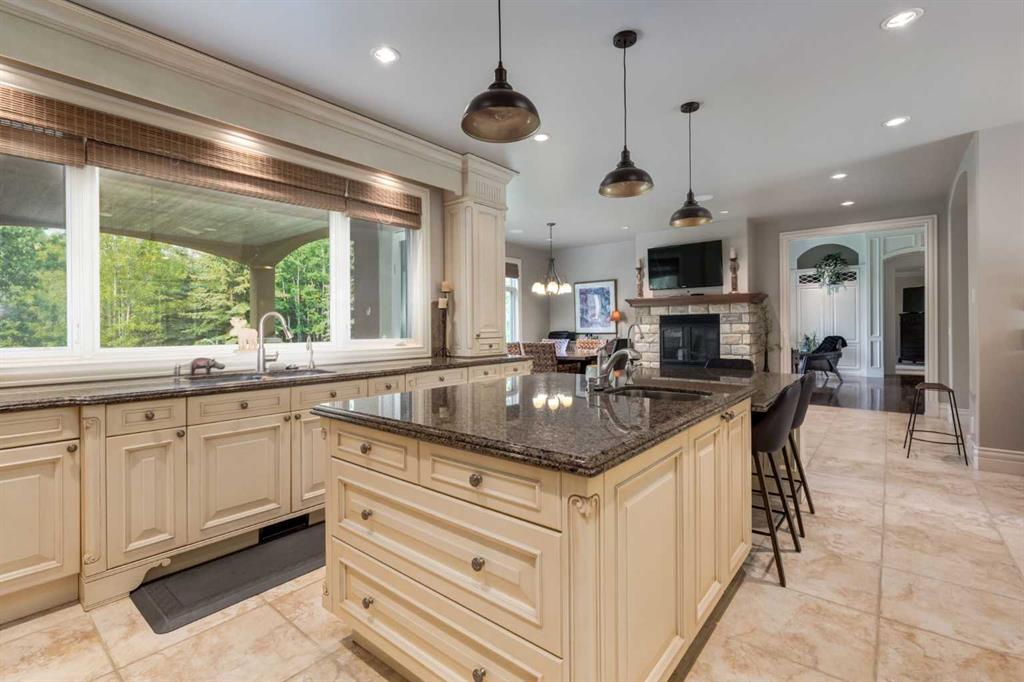 Set on more than four acres of beautifully manicured grounds, this remarkable estate blends timeless elegance with thoughtful modern upgrades and a tranquil natural setting. From its striking curb appeal to its refined interior, this McKinley Masters-built home is crafted to impress at every turn. A grand front entrance welcomes you into a warm yet sophisticated interior. Just off the foyer, a spacious formal dining room offers an inviting setting for both intimate family dinners and larger gatherings. Beyond, the gourmet kitchen serves as the heart of the home. It features granite countertops, a generous central island, a gas cooktop, and a panelled built-in refrigerator that integrates seamlessly with the surrounding cabinetry. The kitchen flows into a cozy breakfast nook anchored by a gas fireplace with a full stone surround, creating a comfortable space to gather year-round. From here, step out onto the expansive back deck—ideal for outdoor dining, relaxing, or hosting guests while enjoying the serene surroundings. The adjacent living room impresses with soaring ceilings, a wood-burning fireplace, and a large picture window that frames scenic views of mature trees and lush landscaping. On the main level, the primary suite offers a private and luxurious retreat. Complete with a sitting area or den that opens to a peaceful balcony overlooking the backyard. The spa-inspired five-piece ensuite includes dual vanities, a standalone shower, a deep soaker tub, and a spacious walk-in closet. Upstairs, an expansive and versatile bonus area provides endless flexibility to suit your needs—whether as a home office, fitness studio, or additional family living space. The fully finished walkout basement is designed for entertaining and unwinding alike. A well-appointed bar with a seating area, wine cellar, and built-in cabinetry makes hosting effortless, while the large family room features a striking double-sided stone fireplace with a wood mantle, creating a warm and inviting atmosphere. This level also includes four generously sized bedrooms, two full bathrooms, ample storage, and direct access to a lower patio that opens to the beautifully treed yard, complete with a fire pit and open lawn space. Recent updates enhance both comfort and efficiency, including re-stained front doors, new window trim on most windows, new eavestroughs and downspouts, and a new window in the great room. Mechanical upgrades include a newly installed boiler and hot water system, as well as a new furnace. The home is also equipped with a rooftop-mounted Starlink dish, providing reliable high-speed internet in this private setting. Additional highlights include an oversized four-car garage, a reverse osmosis system, a water softener, and a well-appointed main floor laundry room with built-in cabinetry. Combining refined design, modern systems, and a private, picturesque setting, this property offers a rare opportunity to enjoy quiet luxury in a truly stunning environment.