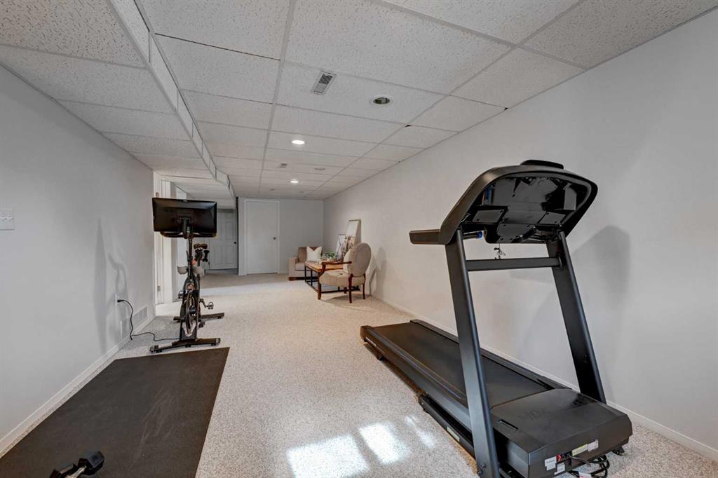 Downstairs, the lower level currently offers a recreation space, flex room, bathroom, and generous storage. Professionally designed basement plans by Ethos & Edit are included, providing a ready-made opportunity to further elevate and expand the living space.