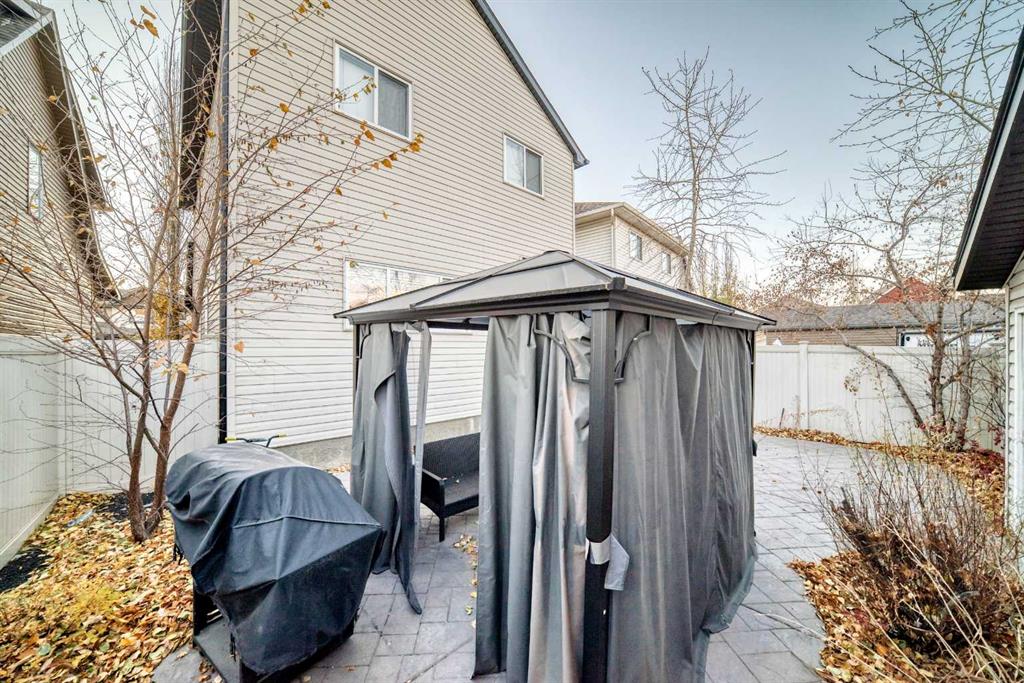 This stunning home boasts over 1,700 sq ft of living space and is meticulously maintained. The front yard features a unique, low-maintenance landscape with mature trees, large rocks, and a beautiful front porch with composite decking and glass railings. Step inside to discover a spacious great room with plenty of windows and a cozy fireplace. The main floor also includes a dining room, stainless steel kitchen appliances, granite countertops, a kitchen island, pantry, and a tech space perfect for a home office. The upper level features a generous primary bedroom with a walk-in closet and a luxurious 4-piece ensuite, complete with a walk-in shower and soaker tub. Two additional bedrooms, one with a walk-in closet, and a convenient walk-in laundry room complete the upper level. The backyard is a true oasis, featuring a concrete patio, gazebo (furniture not included), a double detached garage, and an additional gravel parking for an extra car or RV. Schedule a private viewing today – call or text to make it yours!