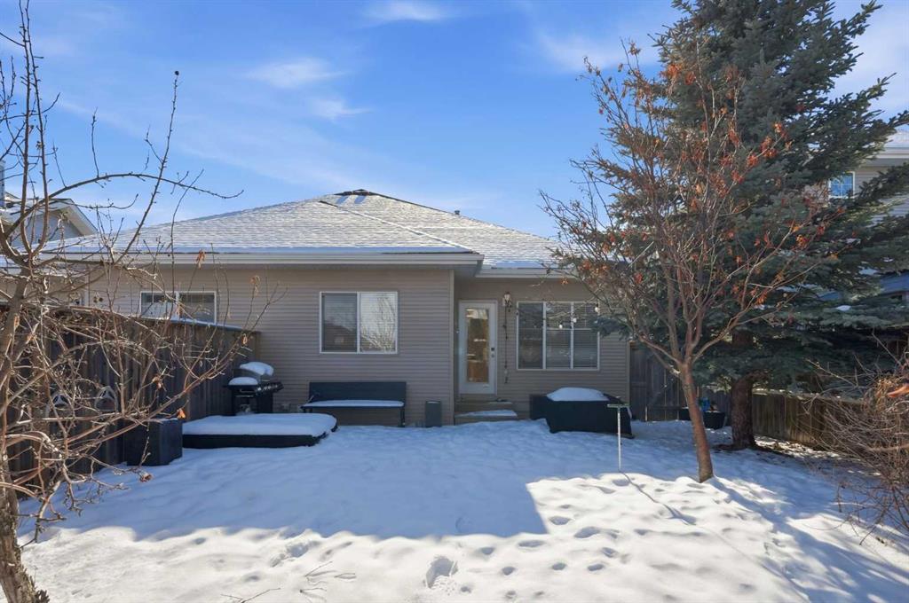 OPEN HOUSE SUNDAY, MARCH 8TH FROM 11 AM – 1 PM. Located in the desirable community of Cougar Ridge, this charming villa bungalow offers nearly 1,900 sq ft of beautifully developed living space and an ideal low maintenance lifestyle. The open main level features hardwood floors, high ceilings, and a welcoming living room anchored by a corner fireplace. The updated kitchen includes an island with eating bar, generous cabinetry, and a bright, casual dining area—perfect for everyday living. At the front of the home, the spacious foyer doubles as a comfortable den or home office, offering a quiet place to work. The main level also hosts the primary bedroom with ample closet space and direct access to a 3 piece bath. The fully developed lower level is designed for relaxation and entertaining, featuring a huge recreation/family room complete with a projector, large screen, speakers, and a wet bar—an ideal setup for movie nights or game day. Two additional bedrooms and a 4 piece bath provide excellent space for guests or hobbies. Additional highlights include central air conditioning, a large private backyard with patio, and the convenience of a single attached garage. This prime location offers quick access to COP, Paskapoo Slopes walking and biking trails, Cougarstone Park, plus nearby schools, shopping, and public transit, with effortless connectivity to Old Banff Coach Road and Stoney Trail.