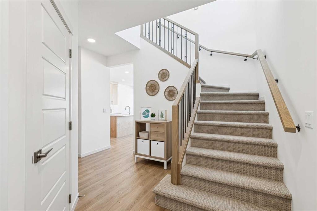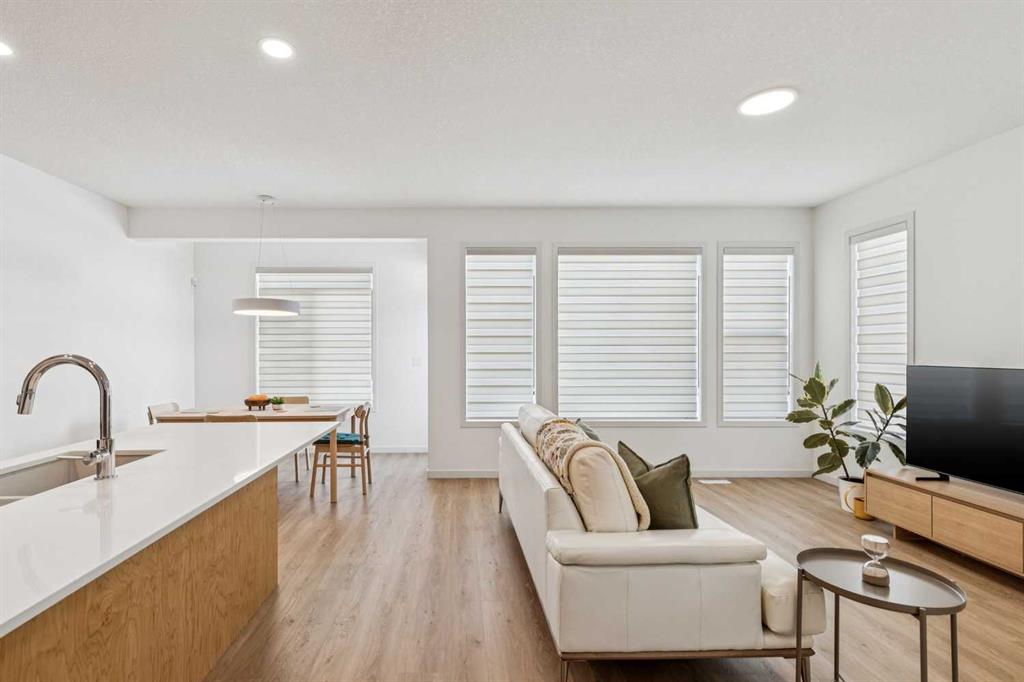 Welcome to 150 Lucas Close NW, offering nearly 1,800 sq ft above grade, a double attached garage, and a thoughtfully designed layout built for modern living. The bright main floor features an open concept design with a stylish kitchen complete with quartz countertops, soft-close maple cabinetry, Whirlpool appliances, and gas range rough-in, flowing into the dining area and living room with large windows and access to the rear deck overlooking the expansive backyard.