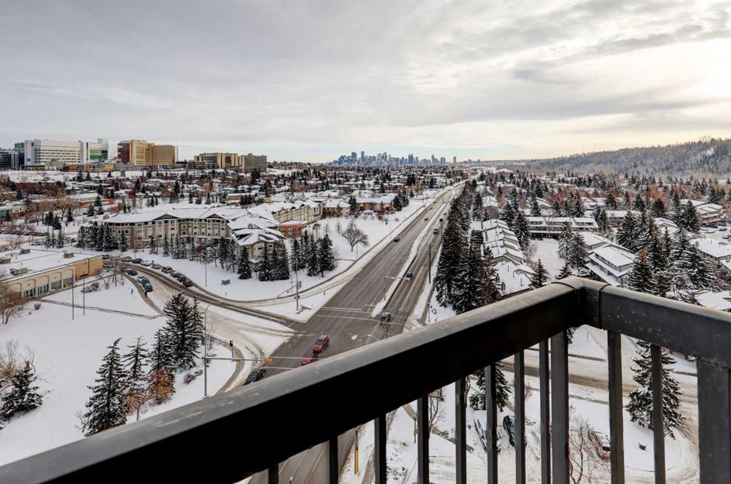 HOME SWEET HOME! Indulge in maintenance free ADULT CONDO LIVING in this updated 15th floor unit situated in the sought-after NW community of Point McKay offering BRAND NEW LUXURY VINYL PLANK FLOORING THROUGHOUT. This desirable, quiet building offers an exquisite unit with 2 bedrooms, 1.5 bathrooms and 1,013 SQFT of beautifully maintained living space with BREATHTAKING PANORAMIC VIEWS of Downtown Calgary, the Skyline and valley views. Heading inside you will fall in love with the spacious, open concept floor plan with wall to wall windows to bask in your pristine views throughout the condo. Features include a massive living room that is flooded in natural sunlight, formal dining area perfect for hosting guests, a spacious foyer and the chef’s kitchen fully equipped with white appliances, ample cabinet and counter space and a pantry. Also featured in the unit is a generous sized bedroom, full 3 piece bathroom and the massive, master retreat with a walk-in closet and large 2 piece ensuite bathroom. Updates include new cork flooring and upgrades in the kitchen. Completing the unit is a balcony to have a coffee while enjoying your dream views, in-suite laundry, an underground parking stall and assigned storage locker perfect for all your needs. The popular Riverside Towers includes exclusive amenities such as a media room, library, 24/7 concierge, onsite security, car wash, visitor parking, preferred pricing option with the Riverside Club and Spa. This location is perfect for home buyers, investors and downsizers looking to be steps from the tranquil Bow River and its numerous pathways and close to Foothills Hospital, Children’s Hospital, University of Calgary, University District and quick escape to Highway 1 and the mountains. Don’t miss out on this opportunity, book your private viewing today!