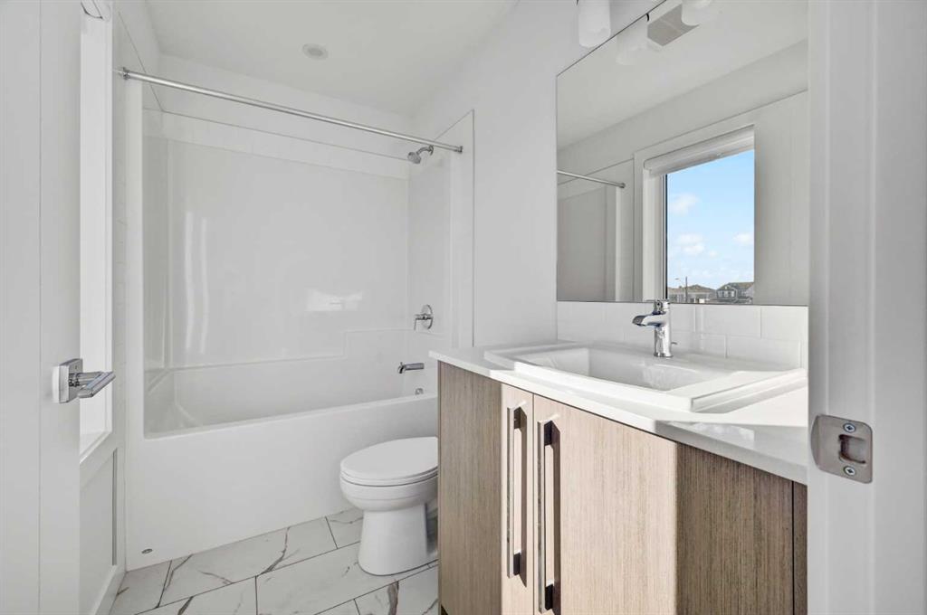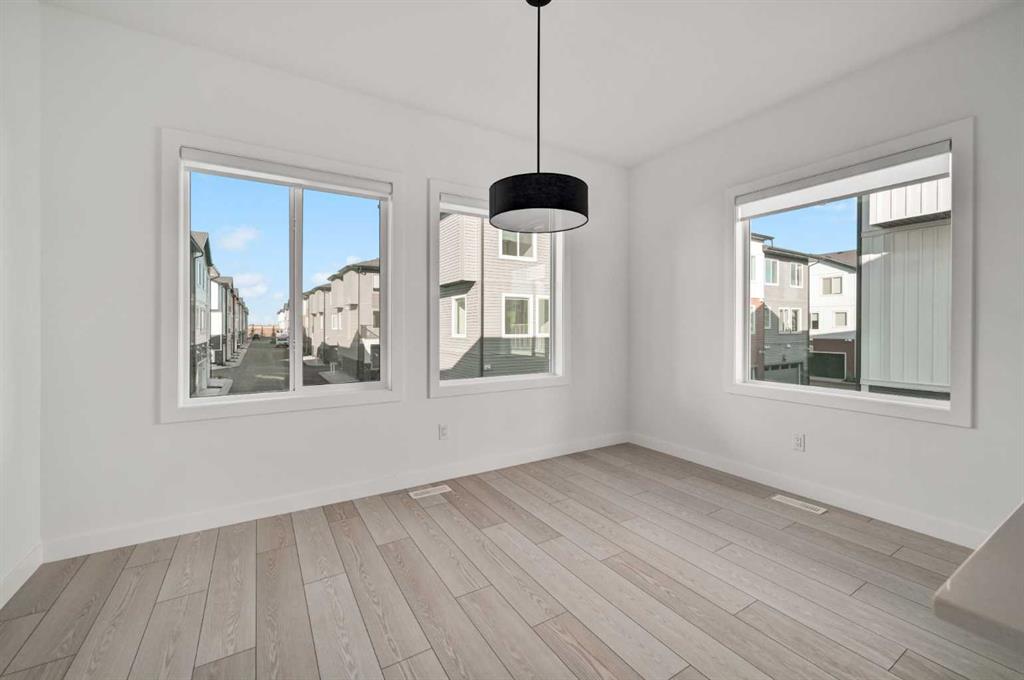 Stunning END UNIT 4-Bedroom 2.5 Bath Attached Garage Townhouse. A low-maintenance designer lifestyle, this home features low condo fees and is just 20 minutes from downtown Calgary & 5 minutes from the newest Costco. Spread across three levels, this townhome offers ample space with an open-concept design on the main floor. Enjoy the bright, airy atmosphere created by large windows and sleek vinyl flooring throughout the living and dining areas with designer light. Gourmet Kitchen & Generous Living Room – The central kitchen is a chef’s delight, boasting quartz countertops, a stylish tile backsplash, a central island, dual sink, and high-end stainless steel appliances, including an electric stove, dishwasher, full height cabinets, large windows & high ceilings. Outdoor Entertaining – Step out from the living room onto a large front balcony/deck, complete with a gas line for grilling, perfect for outdoor gatherings and relaxation. Comfortable Living – The 3rd floor is dedicated to your comfort with a spacious primary suite featuring an ensuite bathroom and a walk-in closet, alongside two additional well-sized bedrooms sharing a second full bathroom. A conveniently located laundry room with a full-sized Whirlpool washer and dryer completes this level. The versatile lower level offers a flexible space that can be used as an additional bedroom or home office. It also includes an attached double garage with ample storage and a mechanical room/ storage room. Modern Conveniences – Equipped with a heat recovery ventilation (HRV) unit for optimal indoor air quality. Convenient Access – Just a few blocks from Walmart, Costco, and a variety of other retail shops, amenities, and dining options in nearby. Easy access to schools, parks, and local amenities. Master-Planned Community – Part of the award-winning Truman-developed Aberdeen Towns, this 316-acre community along the shores of Chestermere Lake promises year-round lakeside living with future additions including new schools, parks, and lifestyle amenities. This beautifully appointed townhome offers everything you need for a comfortable and enjoyable lifestyle. Contact your realtor today to schedule a viewing and see for yourself why this home is the perfect fit for you! Reasons to Buy: – Spacious 4-bedroom, 3.5-bathroom layout – Low condo fees and modern amenities – Close proximity to major retail stores and downtown Calgary –