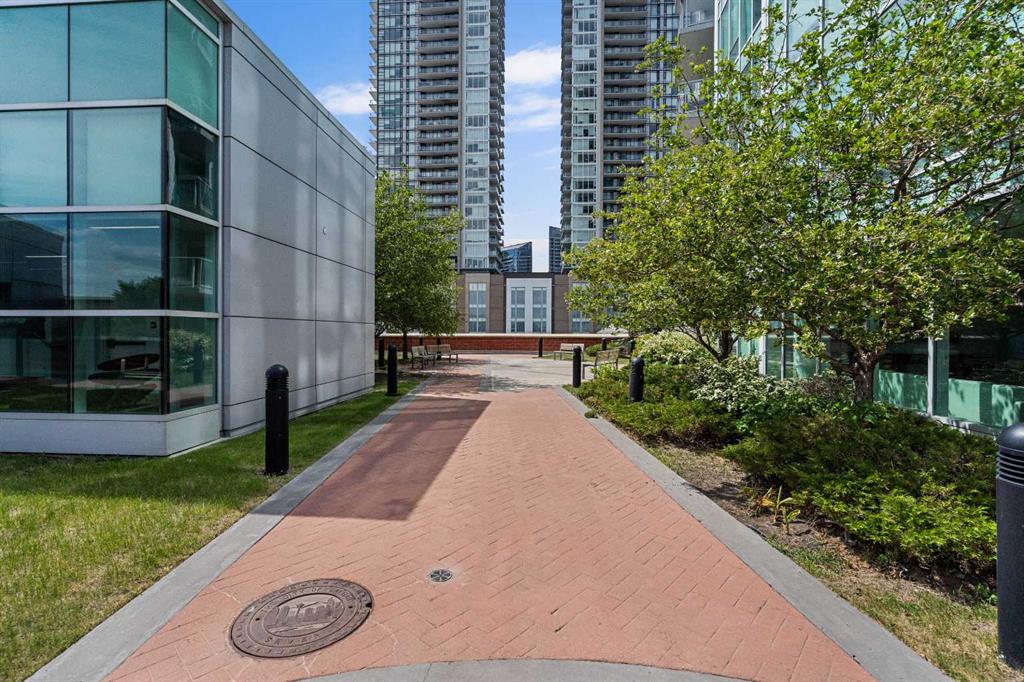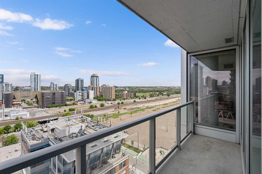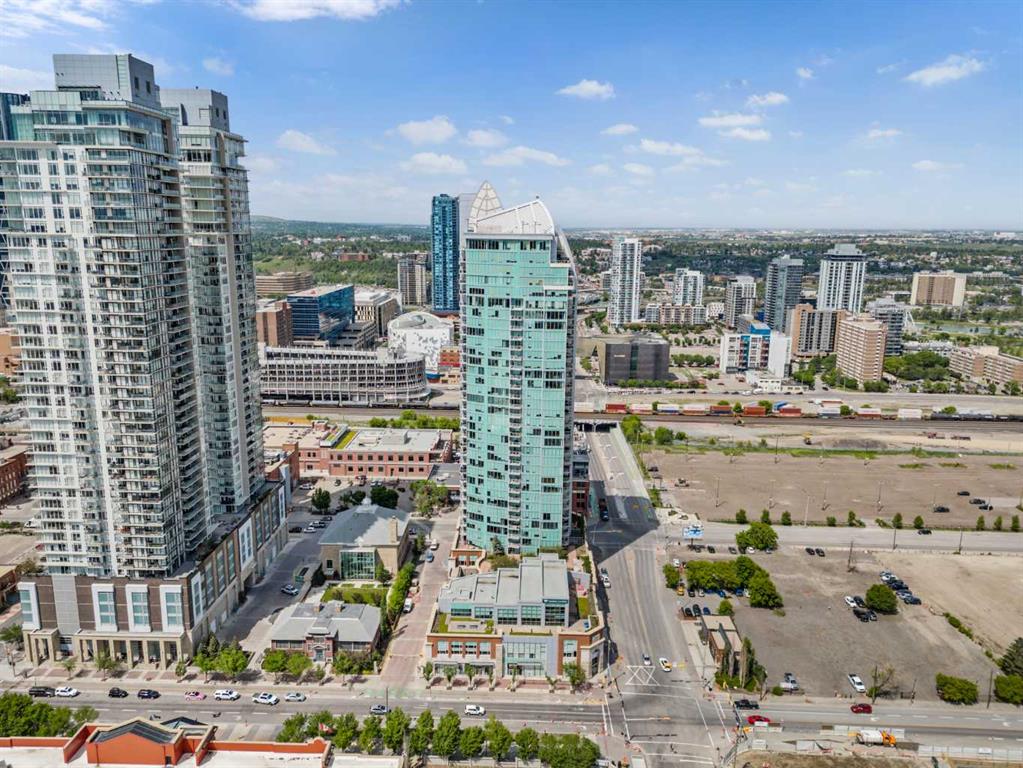 Welcome to Arriva — where refined urban living meets one of Calgary’s most exciting new developments. Located in the heart of the Beltline, this expansive 1193 sq. ft. corner unit offers 2 bedrooms, 2 bathrooms, titled underground parking, and stunning skyline views. Situated directly beside the future Calgary Event Centre, this is a rare opportunity to live next to the city’s most anticipated entertainment district. Step into an open-concept layout with soaring 9’ ceilings, central air conditioning, and approximately 19 feet of floor-to-ceiling windows that frame panoramic views from the Calgary Tower to East Village. Enjoy summer evenings on your private balcony, complete with a gas line for BBQs. The kitchen is a chef’s dream, featuring a premium Miele appliance package, including a 5-burner gas cooktop, stone countertops, a large peninsula island, and a spacious pantry. A generously sized dining area flows seamlessly into the bright and airy living space — perfect for entertaining. The primary bedroom retreat includes its own private balcony, a custom walkthrough closet, and a spa-inspired 4-piece ensuite with separate glass shower and deep soaker tub. The second bedroom also offers a custom walkthrough closet with direct access to a cheater ensuite — ideal for guests or a home office. Additional features include a titled underground parking stall, an assigned storage locker, and access to Arriva’s premium amenities — including full-time concierge/security, an elegant lobby and premium social room with a beautiful outdoor patio. This is downtown living at its finest, with unbeatable access to transit, dining, entertainment, the Stampede Grounds, and the upcoming arena.