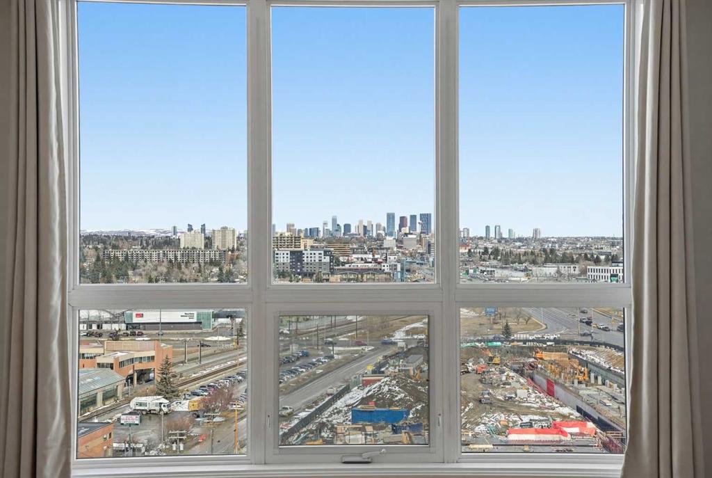Perched on the 15th floor with sweeping downtown views, this beautifully maintained 2-bedroom, 2-bathroom residence offers the perfect blend of comfort, convenience, and elevated city living. Thoughtfully designed with a functional layout, this bright and inviting unit is ideal for both everyday living and entertaining. Enjoy direct underground access to Save-On-Foods, along with the added benefit of a secure, well-managed building. Located just steps to the Heritage train station and surrounded by everyday amenities, this home offers effortless connectivity to the city. An exceptional opportunity for students, professionals, first-time buyers, investors, or those looking to downsize without compromise. Some upgrades include: line for AC, New boiler (2024), Freshly painted, New LVP flooring, New microwave range hood (2026), New washer and dryer (2024), upgraded lights in kitchen and dining room.