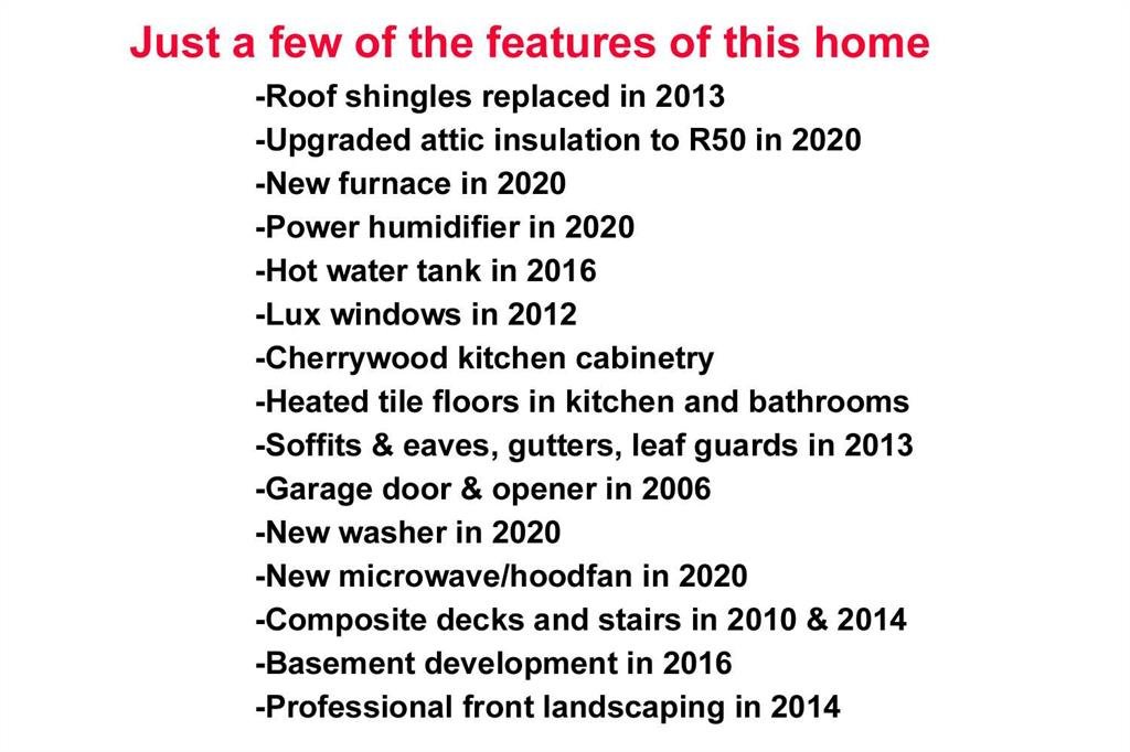 This beautiful 1625sf family home shows pride of ownership inside and out with many upgrades over the years. It is situated on a 72’ x 120’ lot with a large sunny south and west facing backyard which features a paving stone patio with a firepit. The front yard was professional landscaped in 2014 with beautiful perennial plants and shrubs along with a patio stone sideway leading to the composite wood stairway. Newer windows, fascia, soffits, eavetroughs and shingles as well as upgraded R50 attic insulation. The remodeled kitchen features rich cherrywood cabinets and island with granite countertops and an eating bar for 4 chairs. Enjoy the beautiful sunrises from the east facing windows over the kitchen sink. You can cool off on those hot summer nights in the 250sf sunroom off the kitchen. There are 3 bedrooms on the main floor with the primary bedroom featuring a 3 piece ensuite bath. The basement was completely redeveloped in 2016 with a billiard room, theater room, full bath and laundry room. The main floor features hardwood floors throughout except for the heated tile floors in the kitchen and all 3 bathrooms. There are two fireplaces to enjoy on those chilly winter nights in front of the TV or theater screen. There is direct access to the heated double tandem garage through the basement which also leads to the covered carport. The 40’ long driveway will accommodate parking for 4 additional vehicles. This home is surrounded by 2 – 3 million dollar houses! Don’t miss the rare opportunities to live in a beautiful home in FOOTHILL ESTATES!