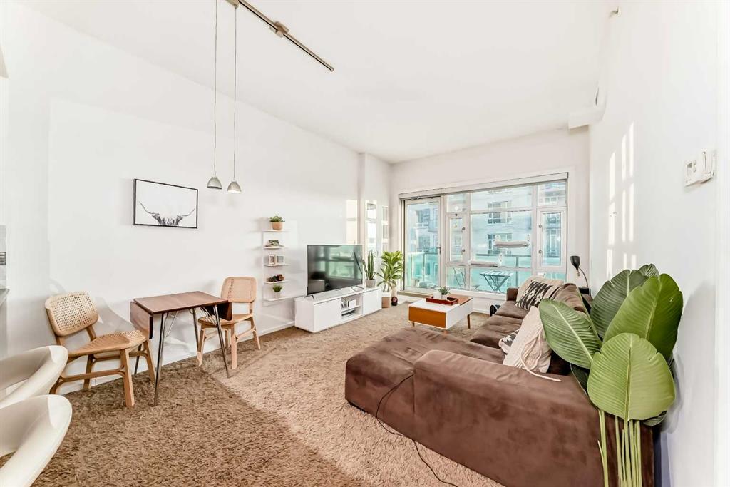 Enjoy stunning mountain and Stampede Grounds views from this well maintained 1 bedroom + den condo in the highly sought-after Sasso building. This apartment offers a rare and functional floor plan with 10-foot ceilings and an abundance of natural light throughout.