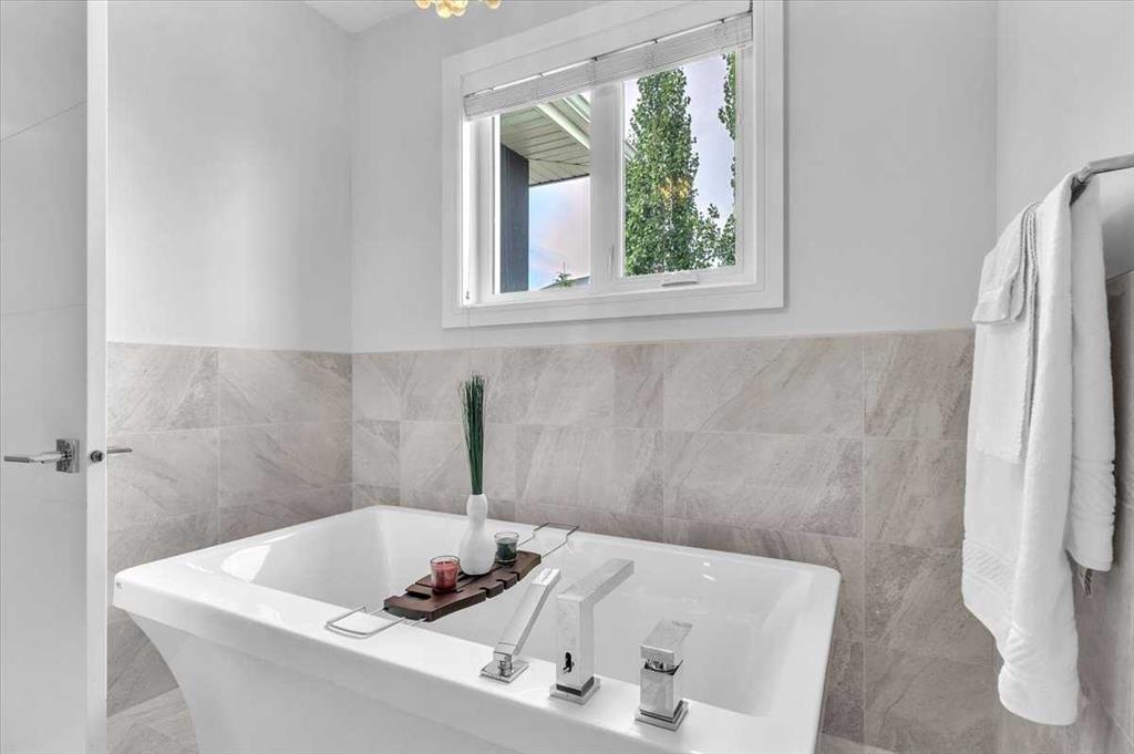 EXTRAORDINARY ASPEN WOODS ESTATE HOME. Attention discerning buyers — make time to view this 4,700 sq ft custom-built show-home-condition residence, with stucco-finishing, in prestigious Aspen Woods. Nestled on a quiet street backing onto green space, this perfectly laid-out estate home offers estate living of comfort, style, and flexibility with functional sophistication and desired upgrades. The main floor features a distinct office near the front, a spacious 19-foot high ceiling living room to one side, a bright dining area in the middle, and a seamlessly integrated chef’s dream kitchen on the other side. This professional-grade kitchen boasts full-height cabinetry topped with French glass doors, a Wolf-brand gas cooktop framed in quartz countertops, a chimney hood fan, and a 60-inch refrigerator, plus a built-in wall oven and microwave. The ample-sized walk-thru pantry with more built-in cabinetry directs you to the mudroom towards the garage, and a windowed flex room (currently being used as a home theatre). Stairs in the centre of the home lead to a NINE-FOOT high 2nd floor with 4 large bedrooms, 3 FULL bathrooms, and a tray-ceiling bonus room with large South-facing windows. The elegant primary retreat, also with tray ceiling, has a large window facing the private green space, and a 12X16 ft ensuite with in-floor-heating, double-sink vanity with drawers, a fully glass-enclosed shower, and an elegant stand-alone tub plus a private WC. Ensuite conveniently leads to the laundry room with a deep sink. Two other bedrooms share a Jack & Jill bathroom, while the fourth has its own full bathroom. The fully-finished in-slab heated basement with an efficient 11 ft-high insulated concrete foundation (ICF) has several large windows AND an above-ground door on the side. The hallway from this lower entrance and triple garage opens to a huge 28X16 ft recreation room with generous wet bar facilities, the 4th full bathroom, 5th bedroom, and a fitness room with large window & double doors. Enjoy a 50-foot-wide backyard oasis with low-maintenance artificial turf, mature trees, and a stone retaining wall with a field above for optimal privacy. Additional Highlights: 1) Heated triple garage with epoxy-finished floors 2) Freshly painted, no-smoking, no-pet home 3) full 8-foot interior doors, 220V outlets on every level 4) Close to shopping, and major thoroughfares, plus premier in-community private schools like Webber Academy, Rundle College, & Calgary Academy. Experience the virtual tour to appreciate the thoughtful layout and unparalleled comfort, and then have a look in person.