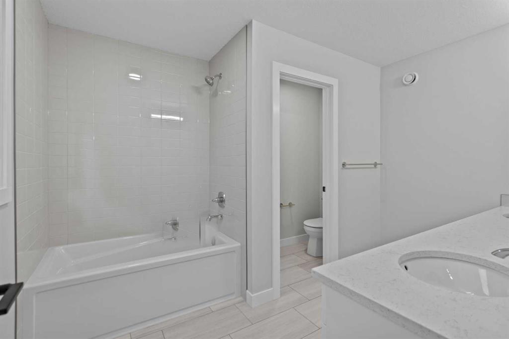 IMMEDIATE POSSESSION | 2,028 SQ.FT. | 3+1-BED | 3-BATH | GOURMET KITCHEN | SEPARATE ENTRANCE | DECK | FRONT LANDSCAPING | This move-in-ready, modern home by Crystal Creek Homes offers a bright, open-concept main floor with a great room and fireplace. The gourmet kitchen features full-height cabinetry, quartz countertops, a wall oven, and a large island. A FLEX ROOM sits next to a full bathroom, making it ideal for guests or a MAIN FLOOR BEDROOM. Upstairs, there are 3 bedrooms including a SPACIOUS PRIMARY SUITE with spa-inspired ensuite, plus a bonus room and convenient laundry room. The 9’ BASEMENT has a SEPARATE ENTRANCE, providing future legal suite potential (subject to approval and permitting by the City). A rear deck and front landscaping add everyday convenience. Every finish in this beautiful home has been professionally curated and the location couldn’t be better! Belvedere is close to Stoney Trail, East Hills shopping, and future schools and parks. This home comes with a NEW HOME WARRANTY and HARDIE BOARD SIDING for peace of mind—book your showing today