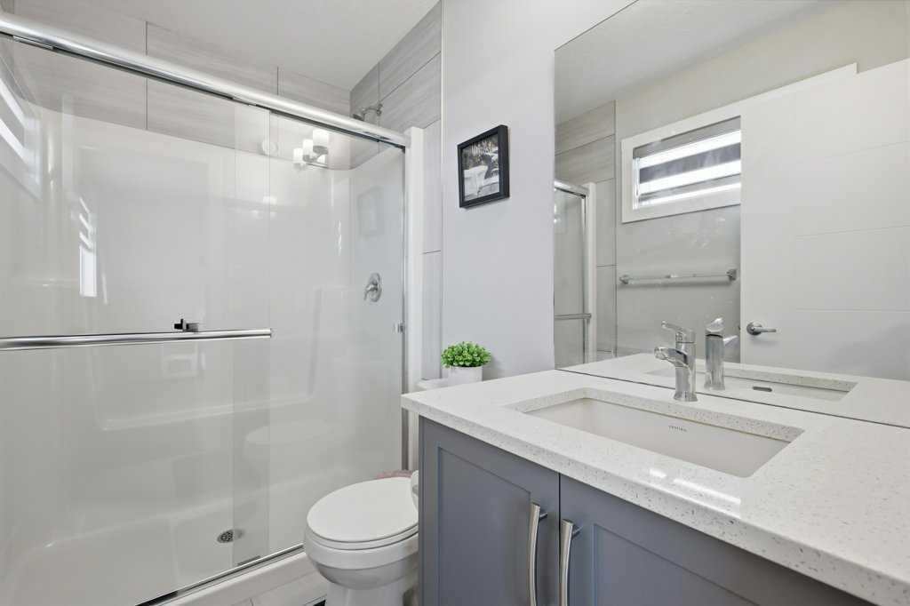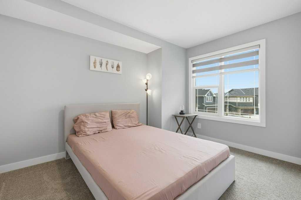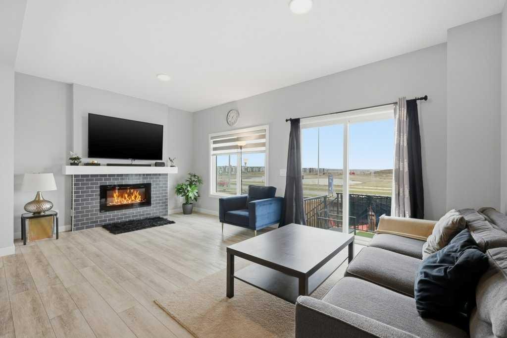 The main floor opens up around a kitchen built for actual cooking. Quartz counters, walk-in pantry, stainless appliances. White shaker uppers, grey lowers, dark subway tile backsplash. The island fits a family. Living room sits right off the kitchen with a tiled fireplace and big windows facing the back. Side entry has a built-in mudroom with bench, hooks, and cubbies, which you’ll appreciate the first time someone walks in with wet boots. Upstairs is where it gets interesting. The bonus room has vaulted ceilings and its own fireplace, basically a second living room. Three bedrooms up here, including a primary with a walk-in closet and an ensuite with a glass shower. Laundry on the bedroom level where it should be. Two and a half baths total. Attached garage out front. Fenced yard with a patio and a back deck for summer dinners. The basement is unfinished and ready for whatever you have in mind, whether that’s a fourth bedroom, a rec room, or both. Pine Creek itself has grown into one of Calgary’s better newer SW communities. Playgrounds and soccer fields within a 20-minute walk. Pathways winding past ponds, wetlands, and into the foothills. Township Centre and Silverado Shopping are minutes away for groceries, coffee, and errands. Stoney Trail puts the mountains within easy reach on weekends. Macleod Trail takes you downtown when you need it. Spruce Meadows is up the road. Fish Creek Park and the South Health Campus are close. Wake up to foothills views and you’ll get why people are moving out here.